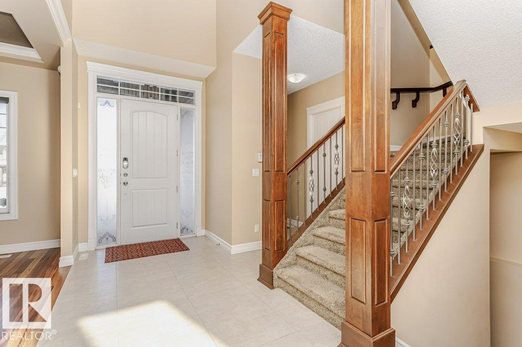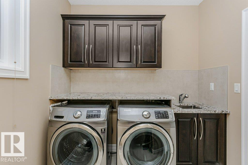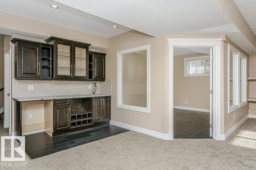 Style, quality & value in Allard Estates--over 5,000 sq ft of finished living space, custom designed and built by Blackstone Homes. This executive 2-storey offers a tandem triple garage, 5 bedrooms, and 4.5 baths, plus oversized entertaining rooms. From the welcoming foyer to the soaring 20' ceilings in the great room, you'll find premium upgrades throughout. Enjoy formal and informal spaces with tigerwood flooring, 10' ceilings on all three levels, wrought-iron spindles, and expansive windows with custom blinds (some remote). The gourmet kitchen impresses with custom cabinetry, a huge granite island, walk-through pantry, and stainless-steel appliances. Upstairs: a luxurious primary suite, generous bedrooms including a Jack & Jill bath, one with ensuite, and a bonus room. The finished basement adds games/rec space, a wet bar, full bath, bedroom, and ample storage. Quick access to Anthony Henday, Ellerslie Rd, South Edmonton Common & the airport--prestige location. Perfect for hosting and everyday living.