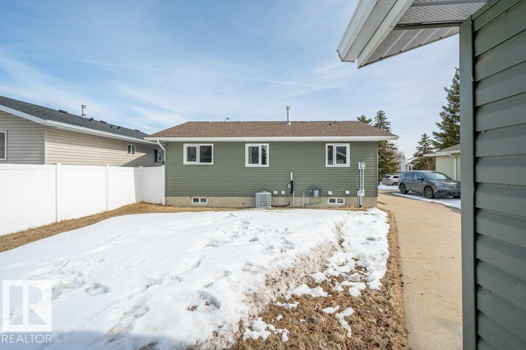 EVERYTHING HAS BEEN DONE! JUST MOVE IN! Fully UPGRADED with all NEW WINDOWS, ROOF, HWT, FURNACE, KITCHEN, FLOORING, SIDING, INSULATION, BATHROOMS & AIR CONDITIONING! Why rent??? OR why buy a house that requires a LOT of upgrades and $$? This one needs NOTHING! AMAZING! 3 GENEROUS sized bedrooms on main floor, NEWER BATHROOM, spacious RENOVATED kitchen & dining room with built-in PANTRY + SEPARATE ENTRANCE to FULLY FINISHED basement boasting another LARGE BEDROOM, fully-wired FAMILY ROOM w/ SURROUND SOUND, plus another RENOVATED BATHROOM! 4 total bedrooms & 2 FULL bathrooms. Large fenced yard with a fully-finished HEATED DOUBLE GARAGE! All of this for less than rent! Only minutes to the RIVER VALLEY TRAIL SYSTEM and and great access from Anthony Henday! AFFORDABLE and TURN KEY!
