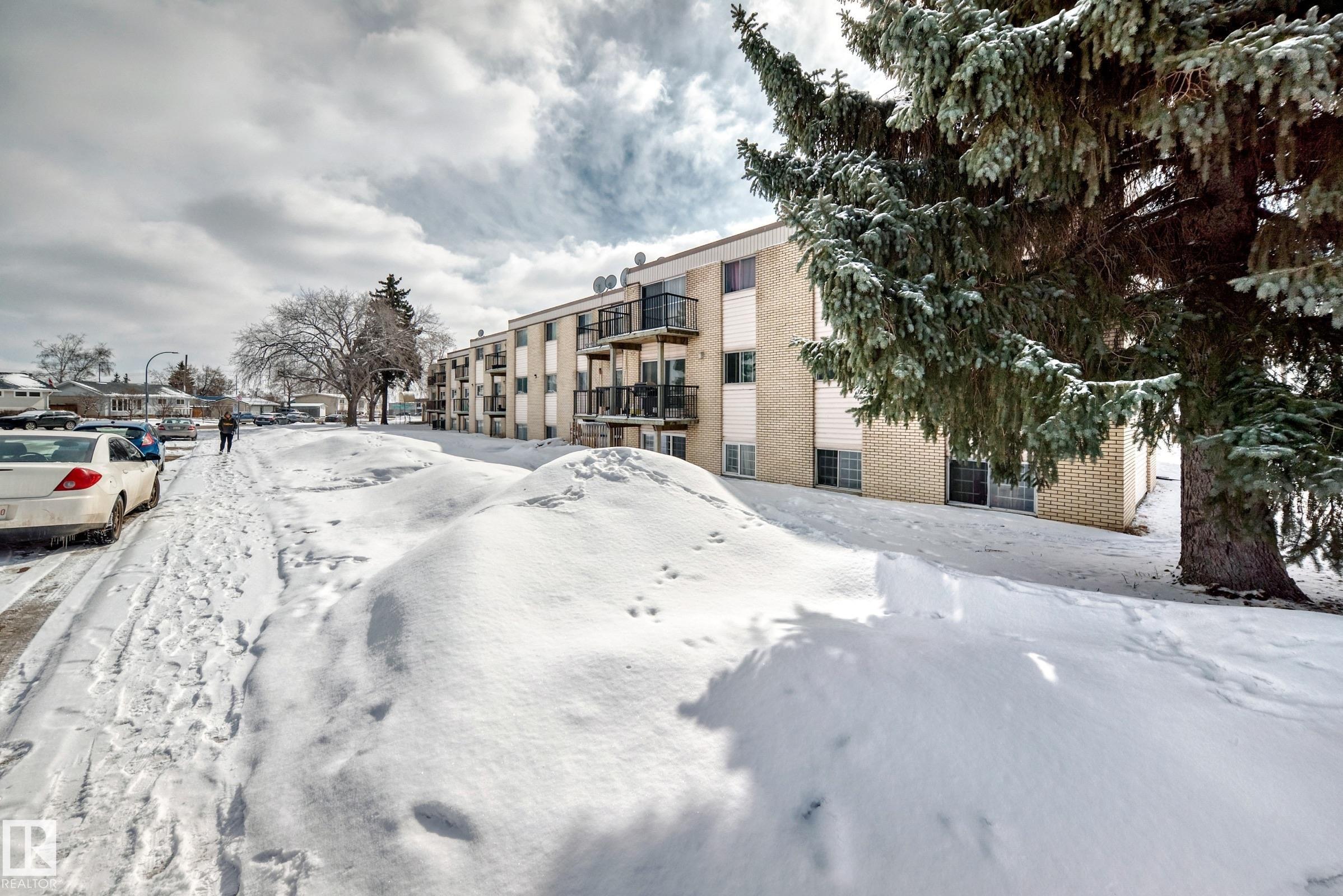 Beautifully UPGRADED 2 bedroom suite with brand new XXL tile flooring and fresh paint. Bright and Sunny living room with extra large window that has views of the courtyard. Renovated kitchen with lots of cabinetry and a dining area. Fridge and stove are included. Updated full 4 piece bathroom. Spacious primary bedroom, ample sized second bedroom and a bonus storage room. Conveniently located close to Belvedere LRT, great restaurants, Manning Crossing shopping, Manning Town Centre shopping, Costco, Superstore and Walmart. Excellent location. LOW CONDO FEES include heat and water. Parking stall. This home is perfect for the investor or first time home buyer. Come see for yourself!