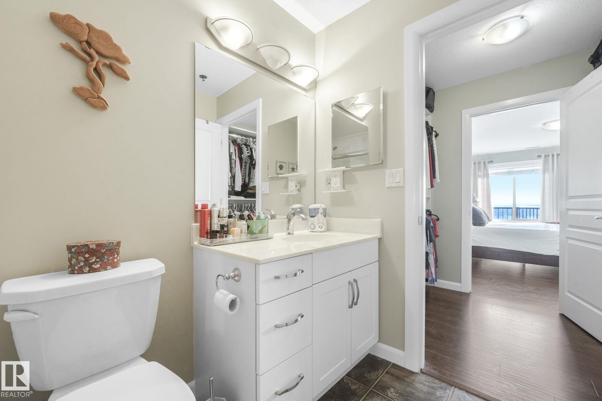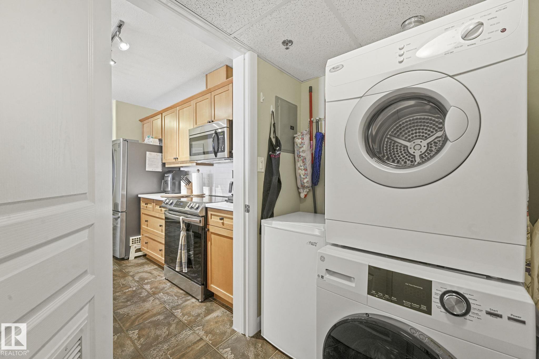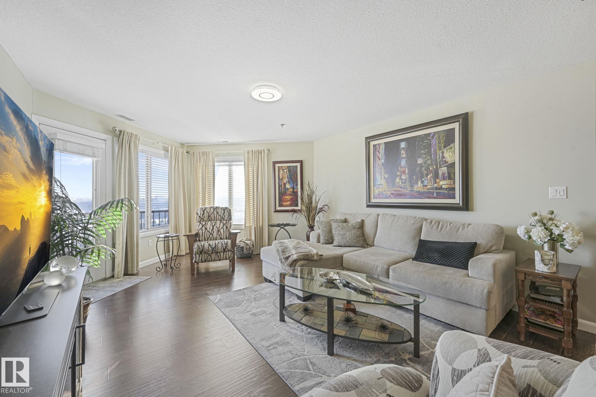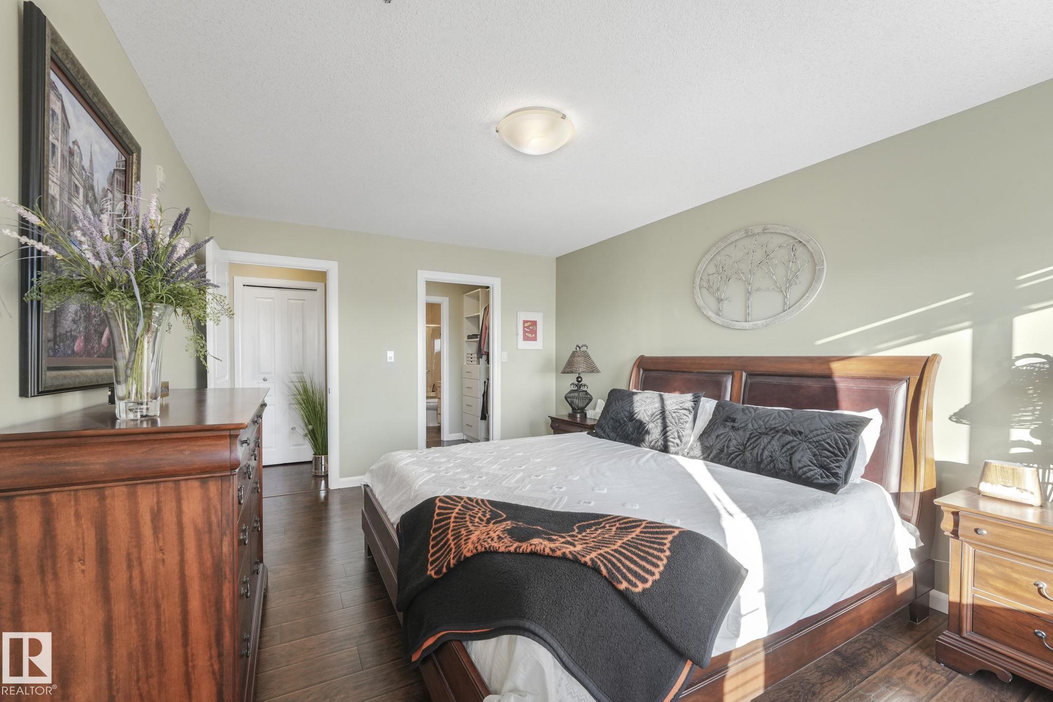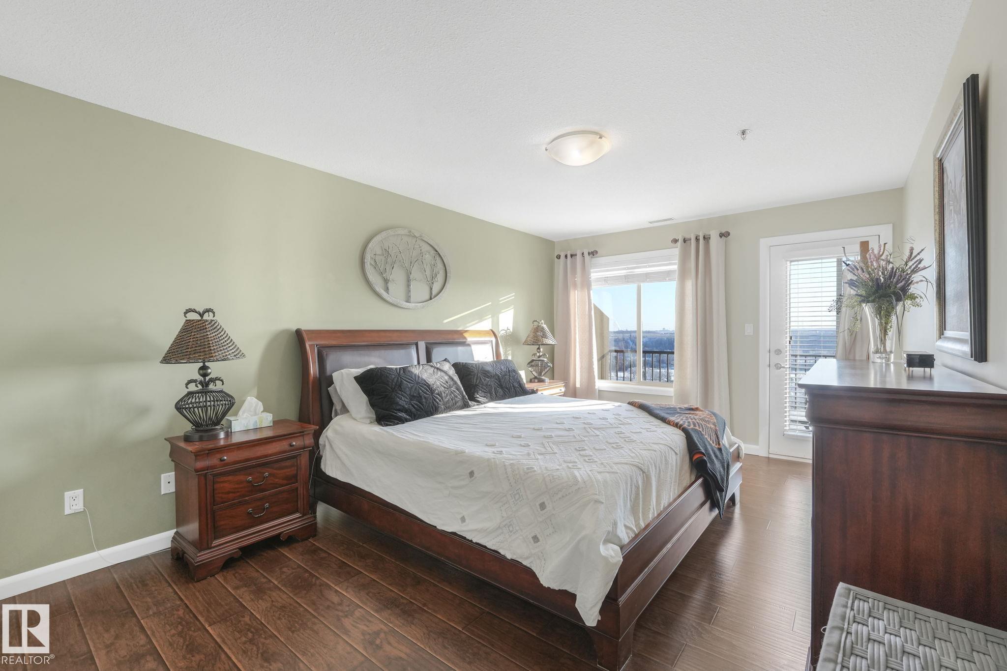 Executive top-floor penthouse condo with 1200 plus sq. ft. of bright, open living space with spectacular river valley views from all rooms. This 2-bed, 2 full bath unit delivers outstanding river valley views from a large deck with a natural gas hookup. The layout feels wide and inviting with an open kitchen, dining and living area. Big windows fill the space with natural light. Both bedrooms are oversized, and the primary suite feels especially roomy. You get in-suite laundry, stainless steel appliances, air conditioning and a separate storage locker. The heated underground parkade includes a titled stall locker room and a car wash. The complex is 18 plus and offers a social room with a pool table, plus an exercise room. The location sits right on the ravine, close to shopping, schools, transit and easy access to walking paths. A standout unit in a quiet, well-kept building. Upgraded quartz countertops throughout. Spectacular place to live!