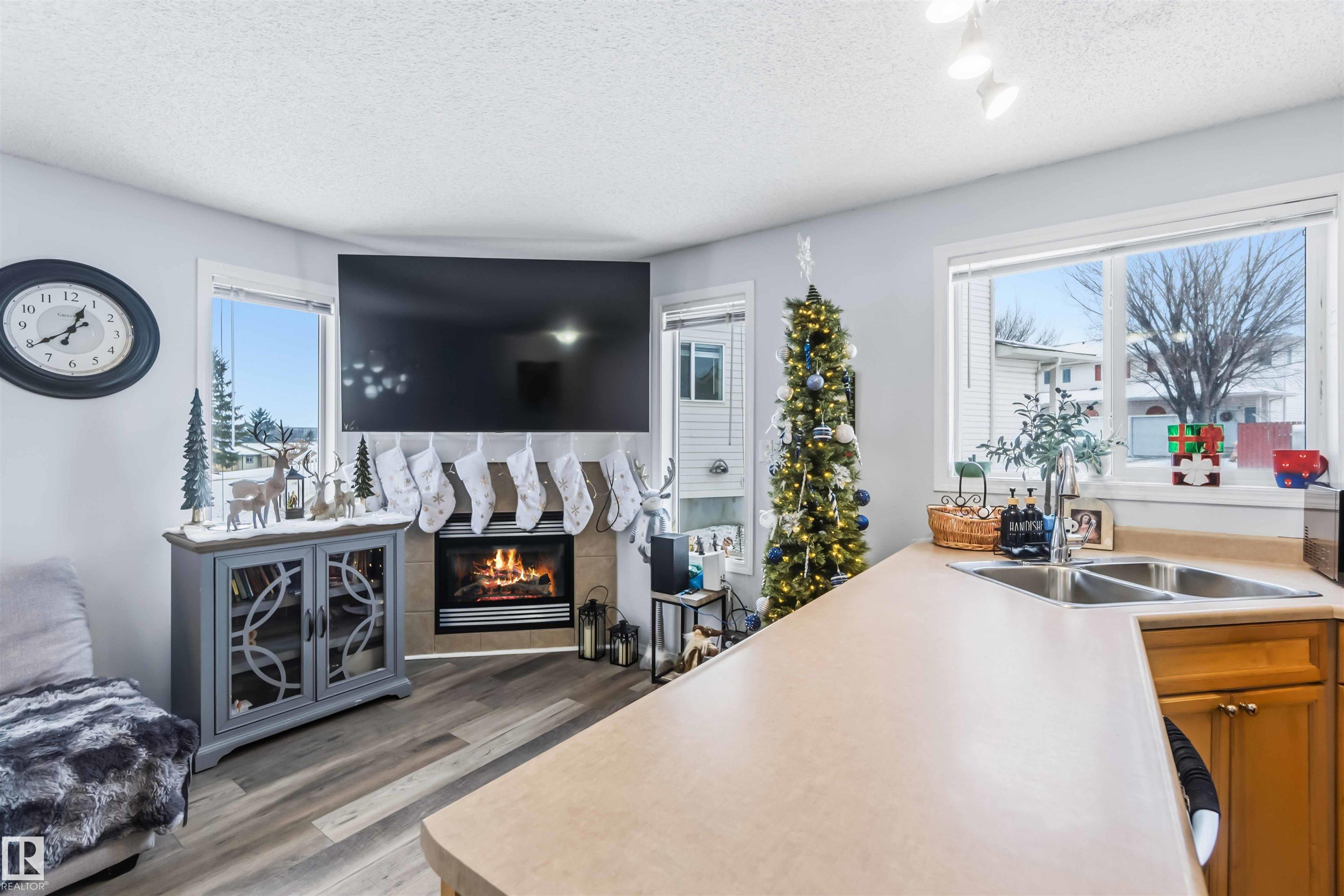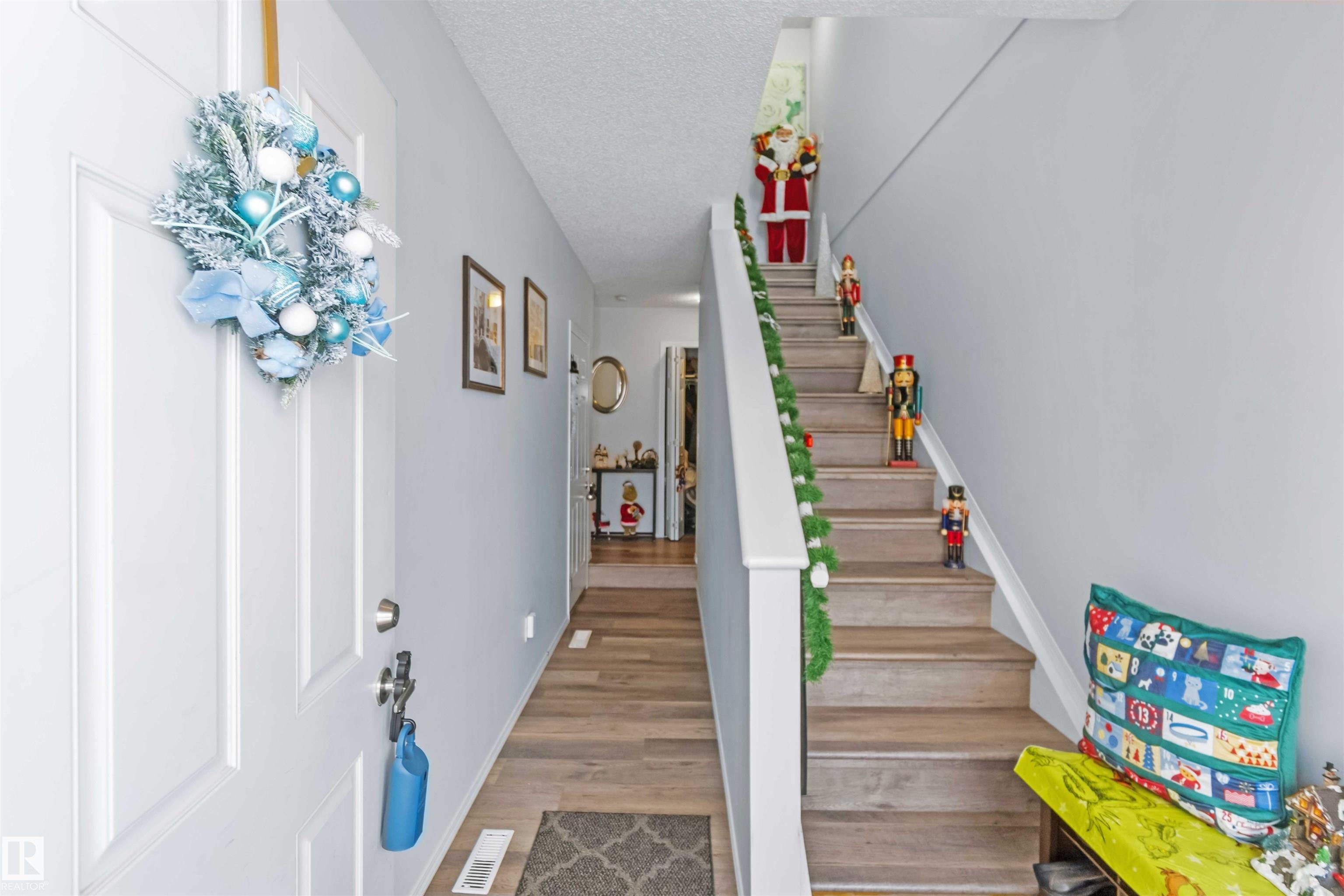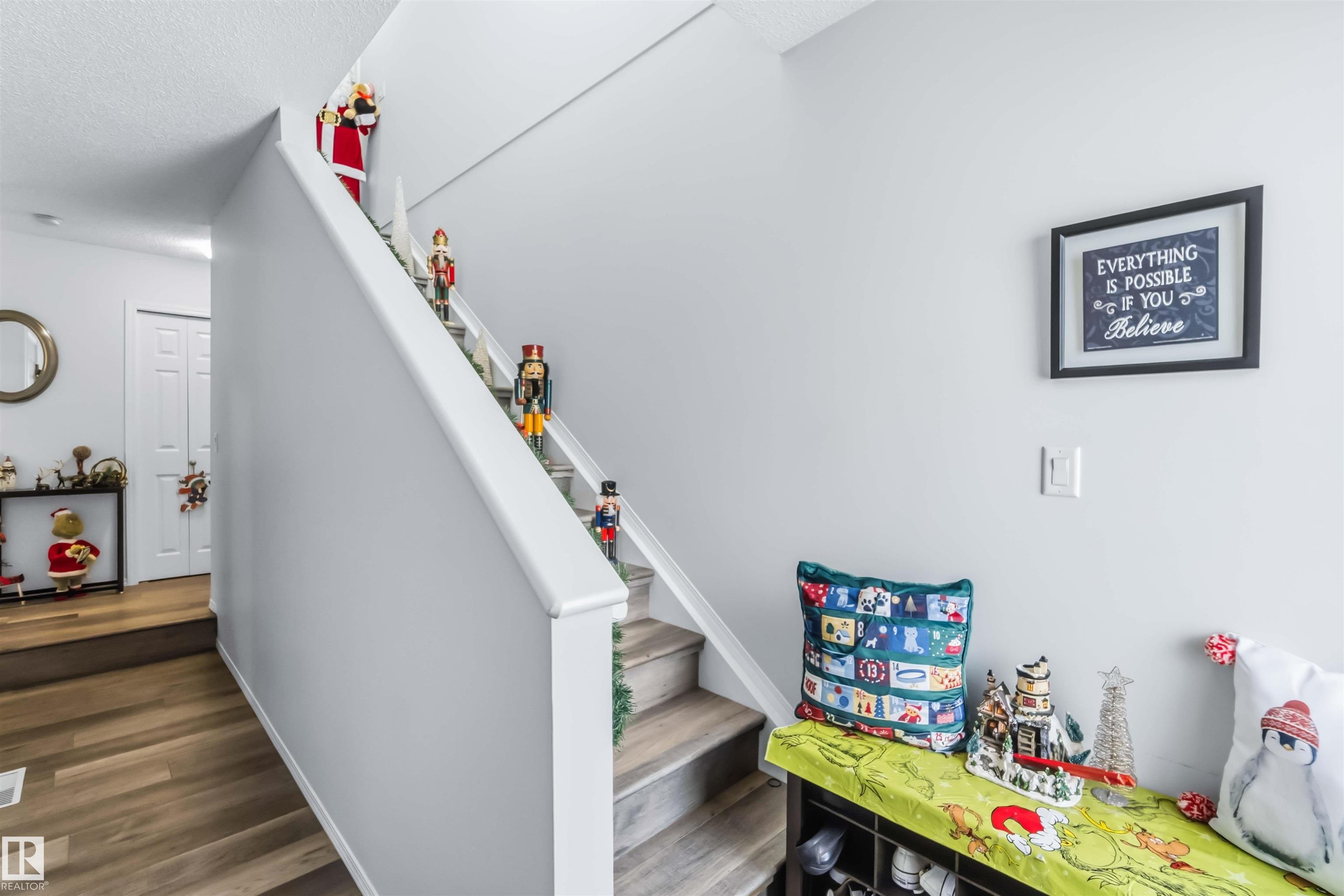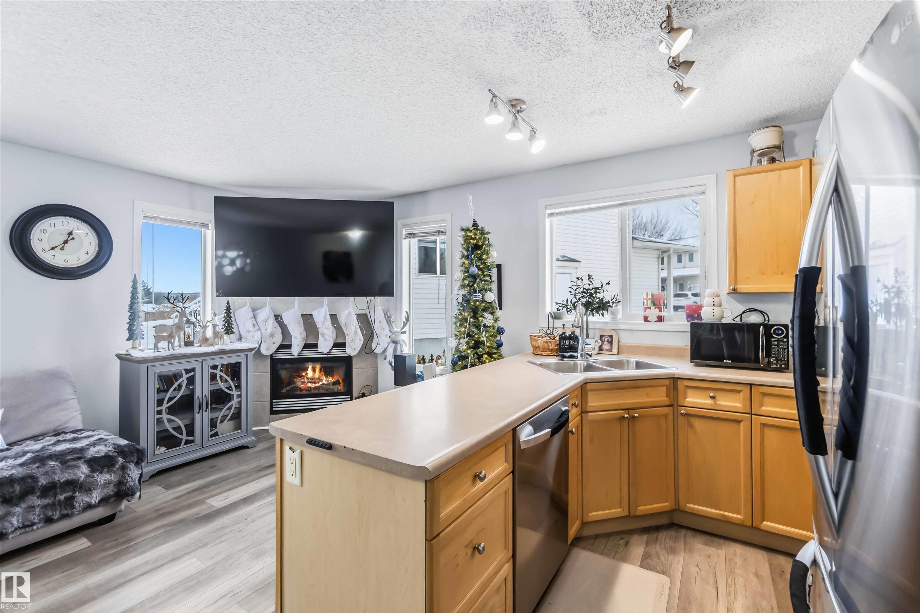 Experience the best of townhouse living in this PET-FRIENDLY, upgraded END UNIT backing directly onto a serene green space! Flooded with natural light from large side and rear windows, the open-concept design is elevated by LVP flooring that flows seamlessly throughout the main and upper levels. The stylish kitchen is a chef's delight, equipped with generous cabinetry, a spacious dining peninsula, and NEW kitchen appliances (2025). The living room is the perfect retreat for all seasons, offering a cozy gas fireplace for winter nights and central A/C (2024) to keep you cool all summer. Step through the large glass doors to your private deck to enjoy sunset views and summertime BBQs. Upstairs, the cohesive flooring continues into the spacious primary bedroom, which features a walk-in closet, two additional bedrooms, and a full 4-piece bathroom. The value extends downstairs to the fully finished basement featuring a new furnace & HWT (2024), laundry, and bonus space for a home theatre, gym, etc.