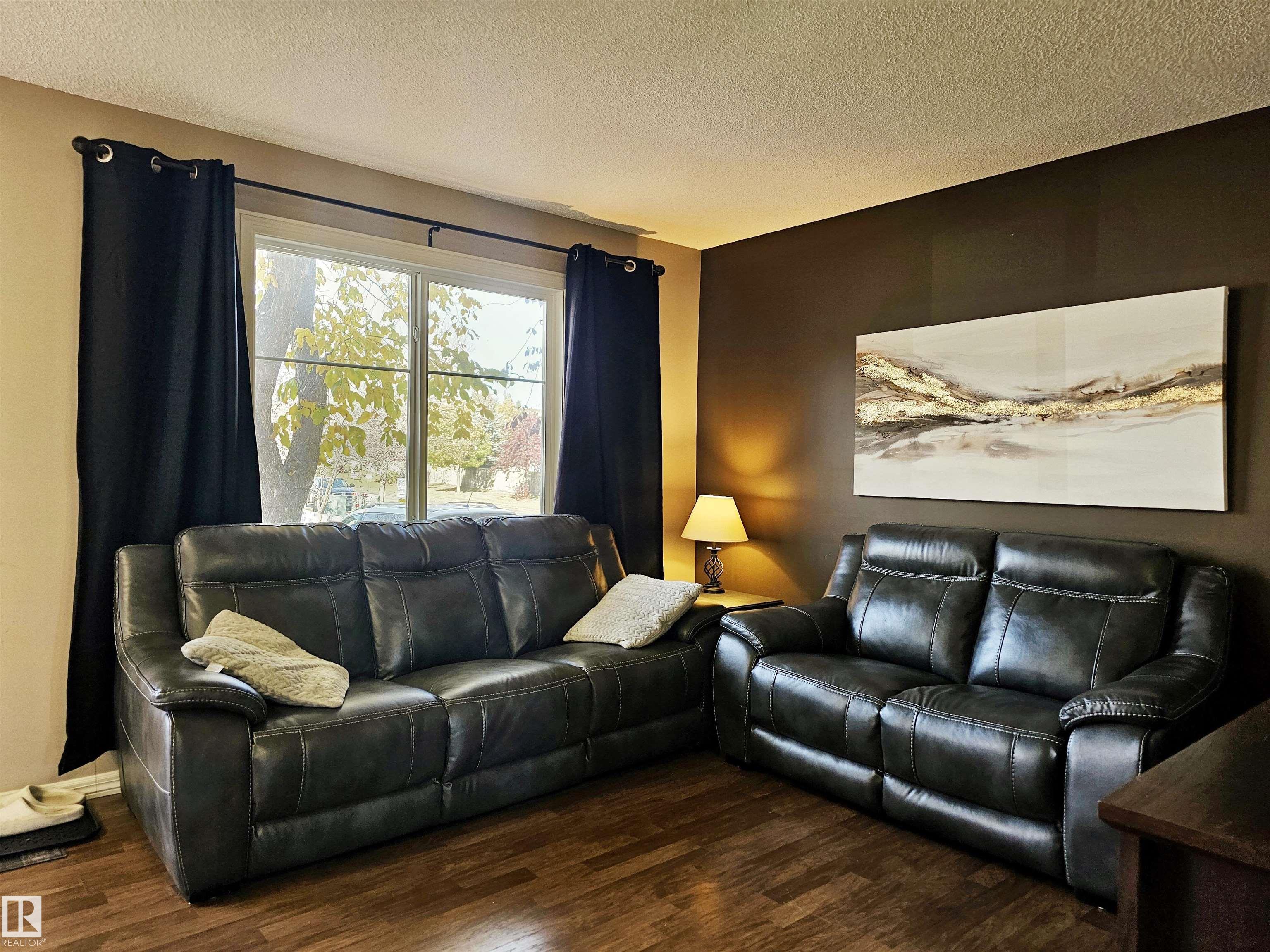 Welcome home to Canon Ridge! This beautifully maintained 3 bedroom townhome BACKING DIRECTLY ONTO A PARK with sunny southeast exposure, offering the perfect blend of comfort, convenience, and natural light. Step inside to find fresh paint and espresso laminate flooring effortlessly create a warm inviting feel. The main floor features a spacious living area, updated 2-pc bath and convenient main-floor laundry. The kitchen boasts stainless steel appliances, ample cabinetry, and easy flow to the dining area and oversized back deck overlooking the park. Upstairs, enjoy a large primary bedroom with walk-in closet, plus two additional bedrooms and a 4-pc bath. Full basement is ready for your personal touch. TWO ASSIGNED STALLS conveniently located DIRECTLY IN FRONT OF HOME for ease of use and QUICK POSSESSION AVAILABLE. Close to Hermitage Park, river valley trails, and major routes--this home truly has it all!