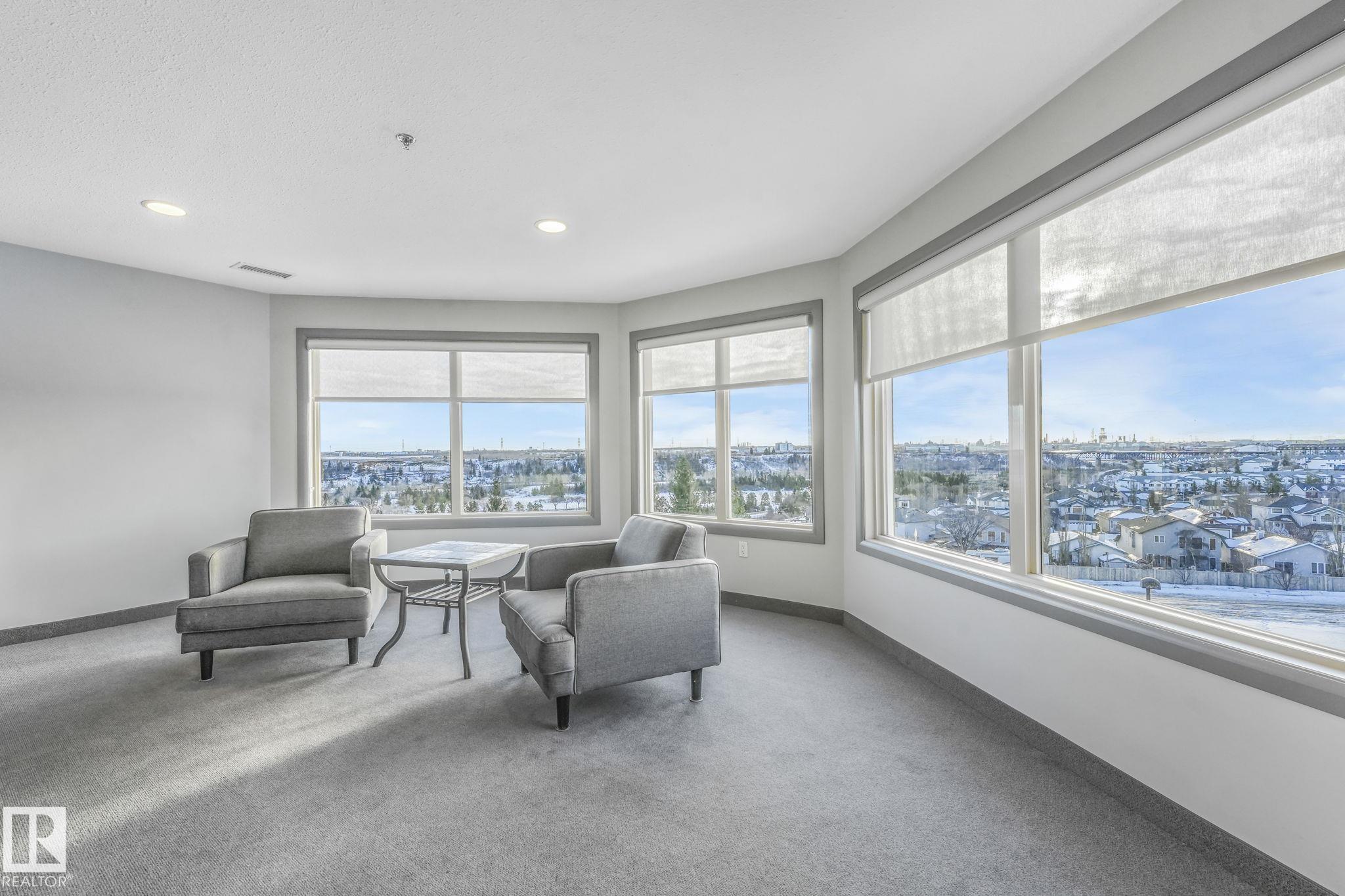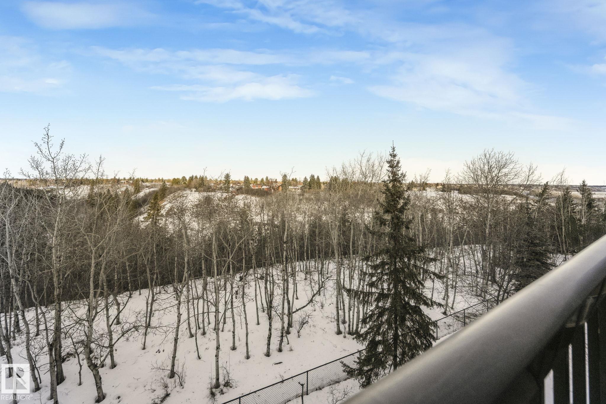 OVERLOOKING THE RAVINE! IMMACULATE TOP FLOOR UNIT. This modern 2 bedroom and 2 full bath, 18+ unit in the "Ridge At Hermitage" is immaculate! Features include: modern open concept kitchen with expansive breakfast bar, bright and warm ceiling height cabinets, spacious living room, large balcony, insuite laundry/storage, central elevators and underground parking stall with storage cage., Main bedroom has a walk-through closet and a 3pc ensuite. 2nd bedroom is next to a 4pc bath and has a custom murphy bed that converts to a desk and filing cabinet(5000. value). Bedrooms are on opposite ends of unit perfect for company/room mate. Parking is close to elevator. Extra features: A/C, visitor parking, car wash, Social and Exercise rooms. All utilities are included in the condo fees, except power PET FREINDLY with board approval close to off leash area. Extensive walking/biking trails, skiing and golf nearby. Quick access to all amenities and major routes!