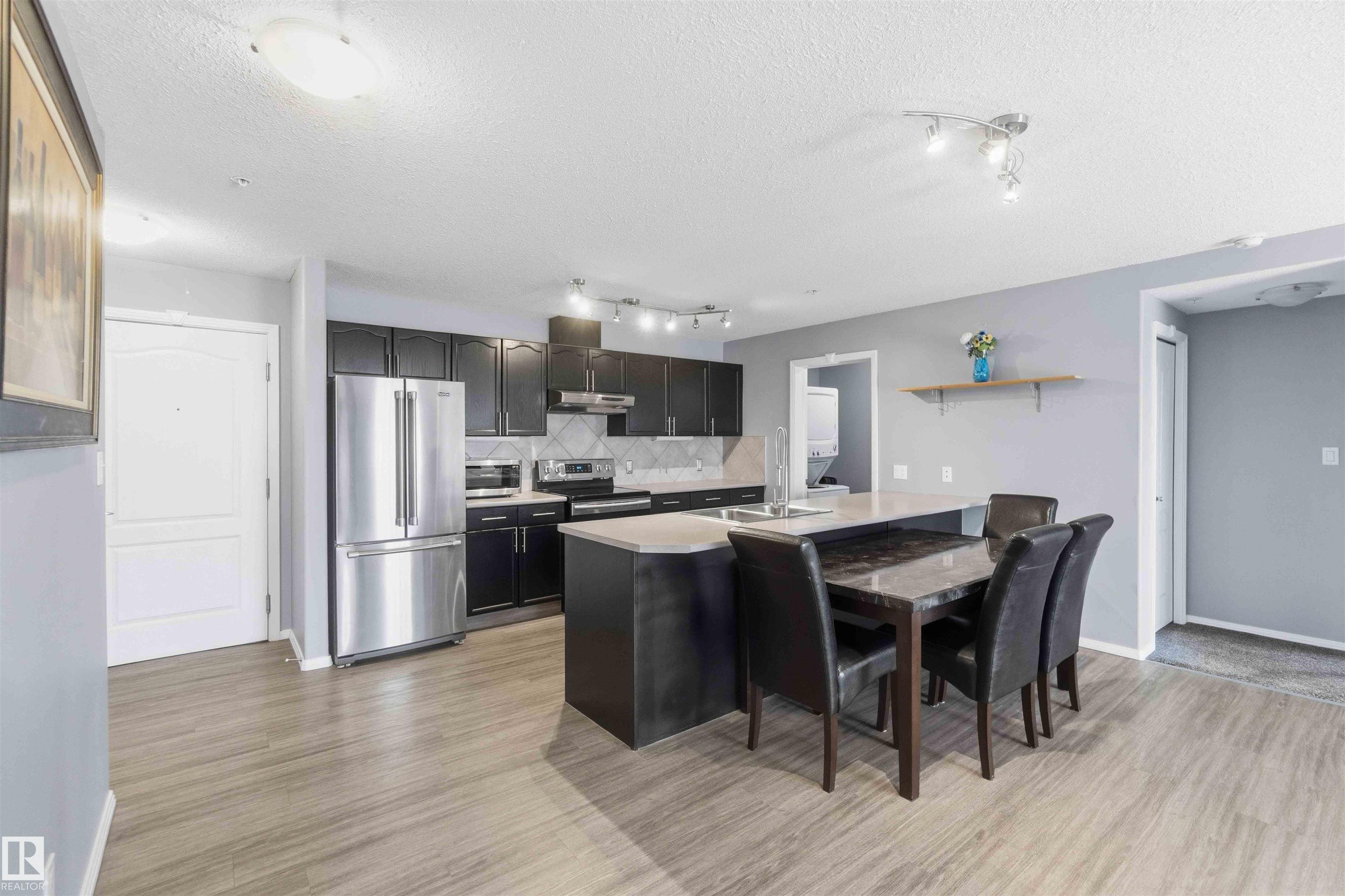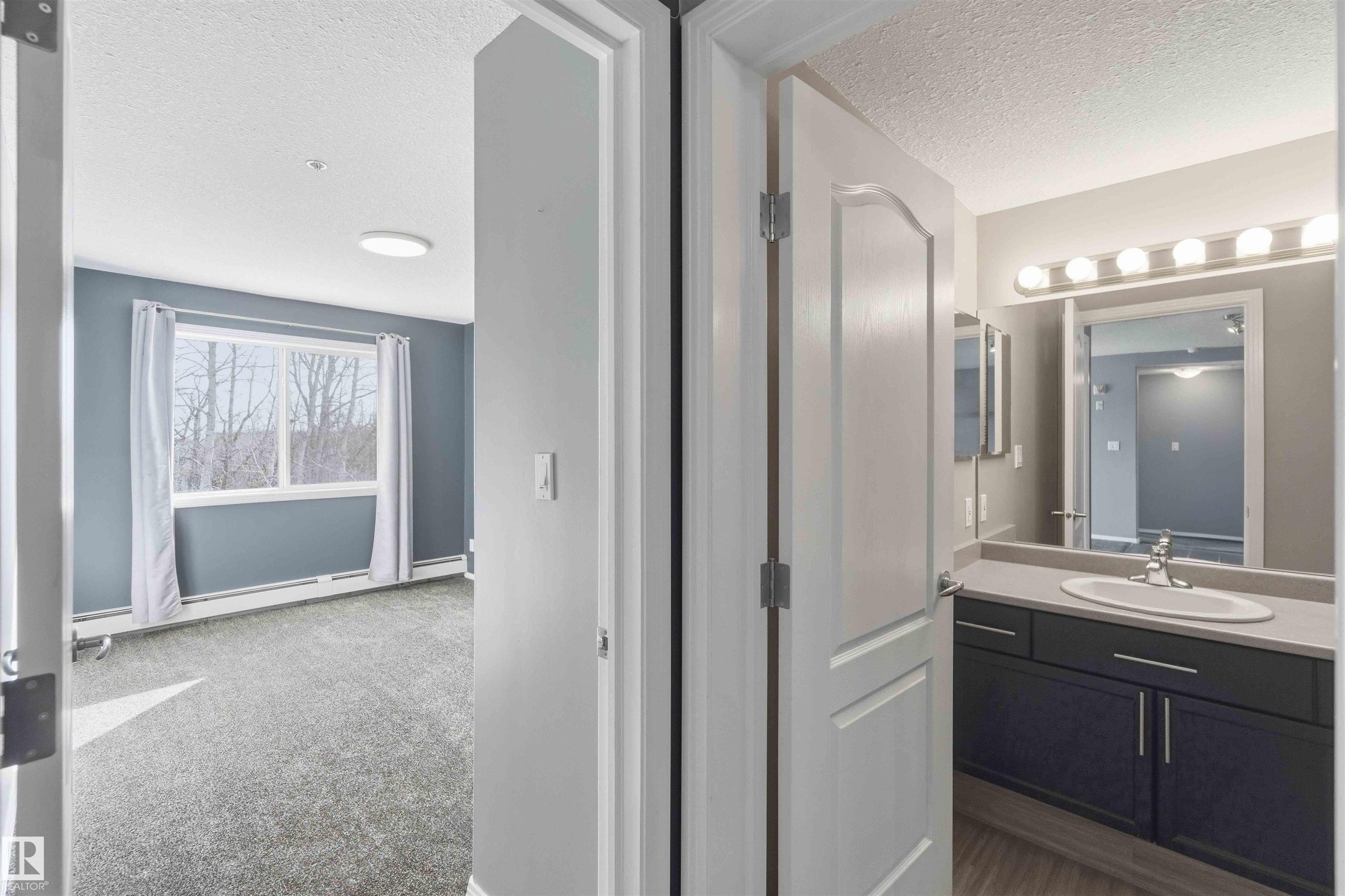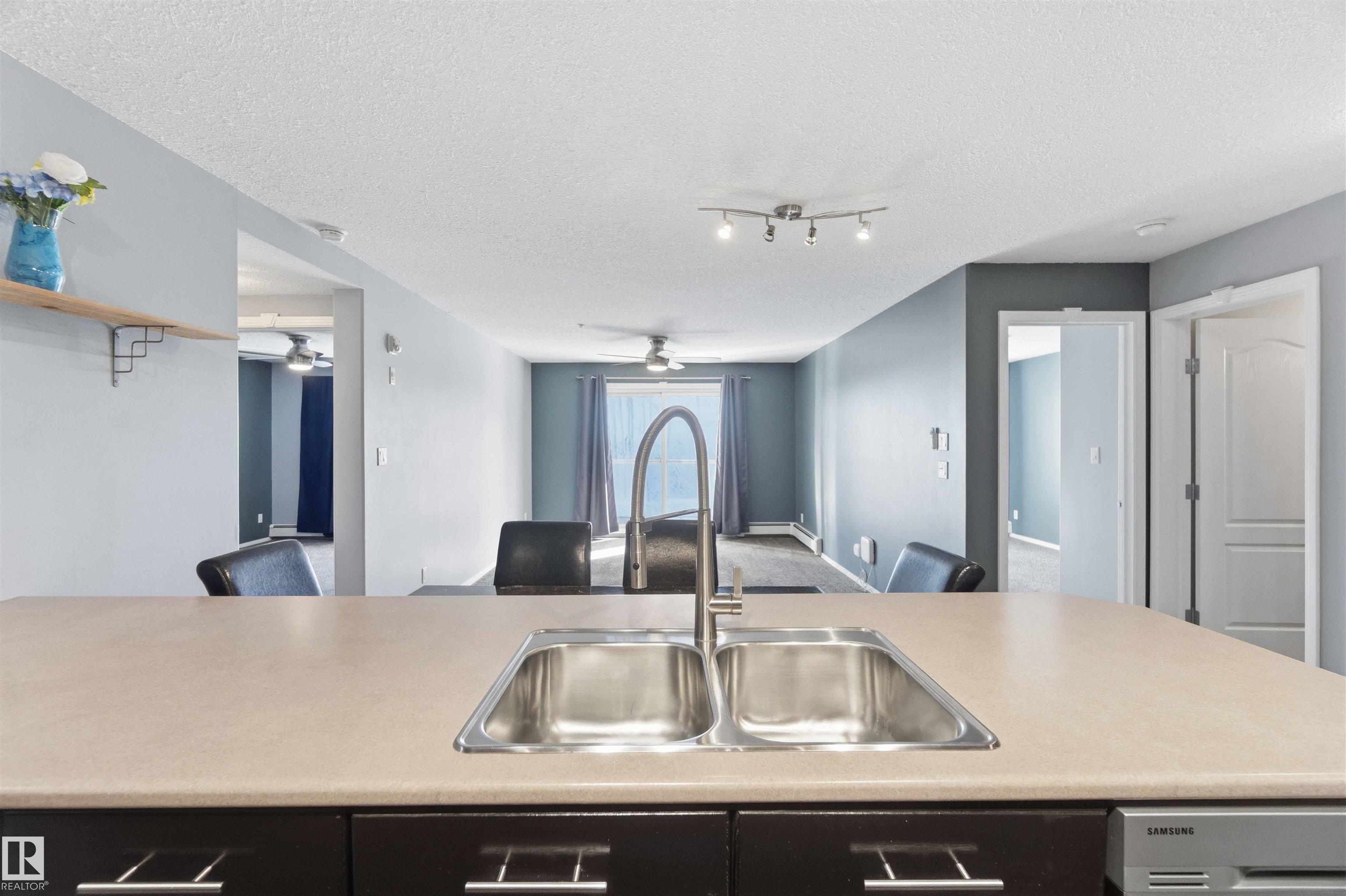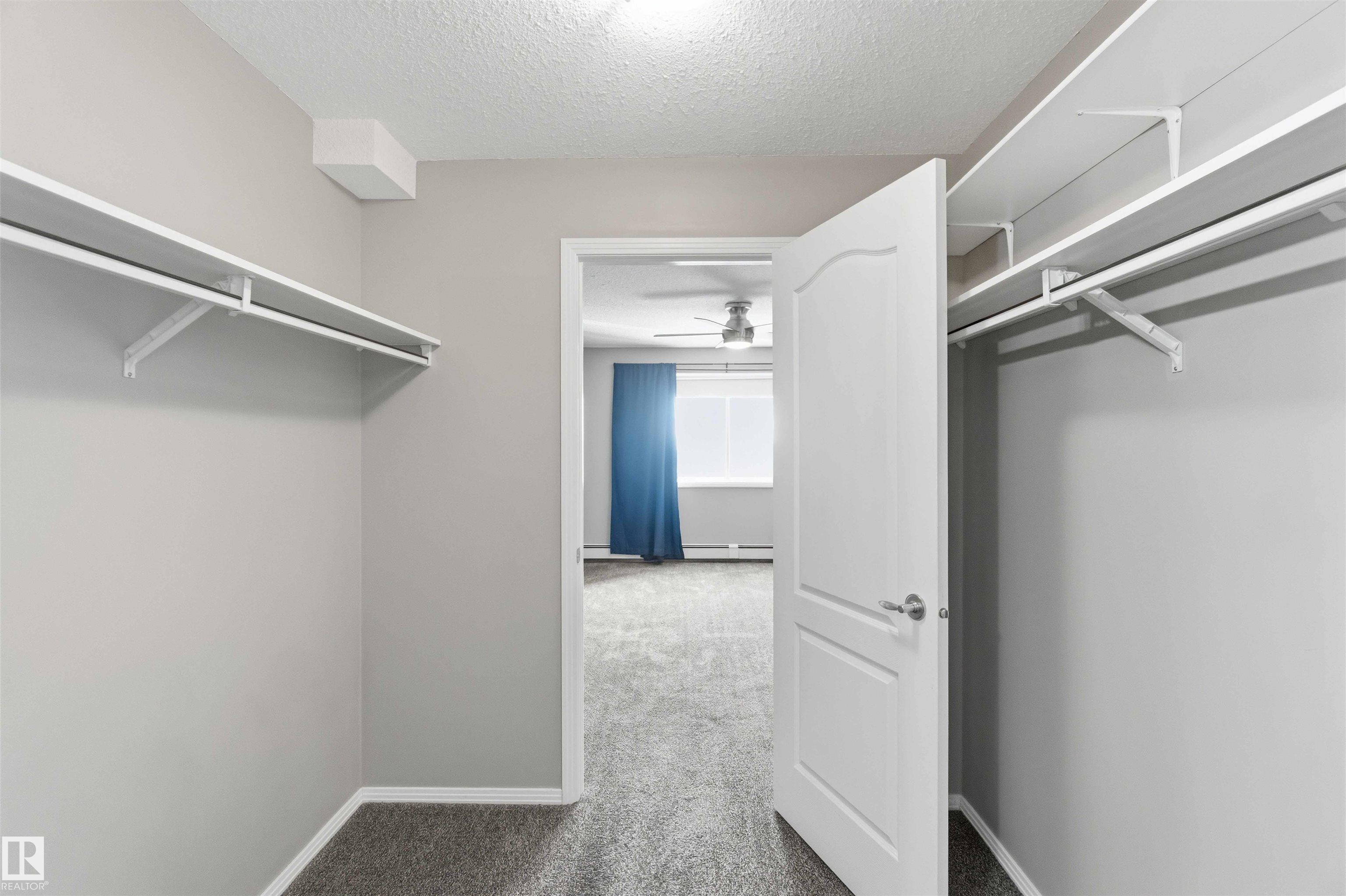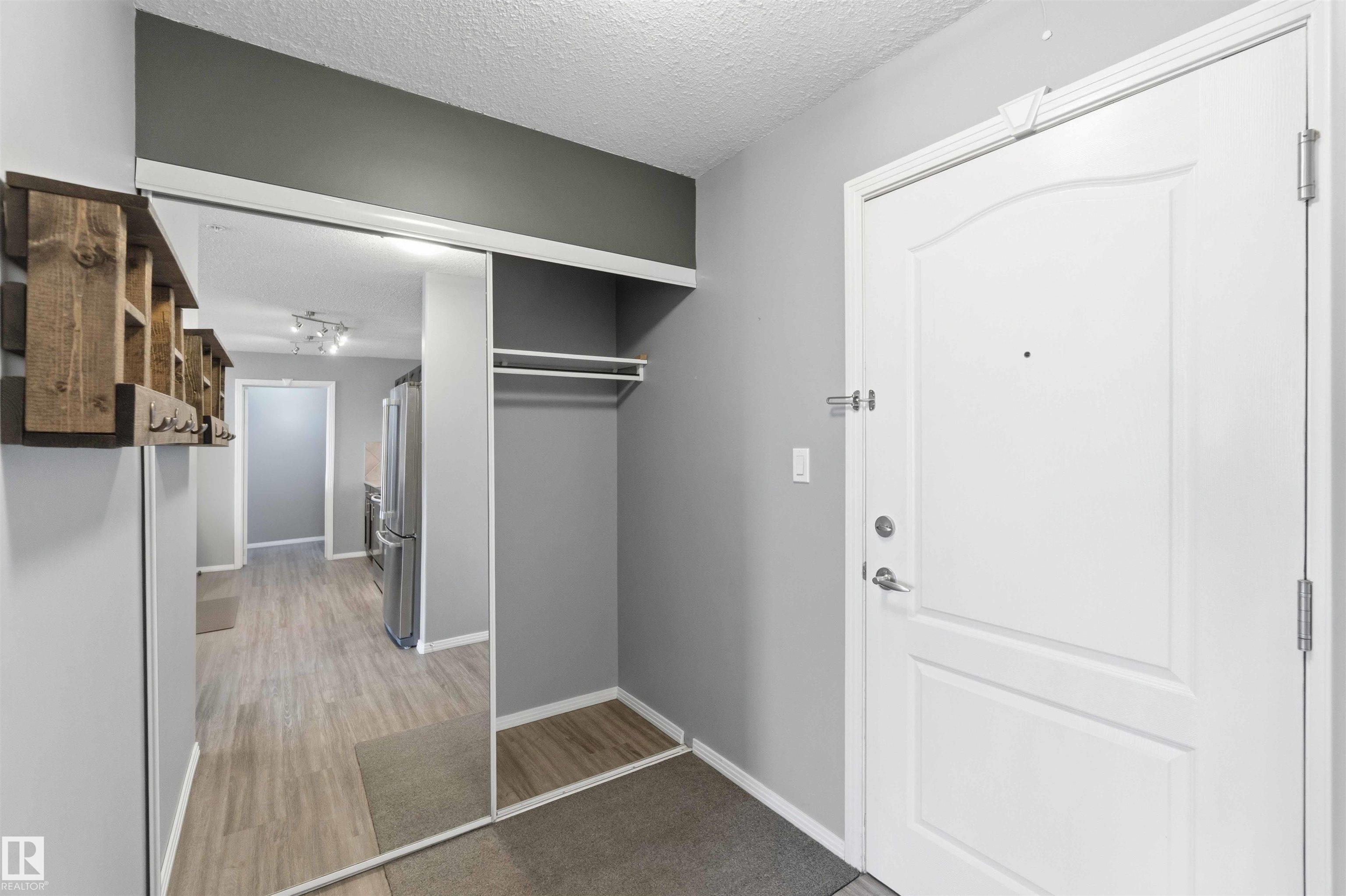 Featuring beautiful forest & ravine views, this modern 1,011 SqFt suite has TWO BEDROOMS + TWO FULL BATHS + heated/underground parking stall! Walk through the front door of this gorgeous home and you are welcomed by an open concept kitchen & living space. Enjoy a modern kitchen offering stainless steel appliances, large countertops, centre island and substantial cupboard storage. Like new in-suite stacked washer & dryer in the separate laundry + storage room. Walkout east-facing deck is perfectly quiet with calming forest views + has natural gas BBQ connection. The building itself is situated in a prime north Edmonton location, a stone's throw to ample shopping and ALL amenities. This home comes with 1 titled parking stall + an assigned handy storage cage in a heated underground parkade. ALL furnishings currently in unit included in sale. This home has been upgraded, meticulously well maintained and is great value, just turn the key and move in. This property is priced perfectly - don't miss out!