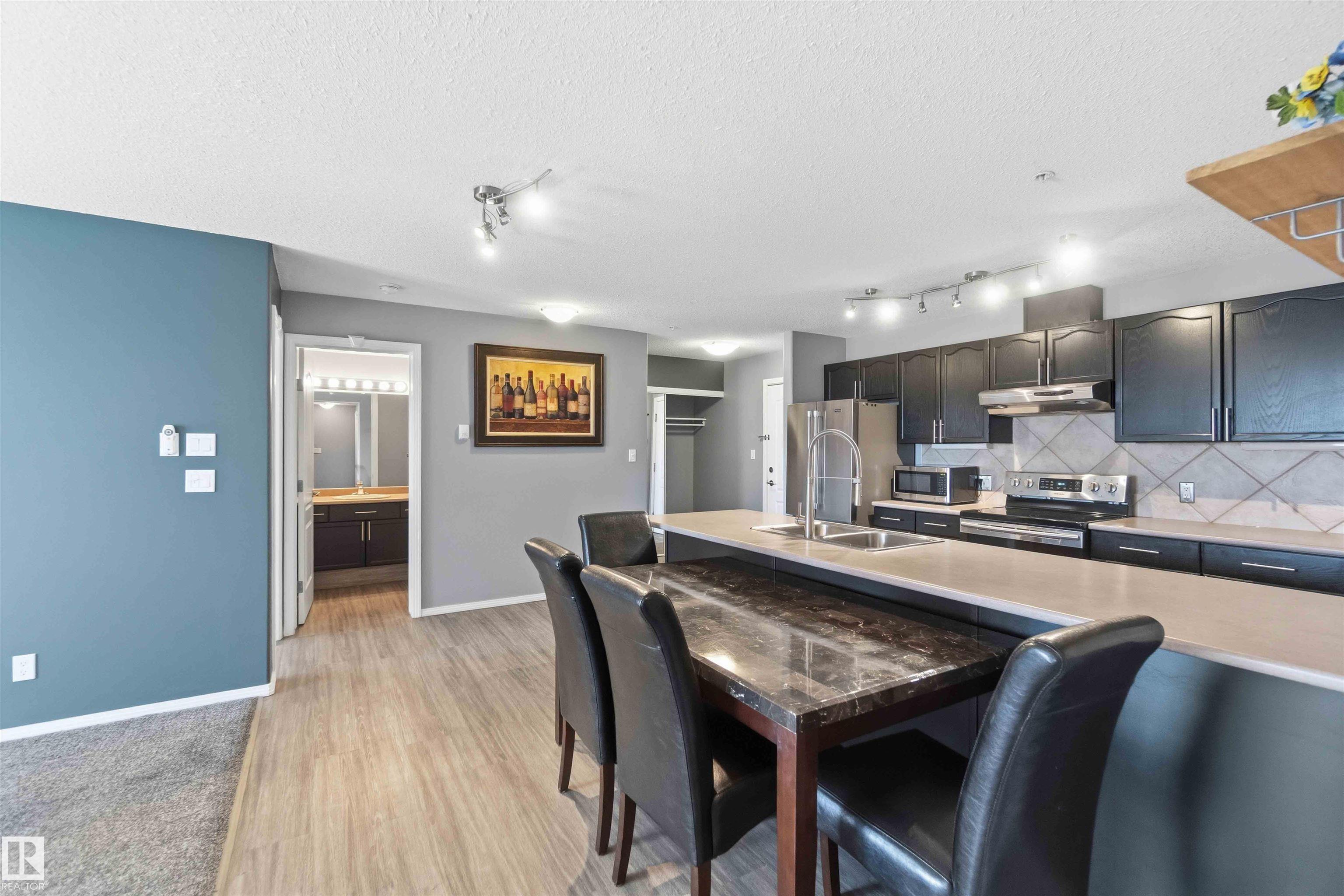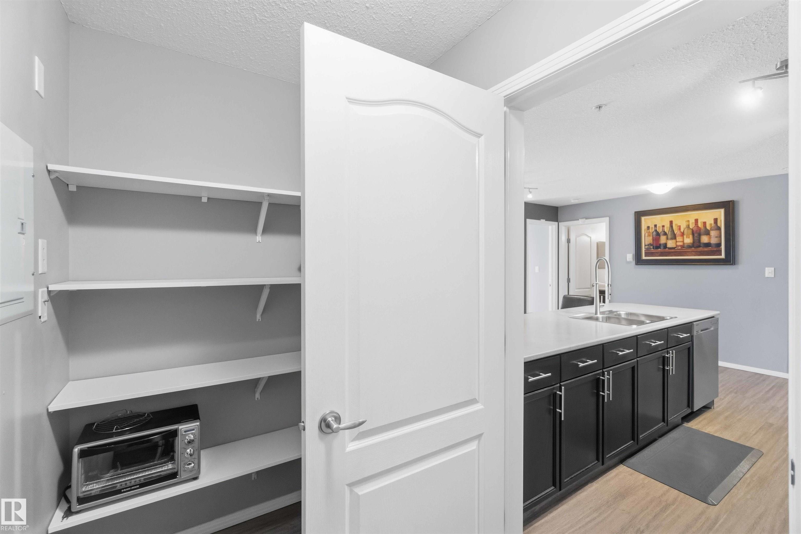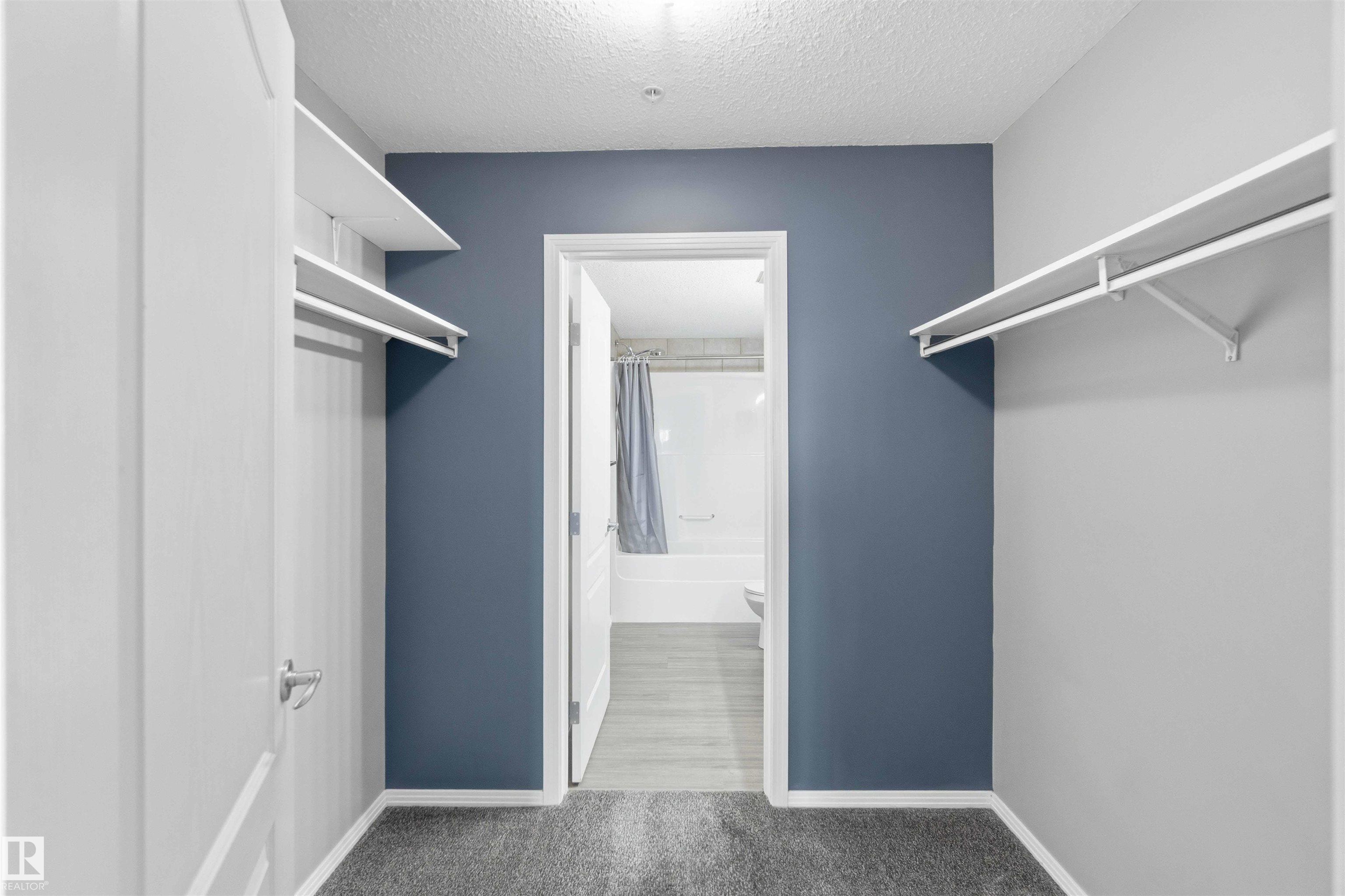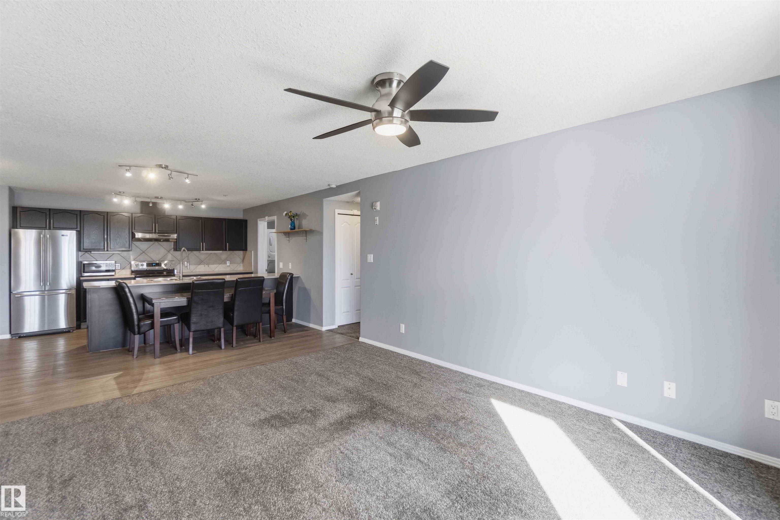 Featuring beautiful forest & ravine views, this modern 1,011 SqFt suite has TWO BEDROOMS + TWO FULL BATHS + heated/underground parking stall! Walk through the front door of this gorgeous home and you are welcomed by an open concept kitchen & living space. Enjoy a modern kitchen offering stainless steel appliances, large countertops, centre island and substantial cupboard storage. Like new in-suite stacked washer & dryer in the separate laundry + storage room. Walkout east-facing deck is perfectly quiet with calming forest views + has natural gas BBQ connection. The building itself is situated in a prime north Edmonton location, a stone's throw to ample shopping and ALL amenities. This home comes with 1 titled parking stall + an assigned handy storage cage in a heated underground parkade. ALL furnishings currently in unit included in sale. This home has been upgraded, meticulously well maintained and is great value, just turn the key and move in. This property is priced perfectly - don't miss out!
