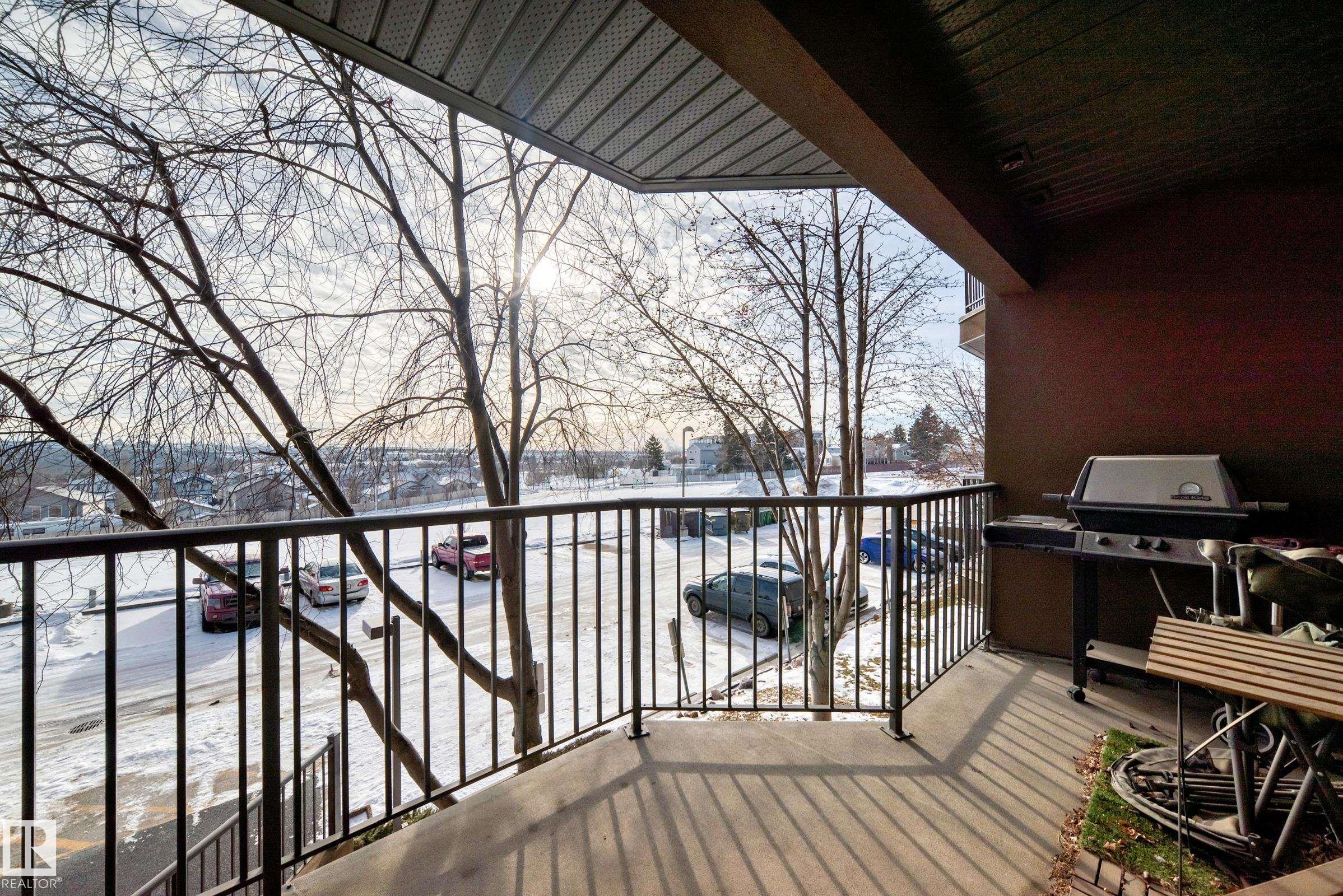 Bright and spacious 18+ condo perfectly situated on the second floor with beautiful river valley views. This sun-filled, open-concept unit features a generous living room that opens onto a large balcony--ideal for relaxing or entertaining--and a convenient 2-piece bathroom. The well-designed kitchen offers new stainless steel appliances, including a refrigerator, stove and microwave, a flush central island and plenty of cabinetry. The spacious primary bedroom boasts a walk-through closet and a private 4-piece ensuite. Additional features include all utilities, in-suite laundry and extra storage. Residents enjoy excellent building amenities, including a social room with pool table, kitchen, and reading nook, as well as a fully equipped fitness centre with steam room. Ideally located with quick access to Anthony Henday Drive, Yellowhead Trail, public transit and nearby shopping.