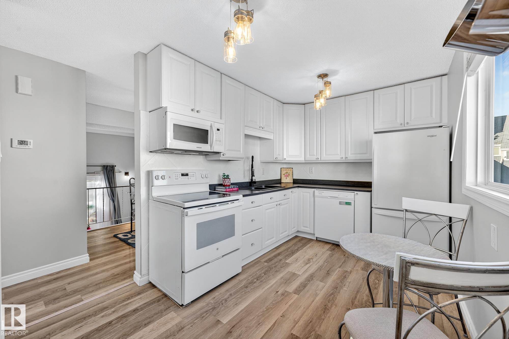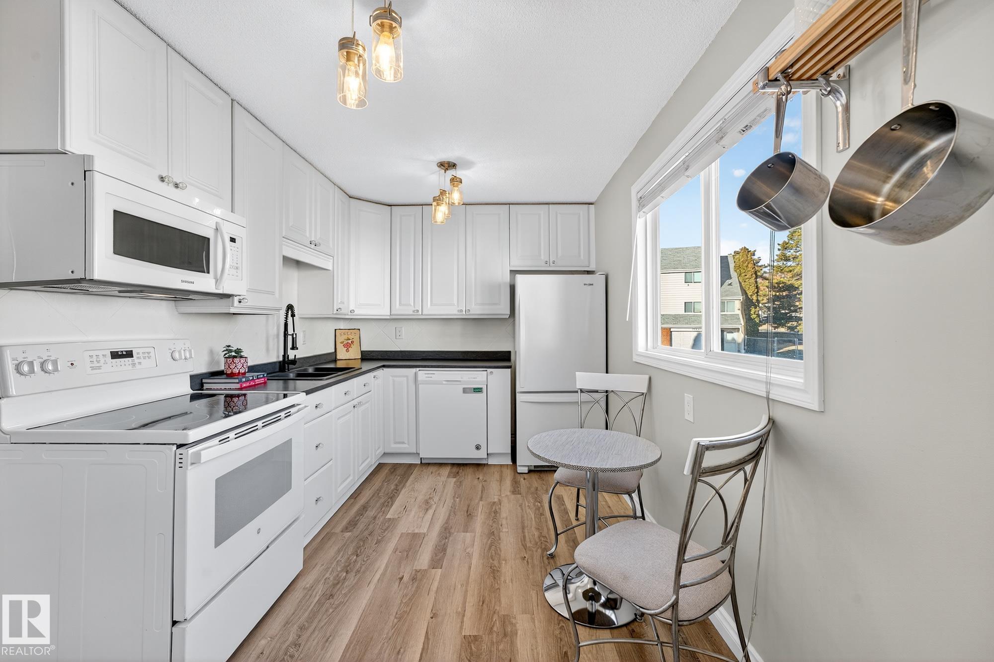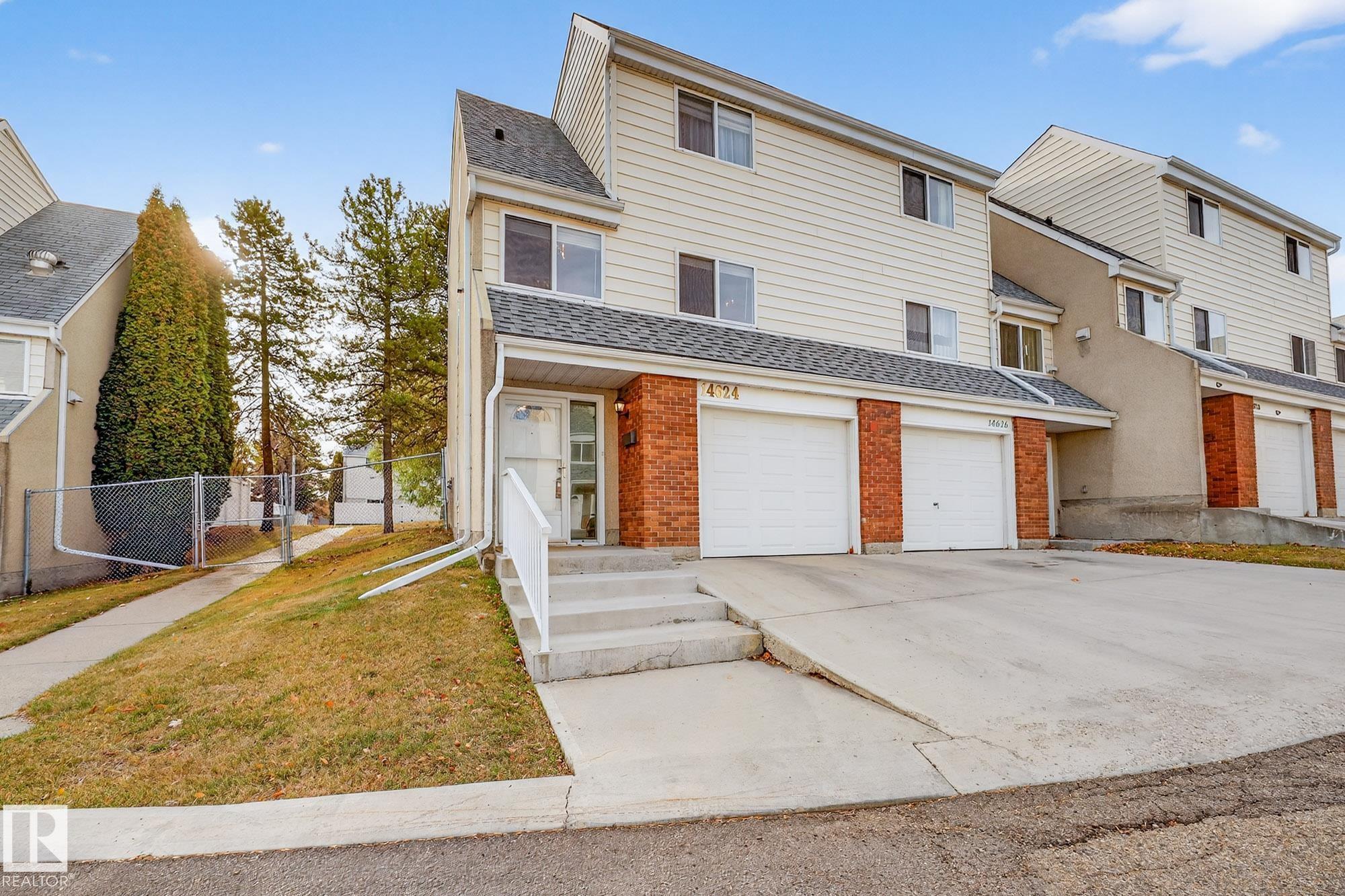 Chic, bright, stunningly renovated & beautifully priced! Discover Hillside Terrace -- a charming haven surrounded by mature trees & vibrant greenery in Casselman. This sensational, air-conditioned 3 bed + den, 1.5 bath end unit offers over 1140 sqft of living space, a sunny south-facing backyard with vinyl fencing, a single attached garage incl. EV charger, with inside access, plus enjoy an additional parking stall right out front! Stylish & full of character, impressing with soaring 12' ceilings & expansive windows that flood the living room with natural light. The open layout connects the elevated dining area to the grand living room below, creating an airy, inviting space, perfect for relaxing & entertaining. Morning coffees and casual dinners have a perfect spot in the bright & well appointed kitchen. Step through the gate in your private fenced yard, enjoy the park-like surroundings -- perfect for evening walks or playtime with your pets. Peaceful, practical, full of personality -- this one's a gem!