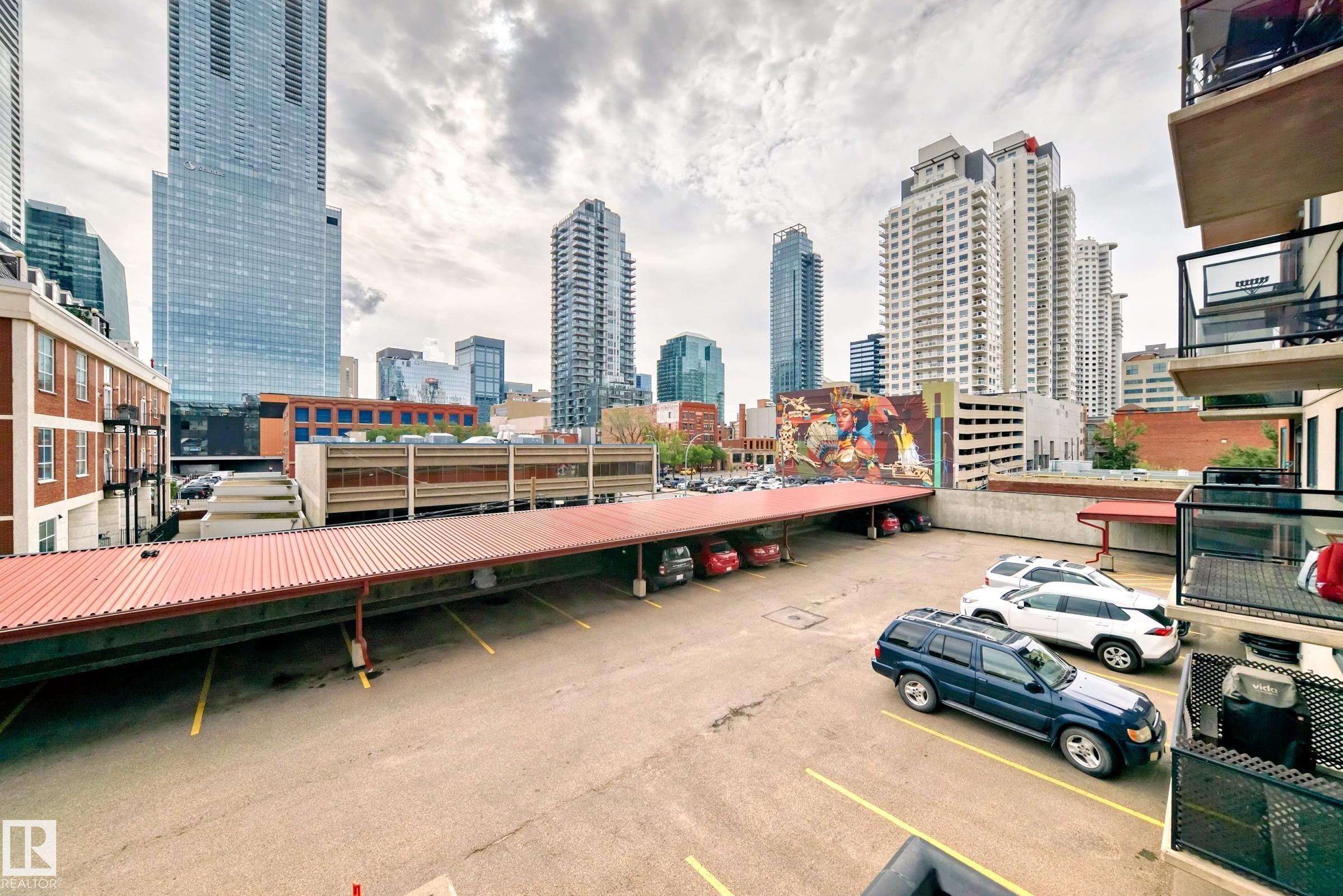 Welcome to The Legacy, ideally located just steps from Rogers Place, MacEwan University, the Ice District, and 104 Street's vibrant farmers market, cafes, and restaurants! This bright and spacious 2-bedroom, 1-bath condo offers modern living space with an open-concept layout and large windows that fill the home with natural light. The kitchen features stainless steel appliances, ample storage, and flows seamlessly into the expansive living/dining area - perfect for entertaining. Enjoy the added convenience of in-suite laundry, two walk-in closets, and a good sized patio with gorgeous downtown views. This well-maintained building includes a fitness center, titled parking, and secured bike room. Walk to groceries, LRT, bike trails, nightlife, and downtown offices. Whether you're a student, professional, or investor, this is urban living at its best!