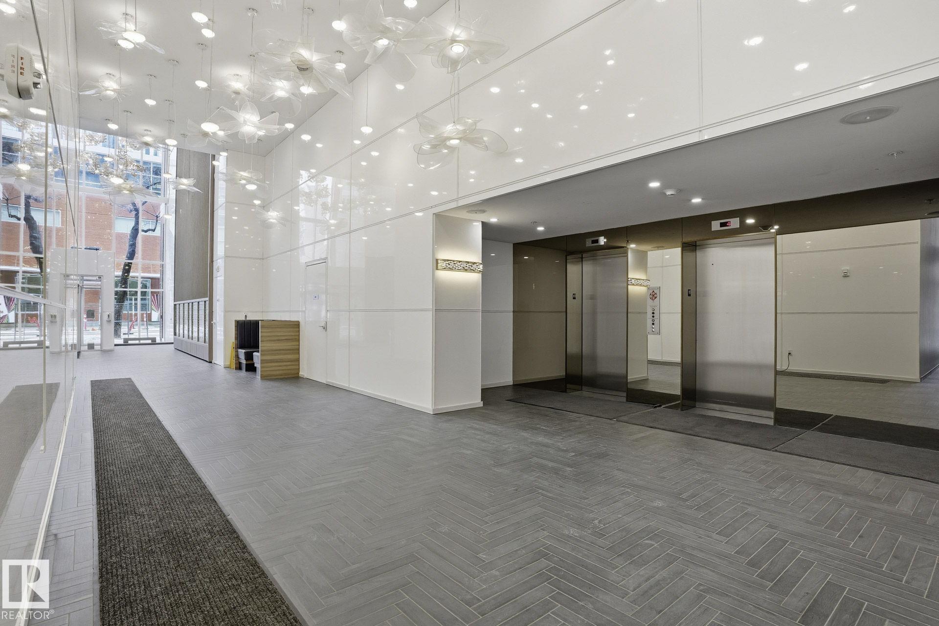 Introducing a new level of luxury. You will find modern elements in every corner of this functional living space. Encore Tower is a sleek and modern designed building located just steps from the ICE District, Rogers Arena, and 104 Street amenities. This incredible 2 bedroom, 2 bathroom unit offers one of a kind downtown living. Featuring luxury Vinyl Plank flooring, a modern kitchen design with stainless steel appliances, quartz counters and eat-in bar, spacious living area with 9'ceilings, and floor to ceiling windows. The primary bedroom offers its own private 3pce ensuite and walk-in closet. In-suite laundry and convenient garbage chute on every floor. Unit includes a titled heated underground parking stall. Living in this spectacular tower comes with concierge service, 24hr security, access to the 4th floor rooftop hot tub, outdoor sun lounge, exclusive fitness center, and social room.