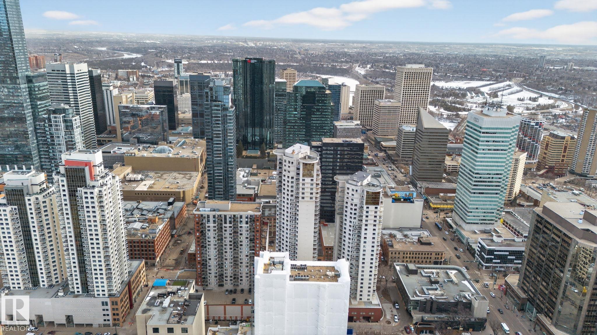 Experience elevated urban living in the heart of Downtown Edmonton. This sophisticated 2 bedroom, 2 bathroom residence offers exceptional value paired with breathtaking city views and an unbeatable central location. Designed with a thoughtful, open concept layout, the suite is bathed in natural light through expansive windows that frame the downtown skyline. The spacious living and dining areas flow seamlessly, creating an ideal setting for both refined entertaining and everyday comfort. Perfect for professionals, students, or first-time buyers seeking a low-maintenance lifestyle, this home places you just steps from dining, shopping, public transit, and all major amenities. Condo fees also include heat, water, and sewer, offering added convenience and peace of mind. An outstanding opportunity to own in one of Edmonton's most vibrant and connected communities.