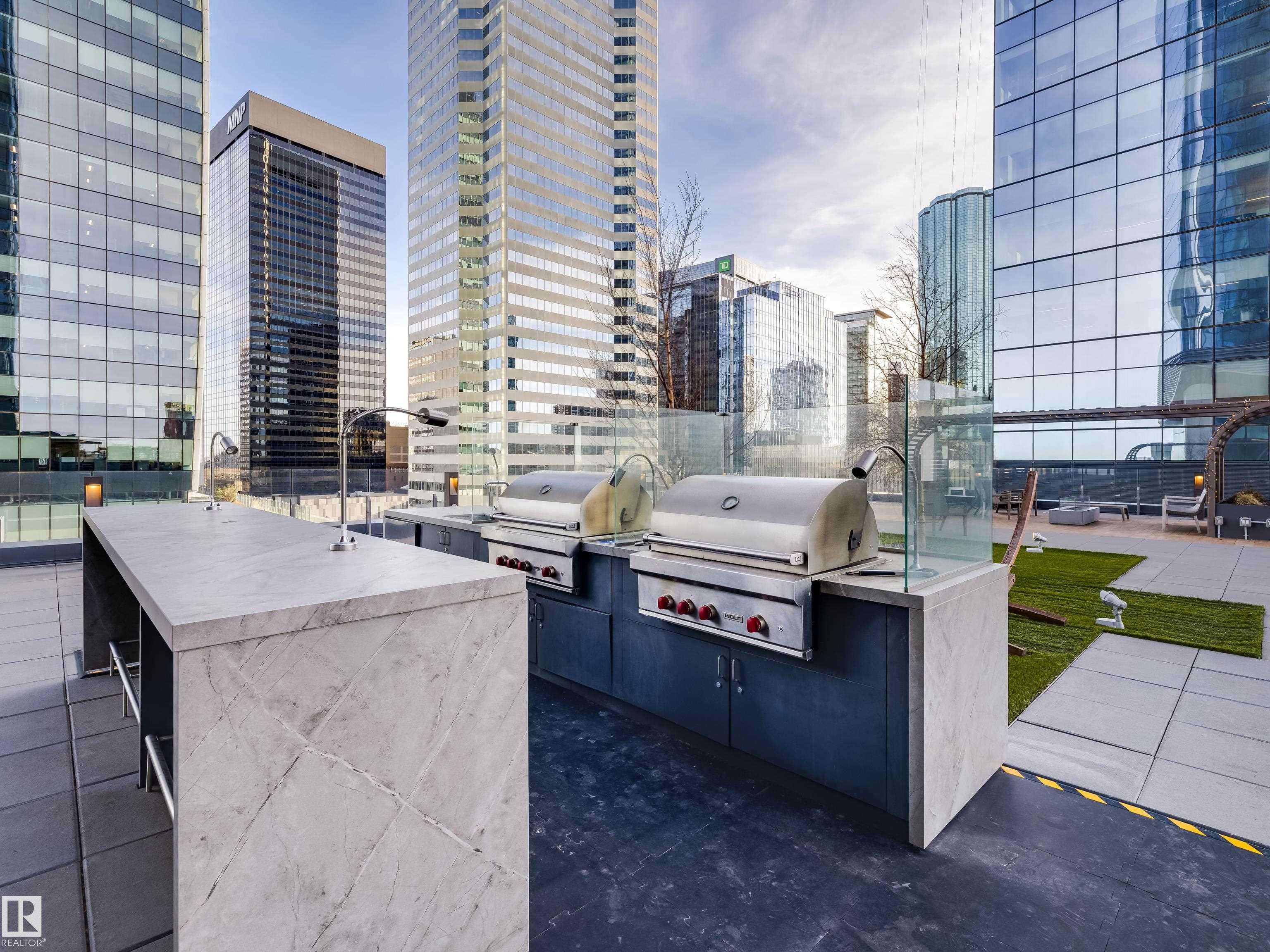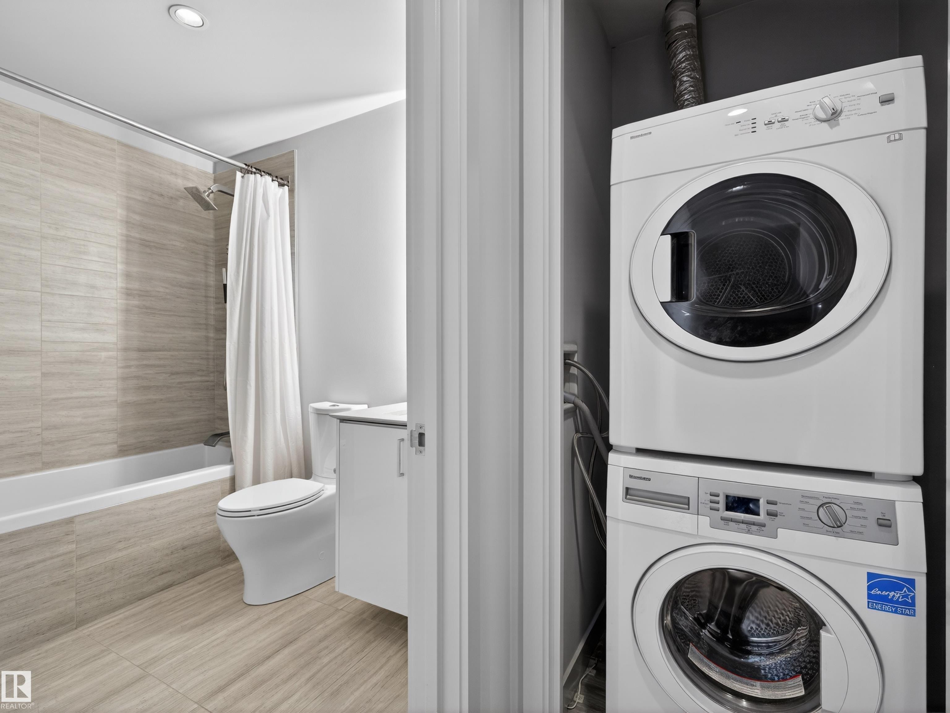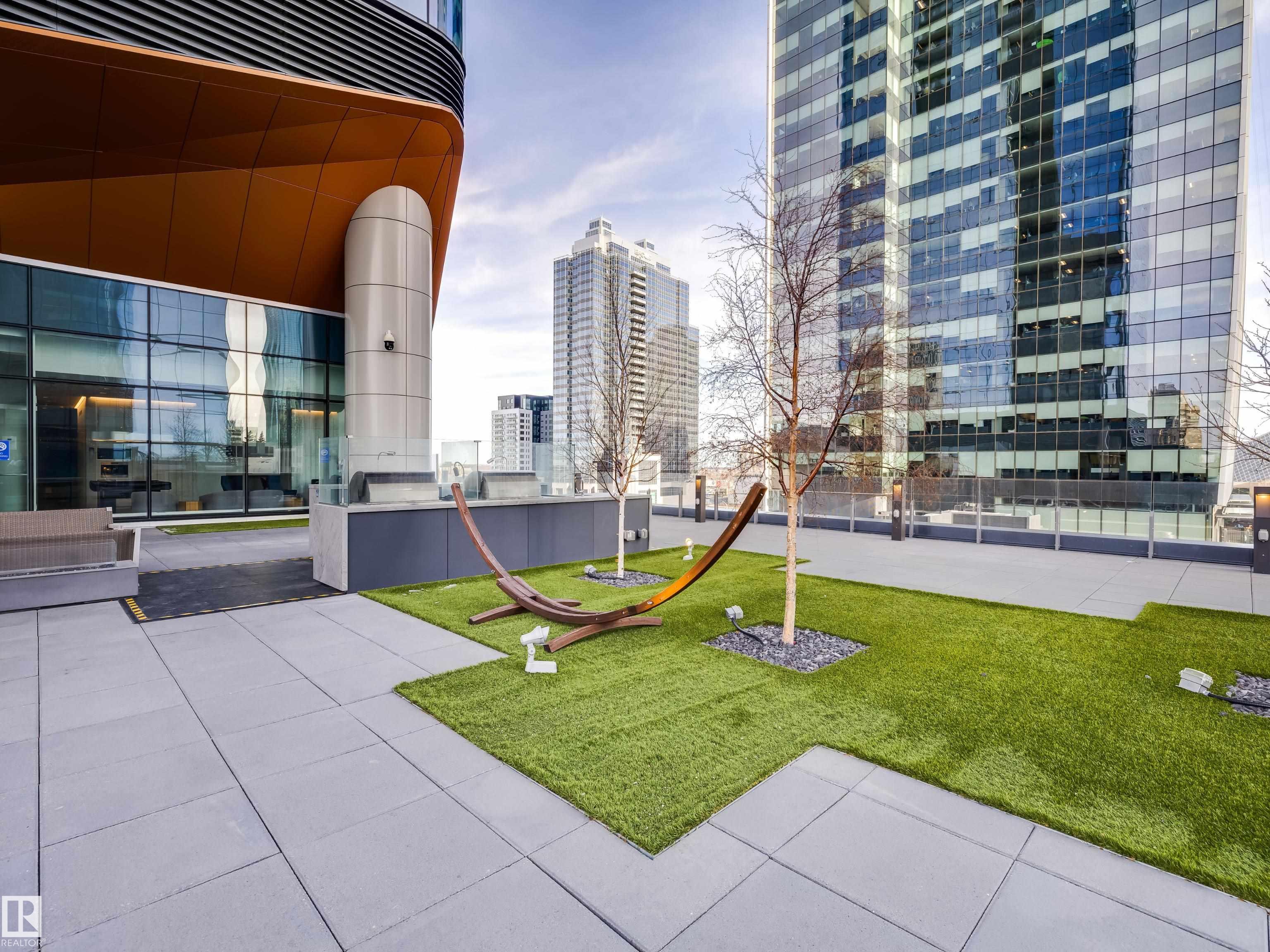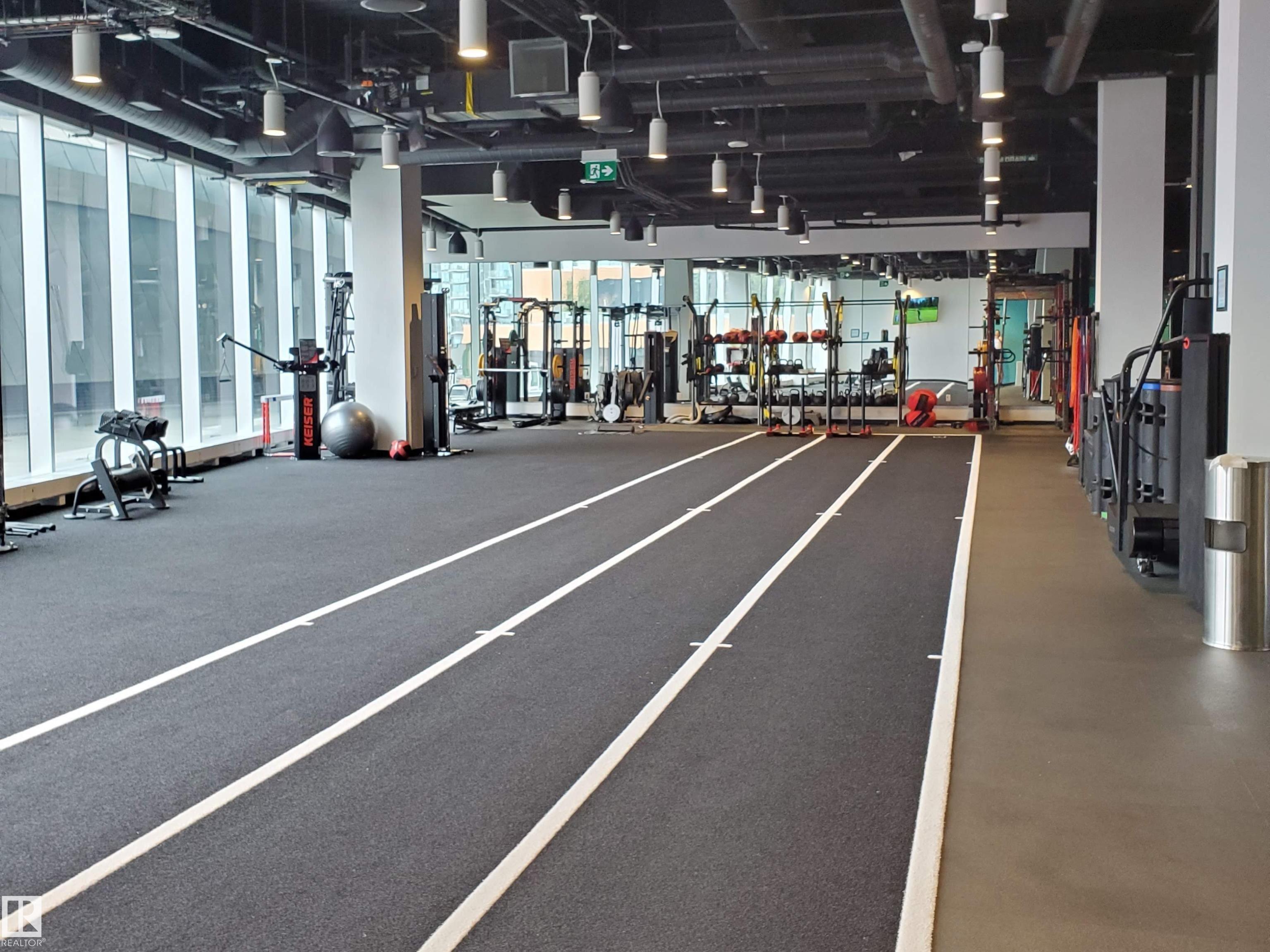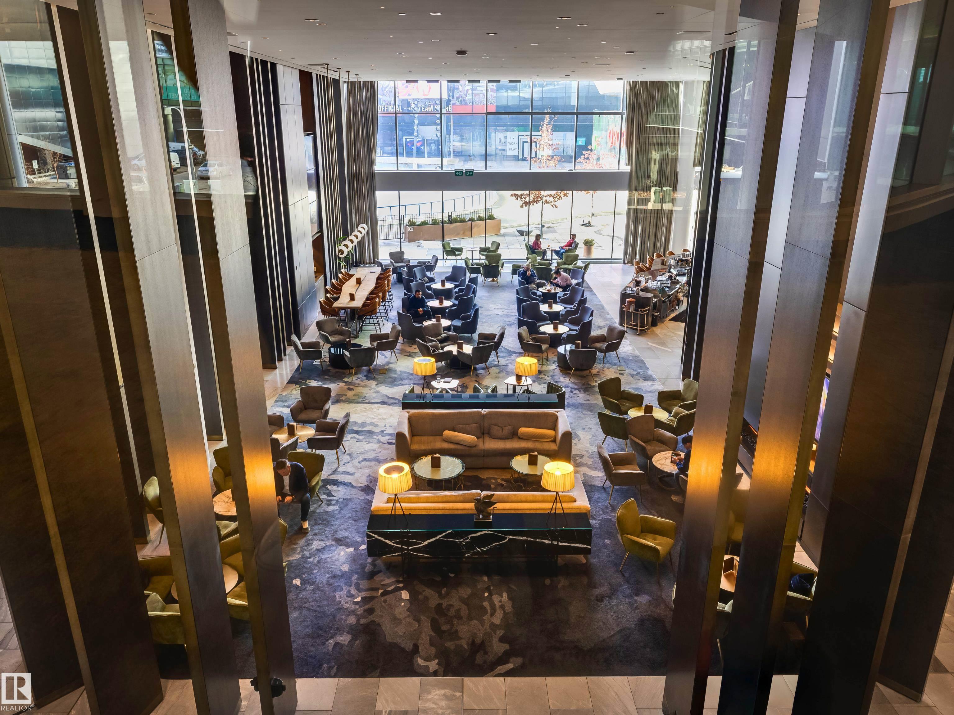 Welcome to The Legends Private Residences, located above the prestigious JW Marriott Edmonton ICE District in the heart of the vibrant ICE District. This stylish, move-in-ready 1 bedroom + den, 1 bathroom residence offers a sophisticated urban lifestyle with NEW engineered hardwood flooring (March 2026), floor-to-ceiling windows, in-suite laundry, and a private balcony showcasing beautiful west-facing sunset views. The modern kitchen features quartz countertops and premium built-in Bosch and Miele appliances. The unit also includes one titled underground parking stall and access to world-class amenities. Residents enjoy membership to the Archetype Fitness Centre, featuring an indoor pool, hot tub, steam room, spa, and full fitness facility, along with exclusive access to The Residence Club, offering a rooftop patio, billiards lounge, conference room, outdoor BBQ patio, dog run, and 24/7 concierge and security. Direct pedway access to Rogers Place, restaurants, shopping, and entertainment steps away.