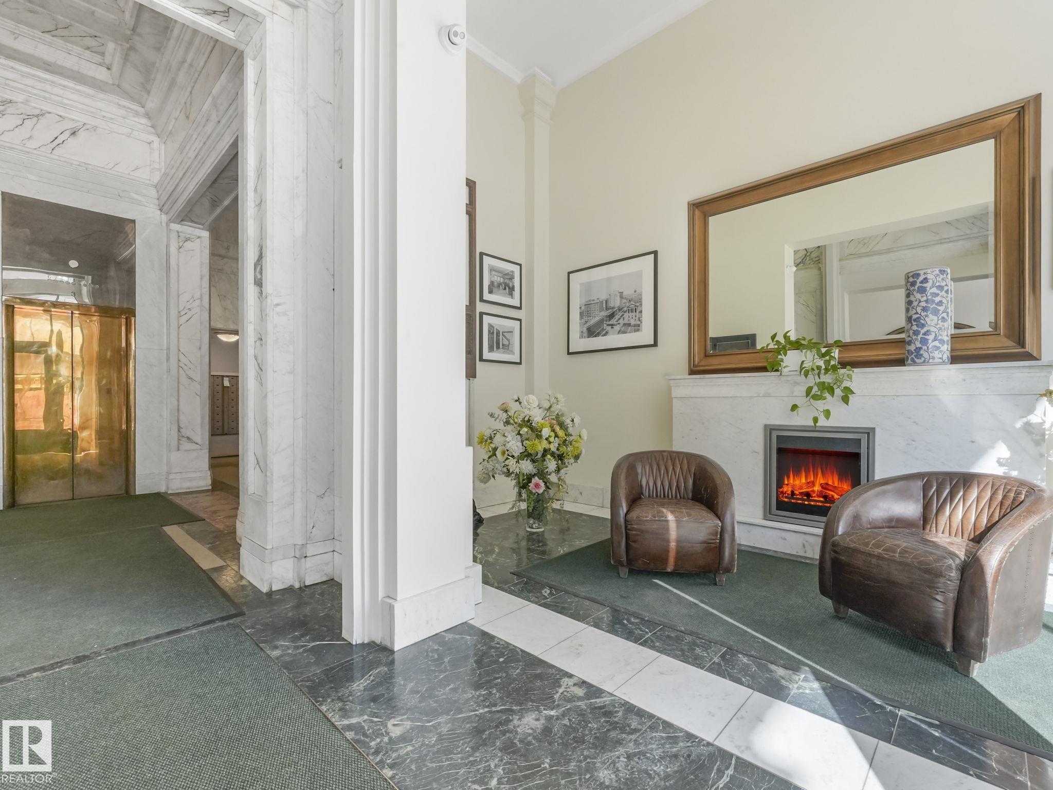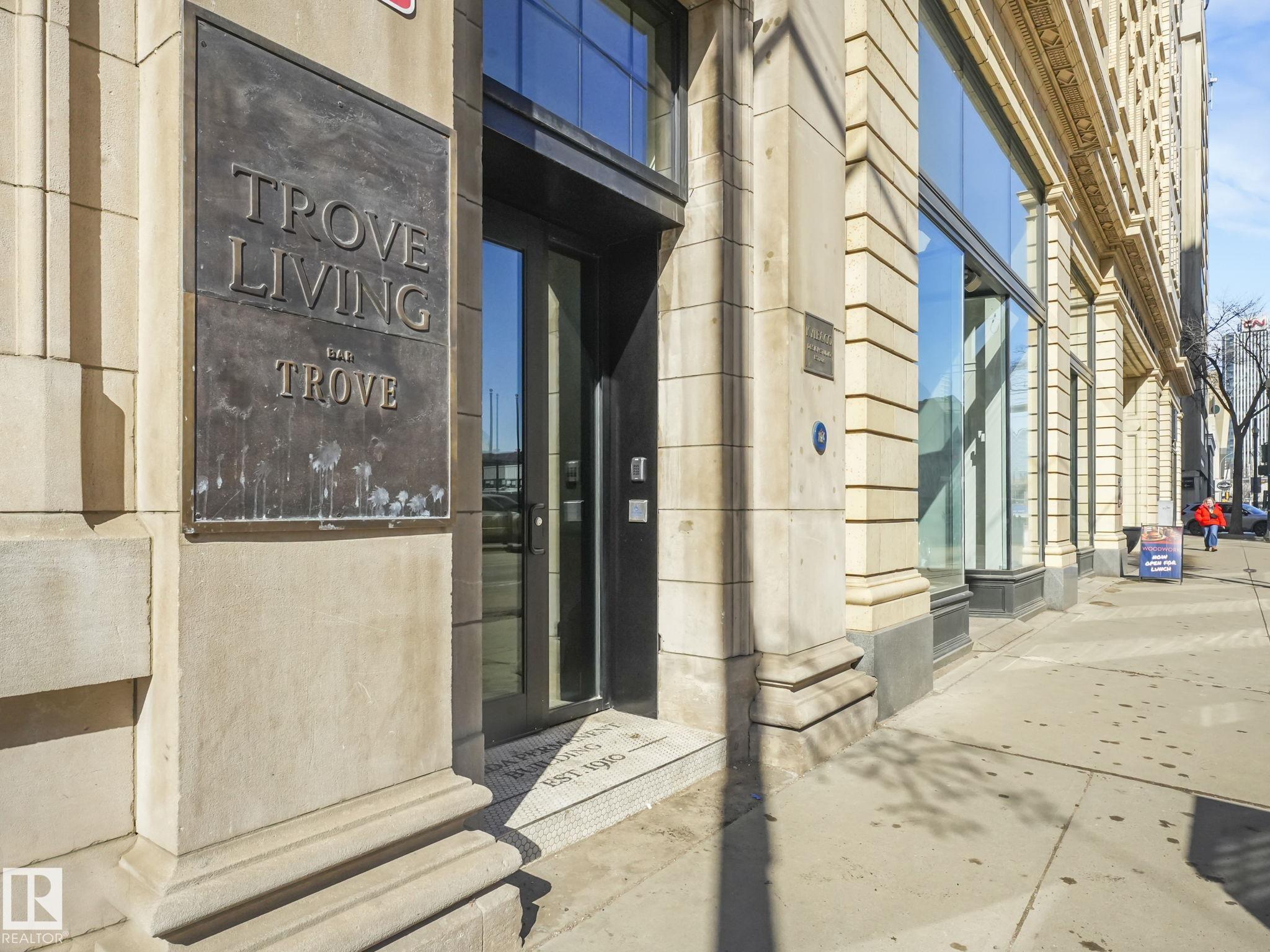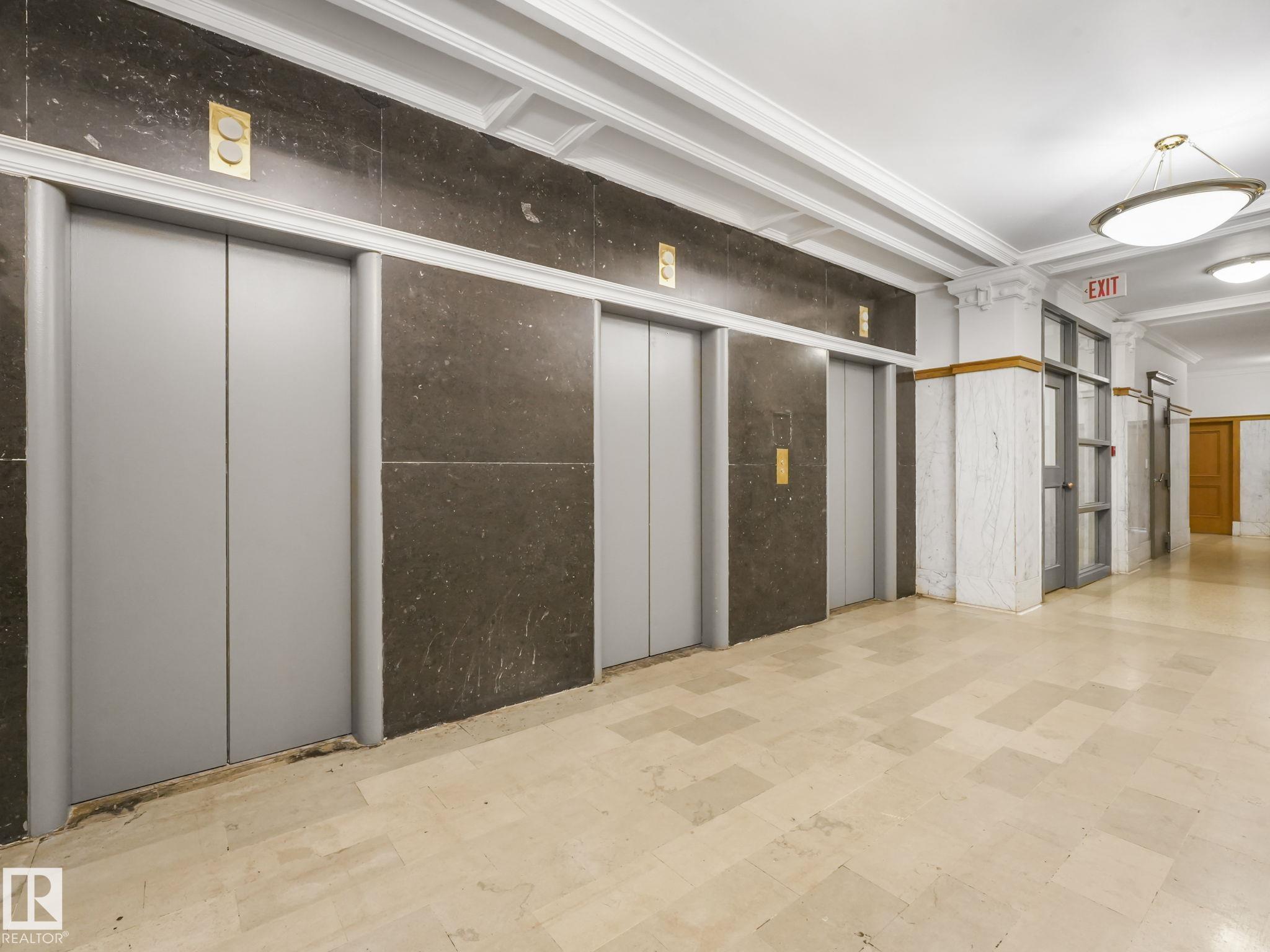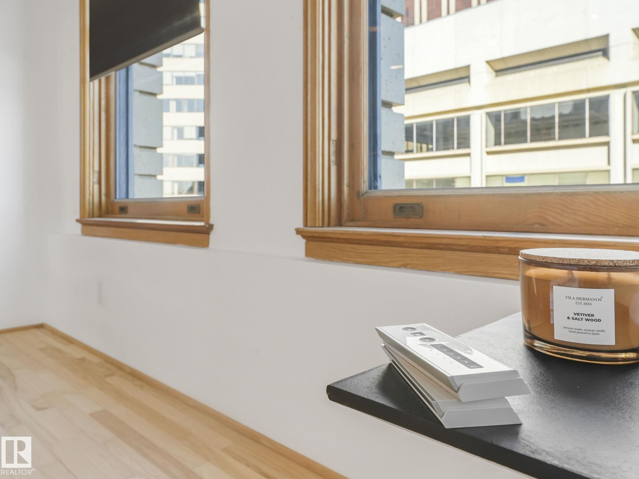Gorgeous EXECUTIVE LOFT in The McLeod Building. 1915 CHARACTER with CONTEMPORARY VIBE in the CORE! This UNIQUE CORNER UNIT on the 8th FLOOR (sub-penthouse) features soaring 9.5 FT Ceilings, Hardwood Flooring & SEVEN 84"High Chicago-style windows that flood the space with natural light... all c/w MOTORIZED BLINDS! The CLEAN LINE KITCHEN features a new electric downdraft stove, an integrated fridge, low-profile microwave/hood fan & a commercial grade built-in Ice-maker. Island has casual seating and is ideal for both serving & entertaining while providing bonus storage space! THE BEAUTIFUL NEW CUSTOM MADE Murphy Bed/Wall system easily tucks up to give you a nice living area. Bathroom features a LARGE LUXURY STEAM SHOWER. Amazing WALK-IN CLOSET WARDROBE AREA WITH NEW IN-SUITE LAUNDRY! GREAT CITY VIEWS and STEPS FROM LRT, Great Restaurants, Art Gallery, Shopping, Rogers Place & River Valley trail system & more! All-Inclusive CONDO FEE INCLUDES ELECTRICAL, HEAT (GAS), WATER, SEWER, Res-Fund, Pro-Mgmt, Ext-Maint.