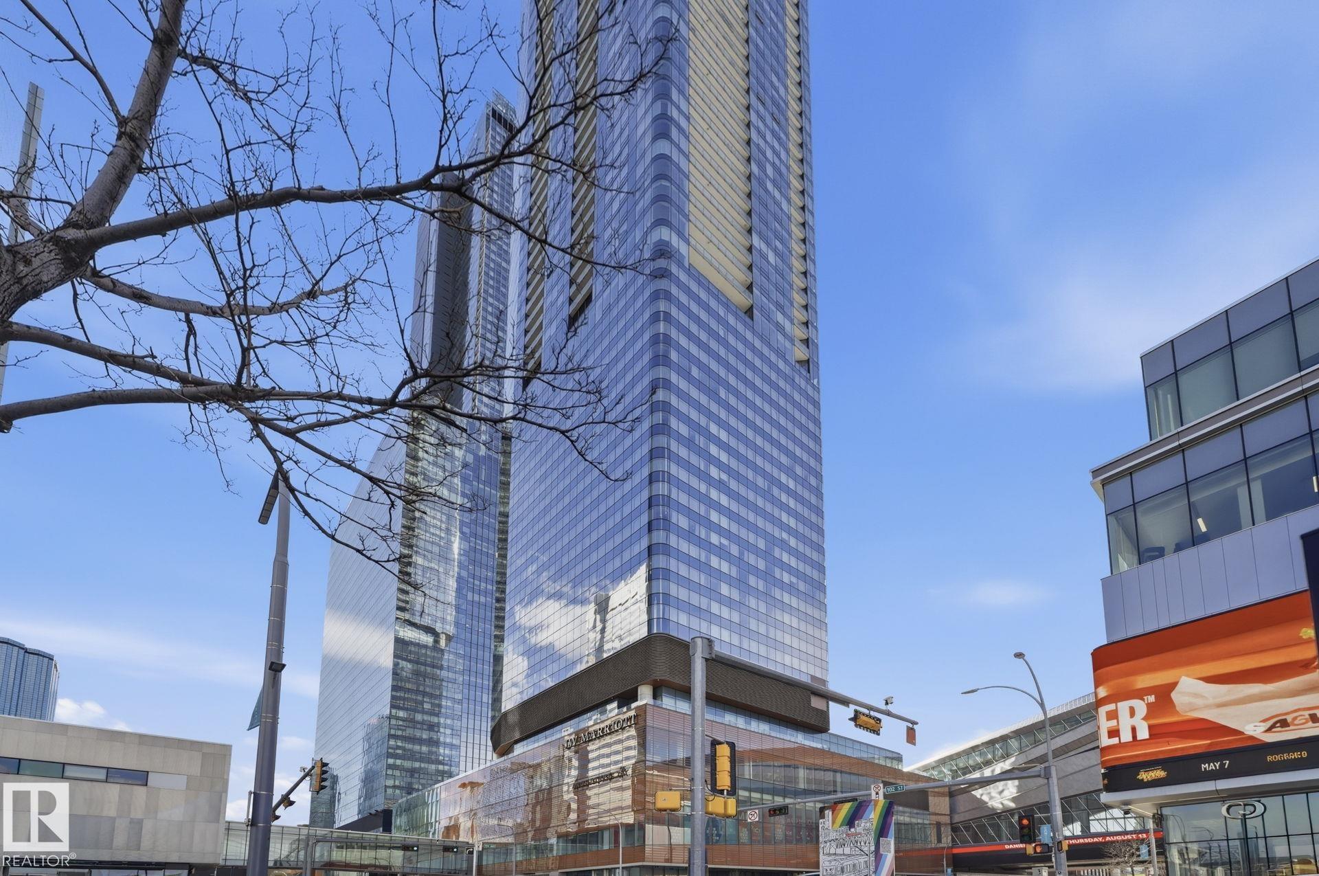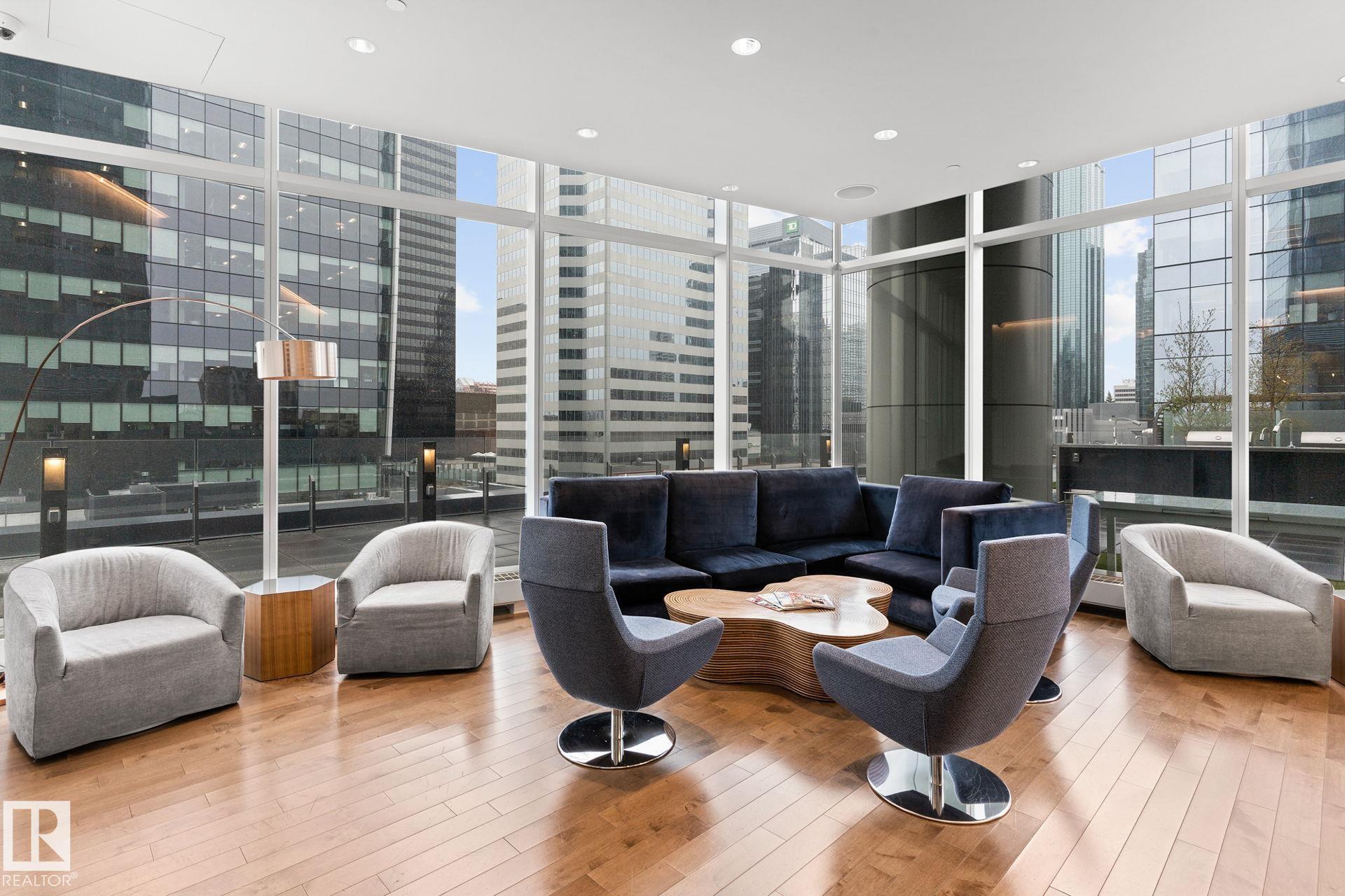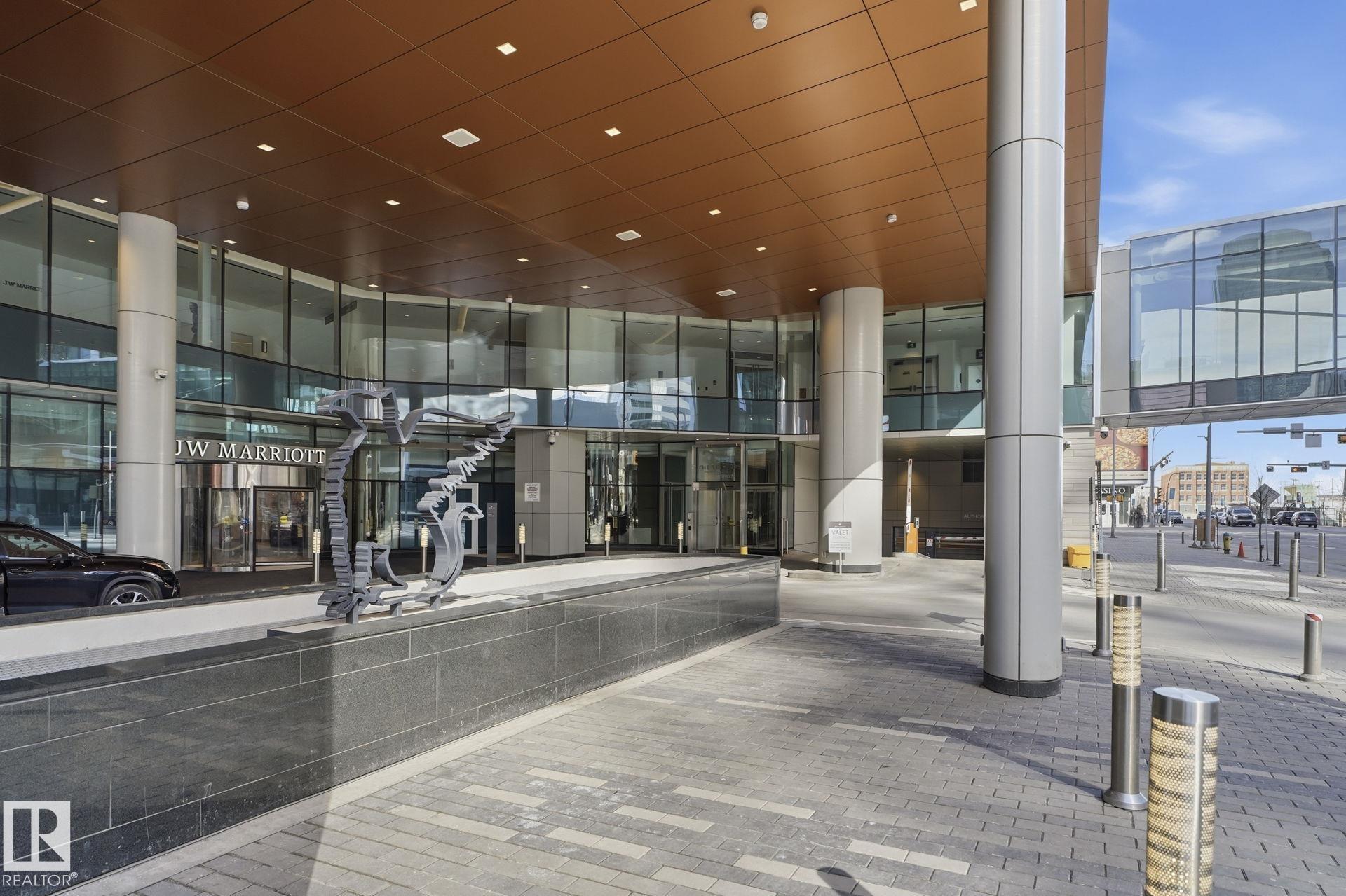 Elevated Living! Welcome to Legends Private Residences above the JW Marriott in Edmonton's Ice District. This well-designed 1-bedroom suite can come fully furnished and offers an open layout with high ceilings, hardwood floors, and floor-to-ceiling windows bringing in plenty of natural light during the day and impressive city lights at night. The kitchen is finished with quartz countertops, modern cabinetry, and quality appliances, making it both stylish and functional. The space includes in-suite laundry, and a private balcony to enjoy the city skyline. The real catch of living here comes with the amenities: 2 Archetype gym memberships, access to a heated indoor pool, fitness centre, concierge service, owners lounge, outdoor BBQ area, private green space. Included is a titled heated underground parking stall and visitor parking is also available. With direct indoor access to Rogers Place, City Centre Mall, pedways, and LRT, this is an unmatched location to enjoy all that the downtown core has to offer!