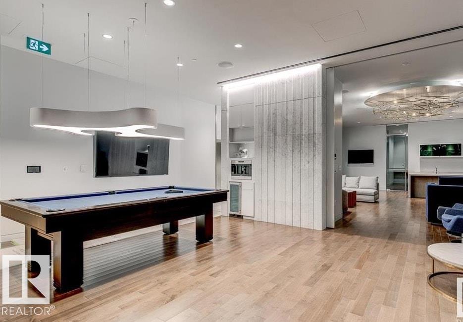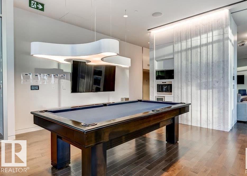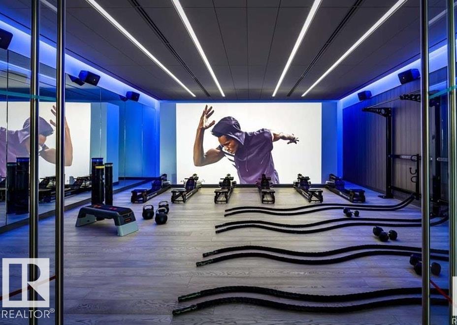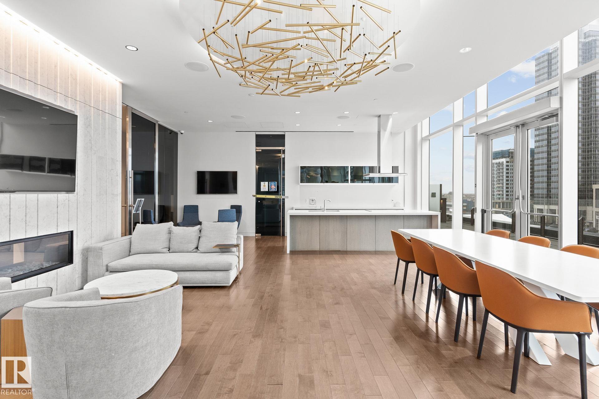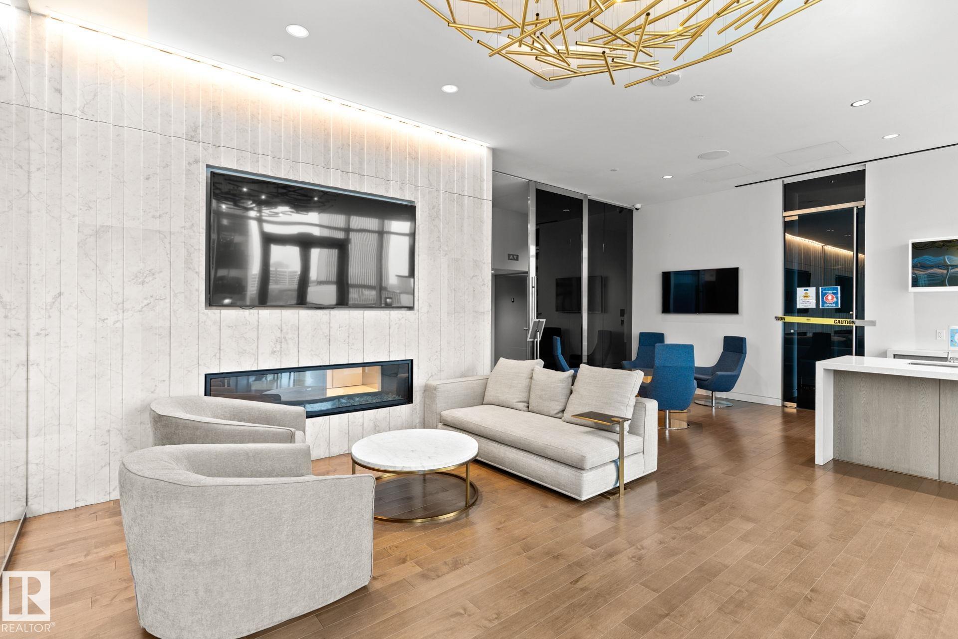 Elevated Living! Welcome to Legends Private Residences above the JW Marriott in Edmonton's Ice District. This well-designed 1-bedroom suite can come fully furnished and offers an open layout with high ceilings, hardwood floors, and floor-to-ceiling windows bringing in plenty of natural light during the day and impressive city lights at night. The kitchen is finished with quartz countertops, modern cabinetry, and quality appliances, making it both stylish and functional. The space includes in-suite laundry, and a private balcony to enjoy the city skyline. The real catch of living here comes with the amenities: 2 Archetype gym memberships, access to a heated indoor pool, fitness centre, concierge service, owners lounge, outdoor BBQ area, private green space. Included is a titled heated underground parking stall and visitor parking is also available. With direct indoor access to Rogers Place, City Centre Mall, pedways, and LRT, this is an unmatched location to enjoy all that the downtown core has to offer!