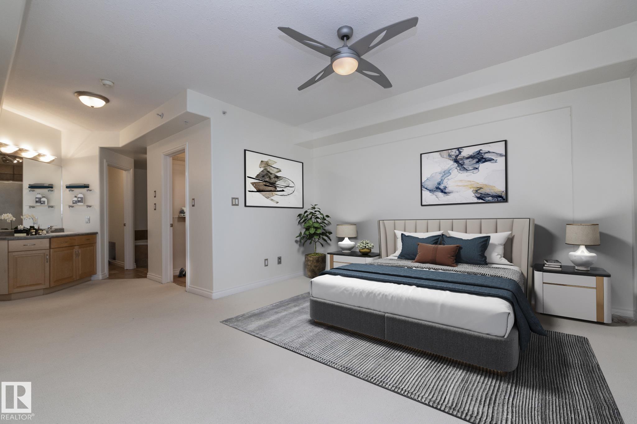 Manhattan Lofts - ideally situated along Saskatchewan Drive and walking distance to a number of key destinations. University Hospital, U of A Campus, Kinsmen Field House Rec Center, numerous shops, restaurants & cafes that line 109 St & Whyte Ave. Also within walking distance to downtown core and extensive river valley trail system. This expansive 2-story open concept loft style condo has an outstanding floor plan. All rooms are generous in size. Floor plan lends well to shared accommodations or hosting overnight guests. Bedrooms and full baths on each floor provide distance and privacy. Each level has a designated living room and added space to set up a home office. Other Features: In-suite laundry/storage, A/C, 17ft ceiling heights, large windows to take advantage of natural light, private patio off main level facing downtown skyline, granite counters, stainless appliances, in-floor heating and 2 underground heated stalls. Great value and flexible usage. Virtually Staged. Access to unit on flrs 1 & 2.