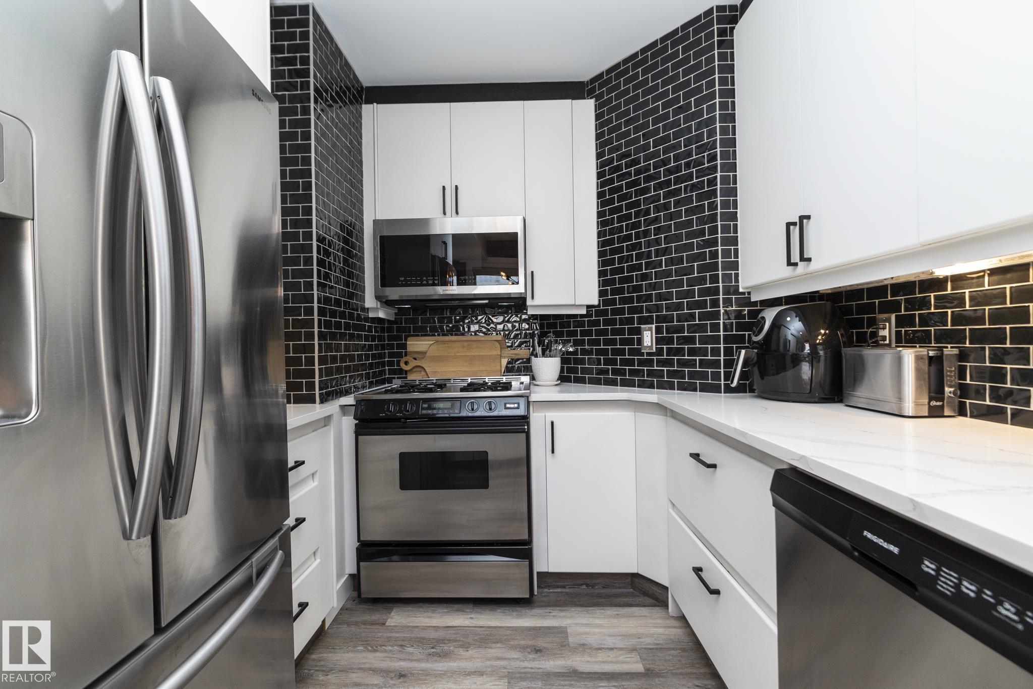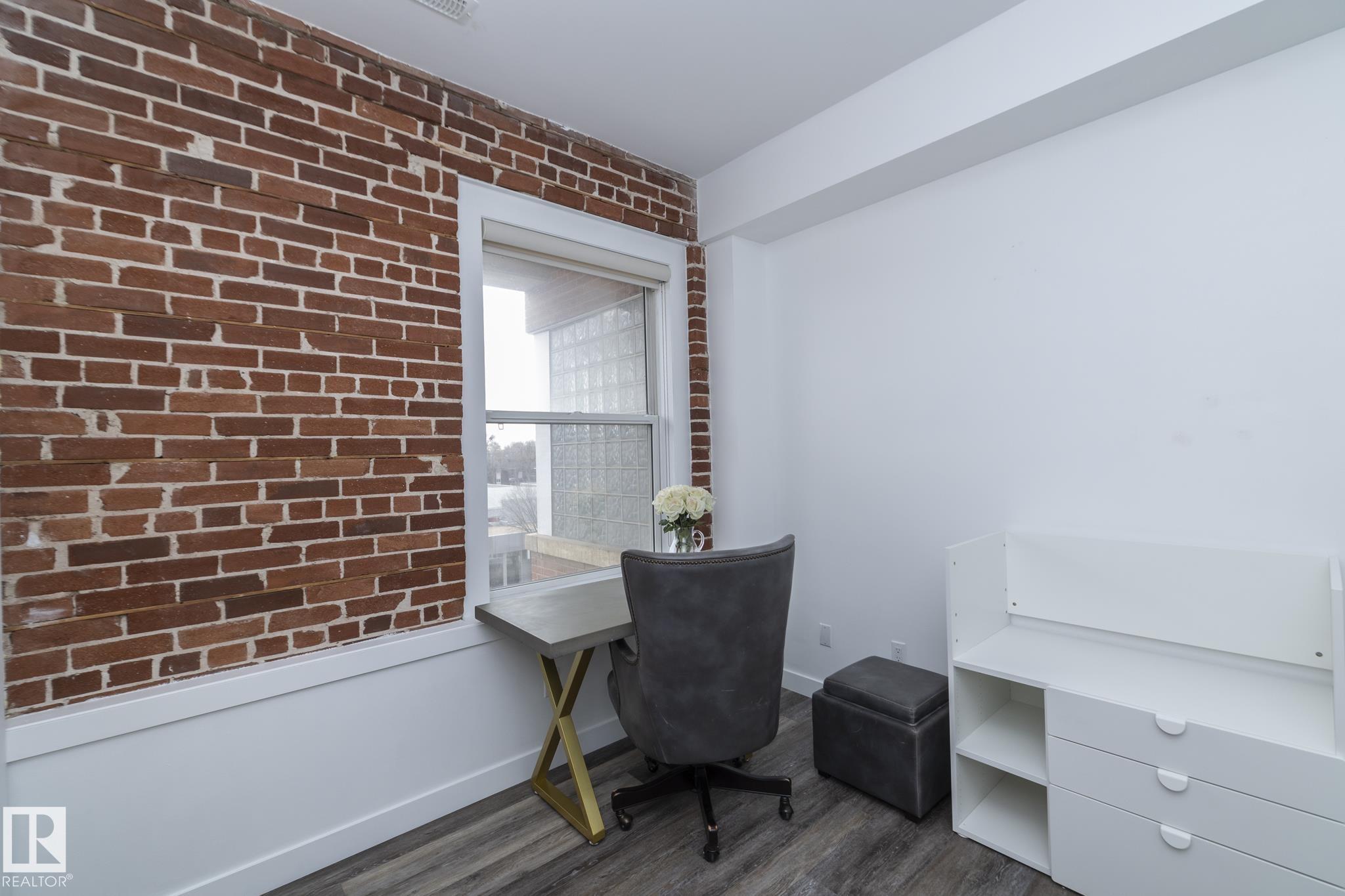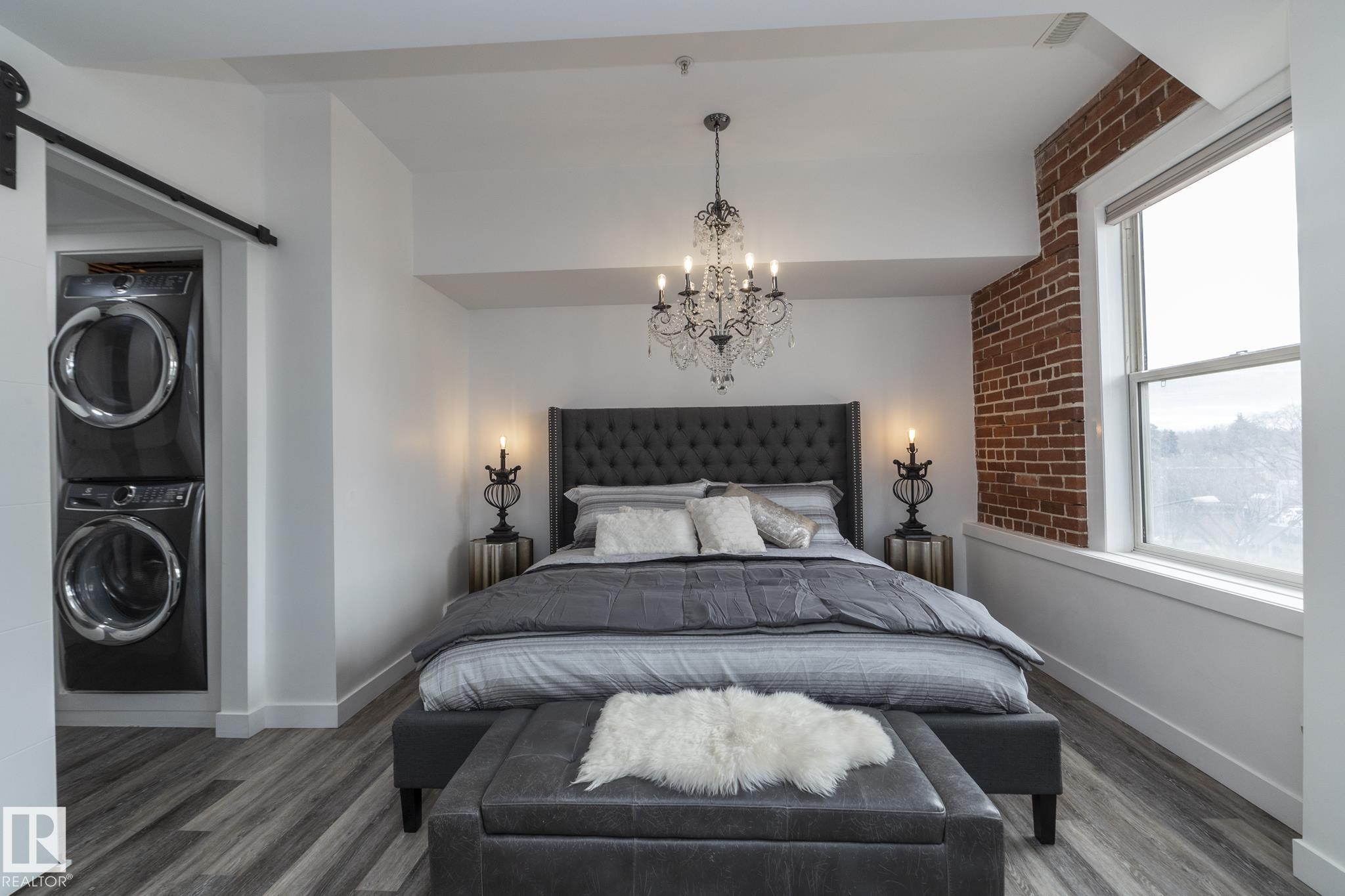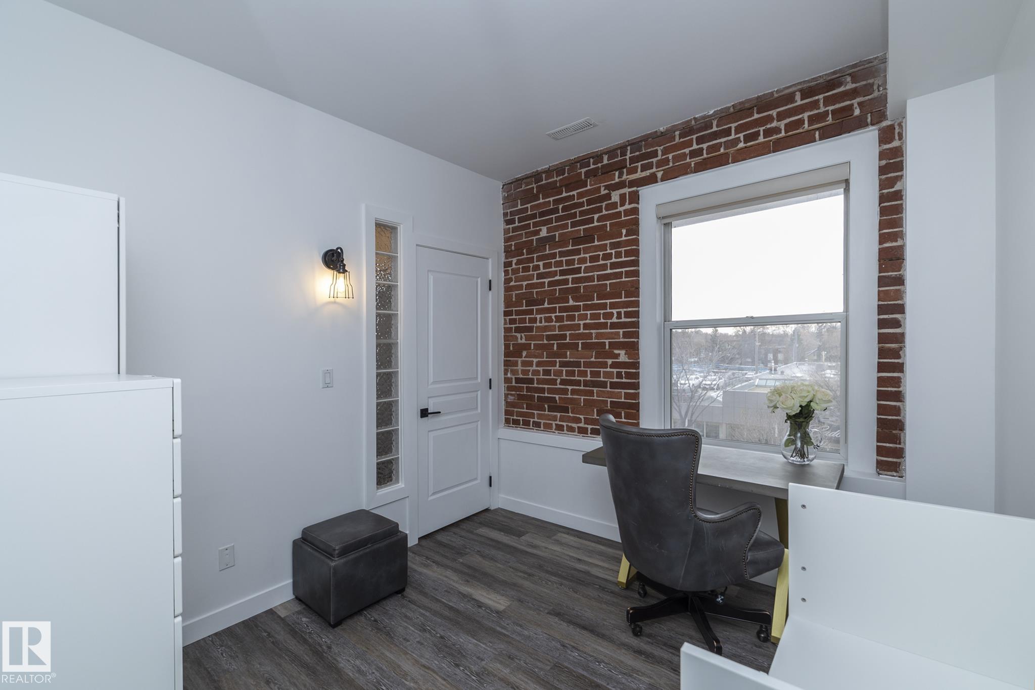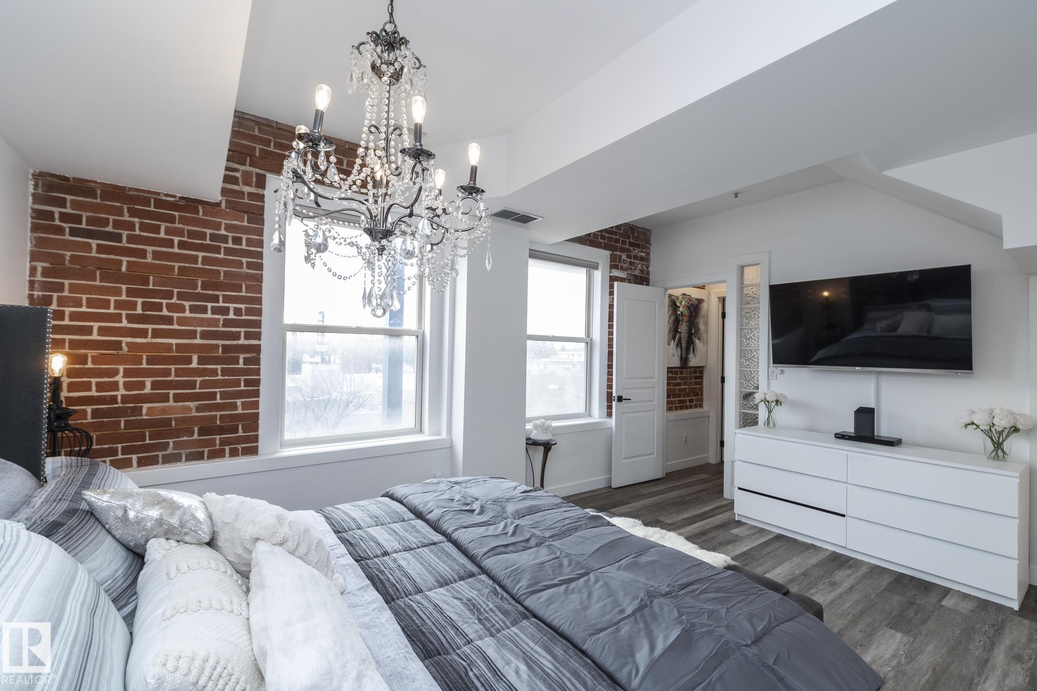 Stunning top-to-bottom renovation in the sought-after Garneau building! This stylish New York Chic inspired 1,100 sq ft 2-storey condo features luxury vinyl plank flooring, quartz counters, exposed brick & sleek chrome & black accents throughout. The bright, south-facing unit offers large windows with sweeping Whyte Ave views and floods of natural light. The modern kitchen boasts stainless steel appliances, gas stove, and a custom built-in dining table with bench seating and storage. Cozy up by the stone-facing gas fireplace in the open-concept living room, complete with a built-in media cabinet and 3 piece bathroom. Downstairs, find 2 bedrooms including a 5-piece ensuite with a jetted soaker tub, in the spacious primary suite with walk-in closet & in-suite laundry. With 2 parking stalls & unbeatable walkability to shops, cafes, and restaurants, this is urban living at its finest--just minutes to U of A, transit, and easy access to anywhere in the city! Property was rented out for almost $50,000 last year!