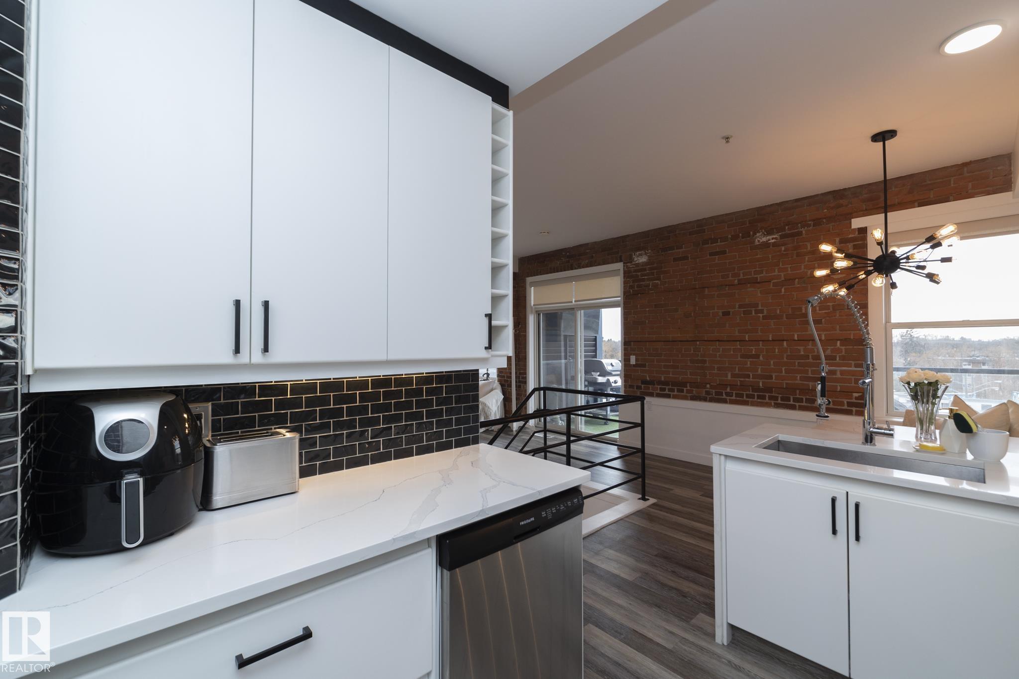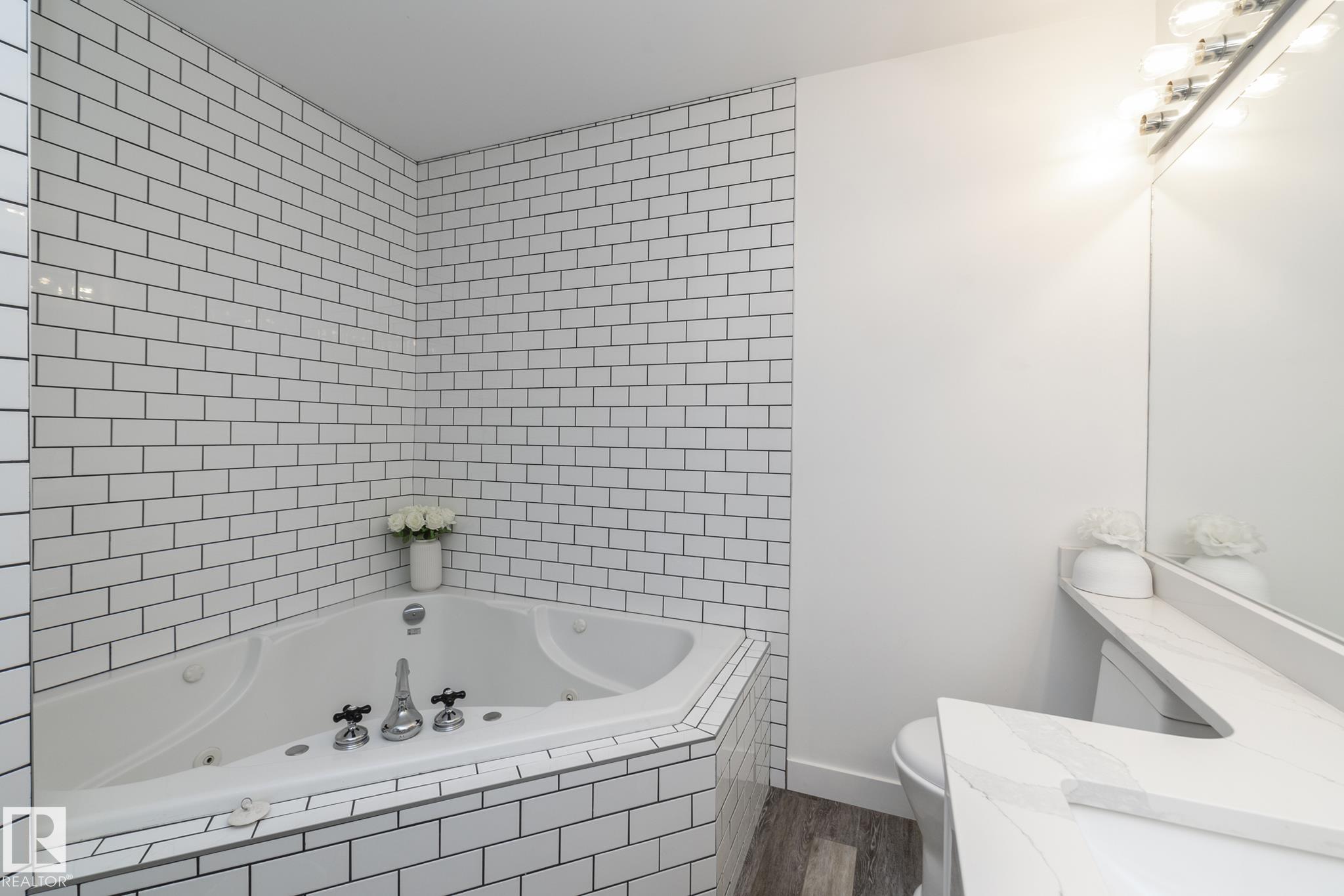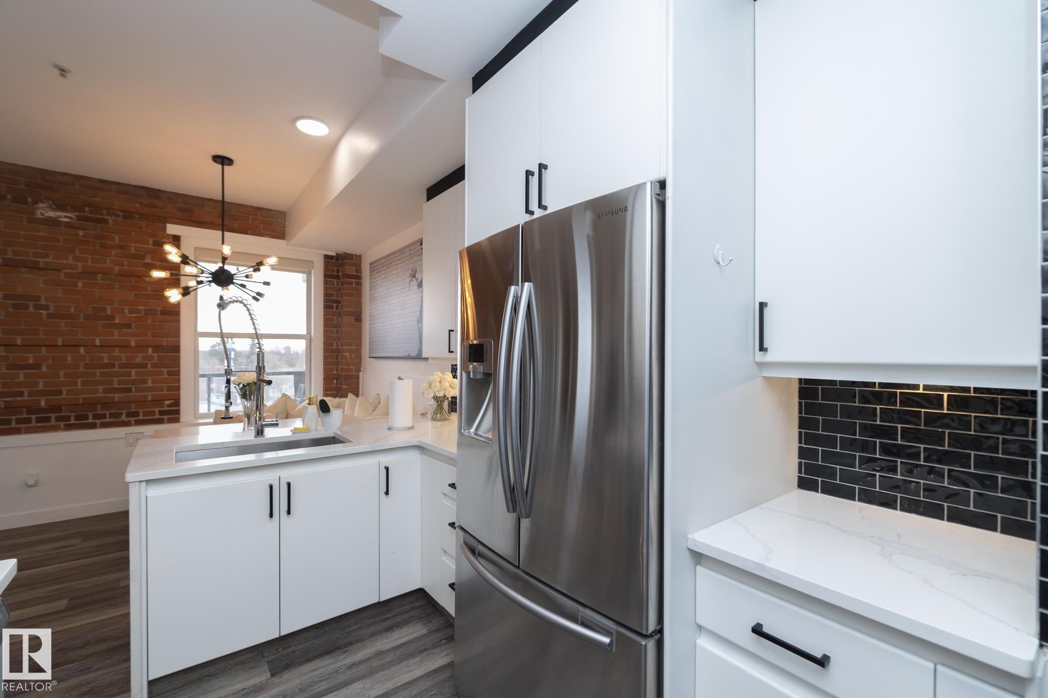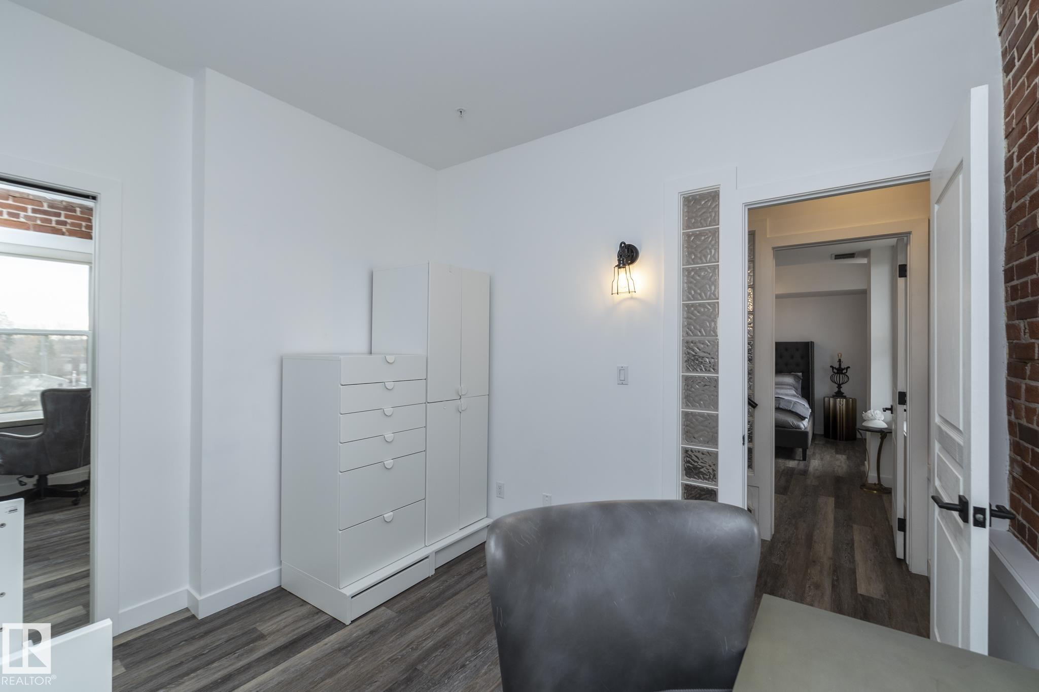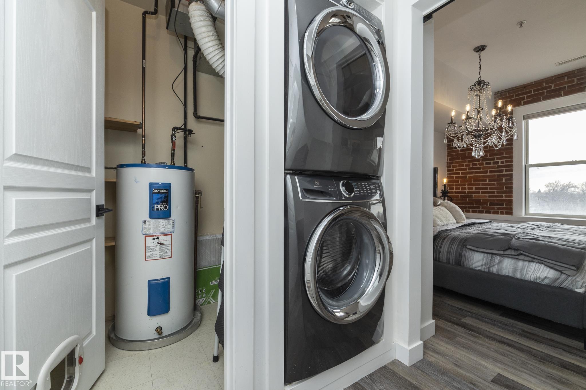 Stunning top-to-bottom renovation in the sought-after Garneau building! This stylish New York Chic inspired 1,100 sq ft 2-storey condo features luxury vinyl plank flooring, quartz counters, exposed brick & sleek chrome & black accents throughout. The bright, south-facing unit offers large windows with sweeping Whyte Ave views and floods of natural light. The modern kitchen boasts stainless steel appliances, gas stove, and a custom built-in dining table with bench seating and storage. Cozy up by the stone-facing gas fireplace in the open-concept living room, complete with a built-in media cabinet and 3 piece bathroom. Downstairs, find 2 bedrooms including a 5-piece ensuite with a jetted soaker tub, in the spacious primary suite with walk-in closet & in-suite laundry. With 2 parking stalls & unbeatable walkability to shops, cafes, and restaurants, this is urban living at its finest--just minutes to U of A, transit, and easy access to anywhere in the city! Property was rented out for almost $50,000 last year!