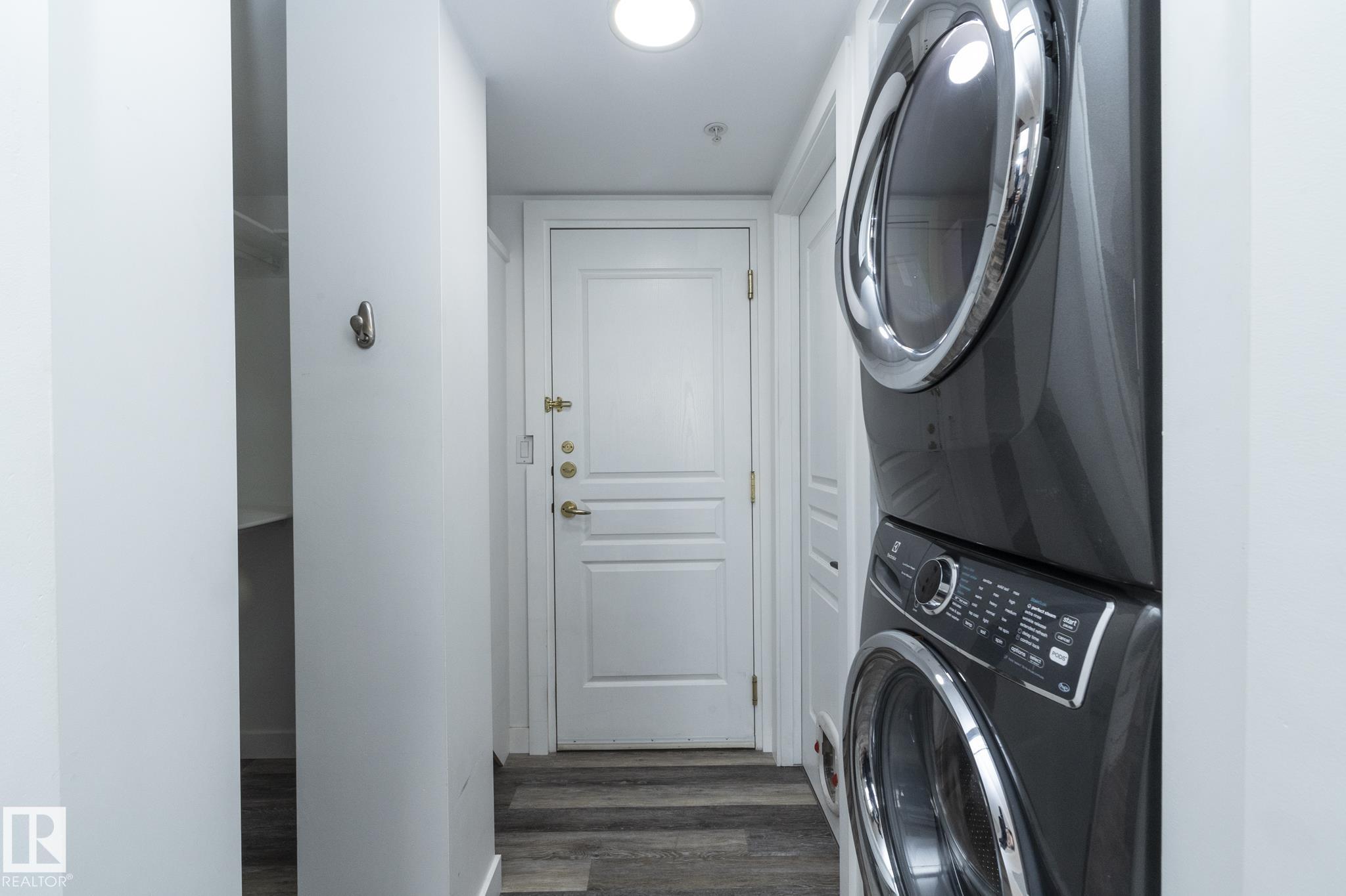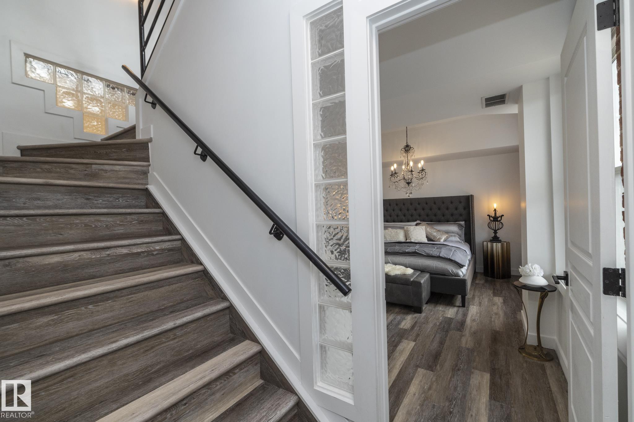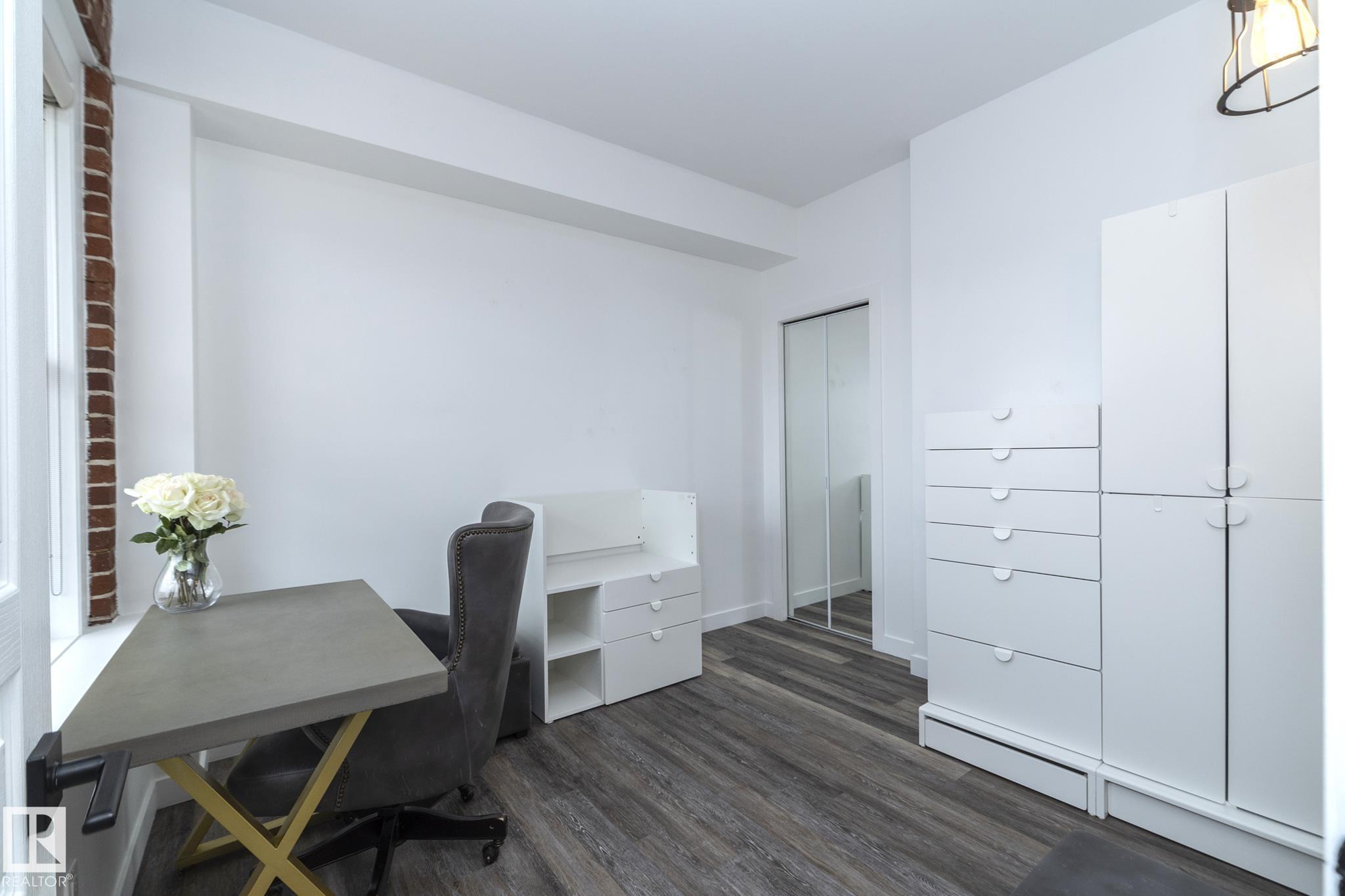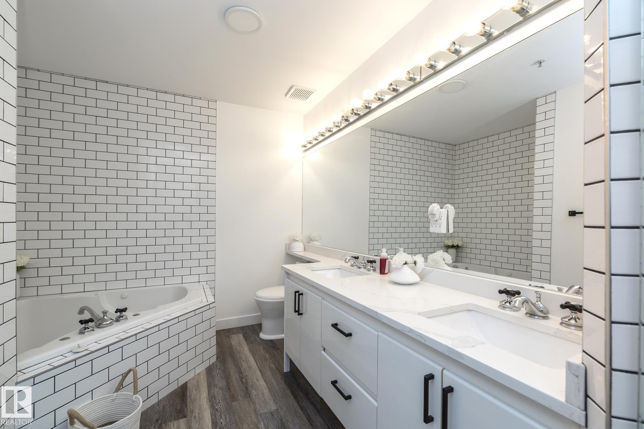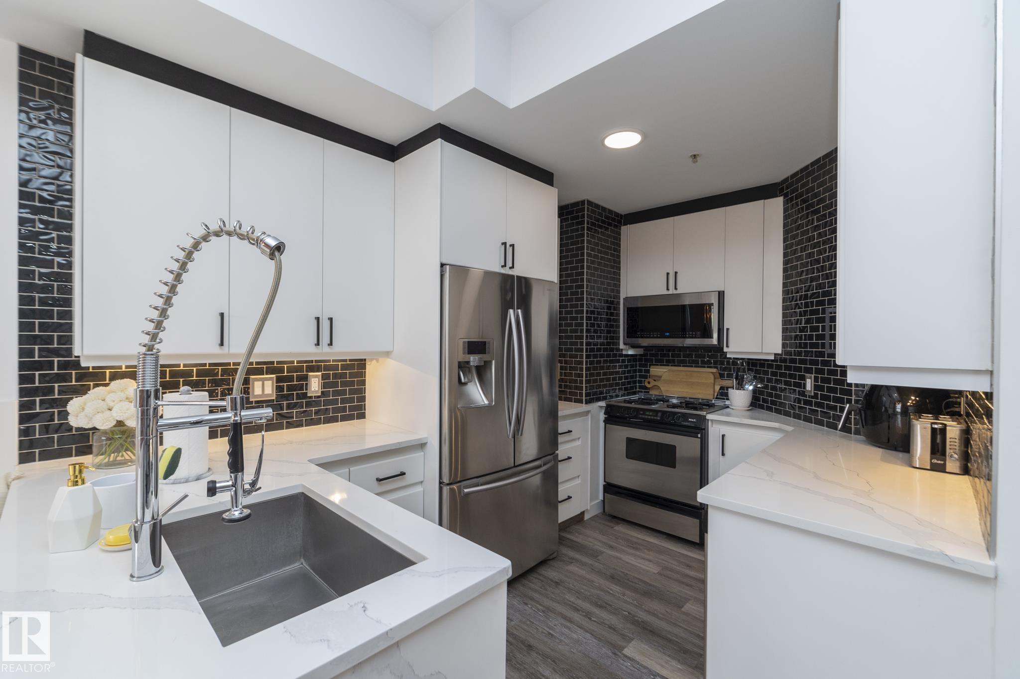 Stunning top-to-bottom renovation in the sought-after Garneau building! This stylish New York Chic inspired 1,100 sq ft 2-storey condo features luxury vinyl plank flooring, quartz counters, exposed brick & sleek chrome & black accents throughout. The bright, south-facing unit offers large windows with sweeping Whyte Ave views and floods of natural light. The modern kitchen boasts stainless steel appliances, gas stove, and a custom built-in dining table with bench seating and storage. Cozy up by the stone-facing gas fireplace in the open-concept living room, complete with a built-in media cabinet and 3 piece bathroom. Downstairs, find 2 bedrooms including a 5-piece ensuite with a jetted soaker tub, in the spacious primary suite with walk-in closet & in-suite laundry. With 2 parking stalls & unbeatable walkability to shops, cafes, and restaurants, this is urban living at its finest--just minutes to U of A, transit, and easy access to anywhere in the city! Property was rented out for almost $50,000 last year!