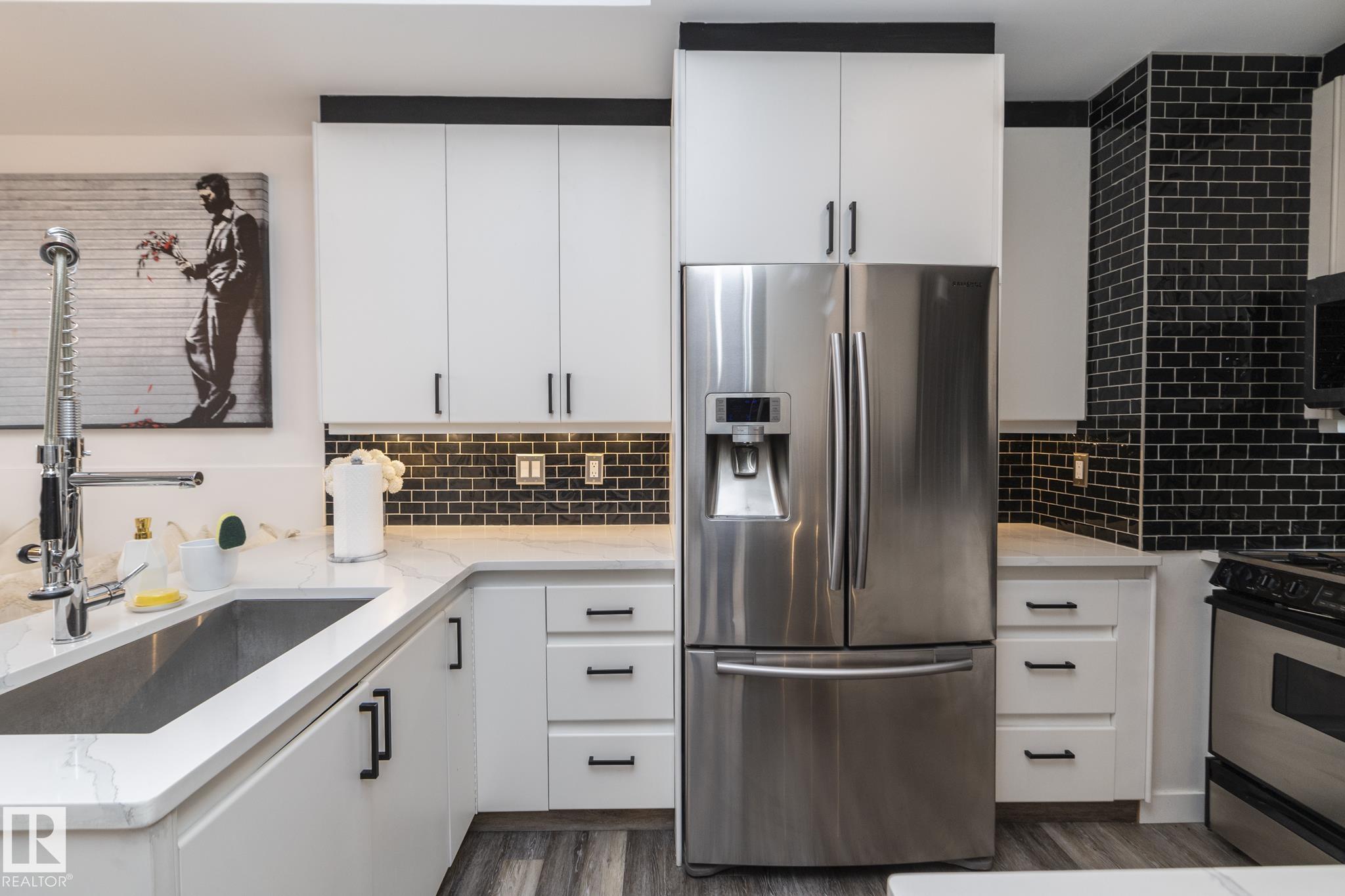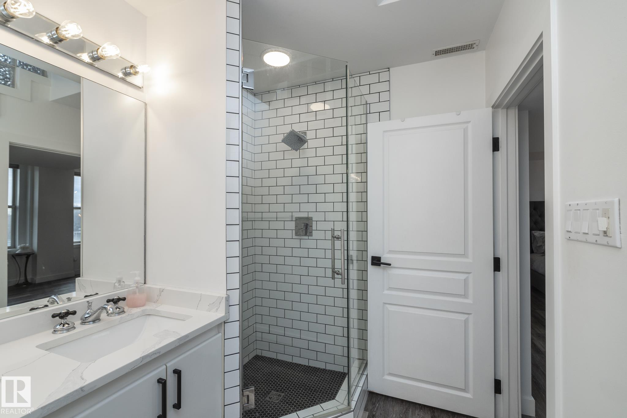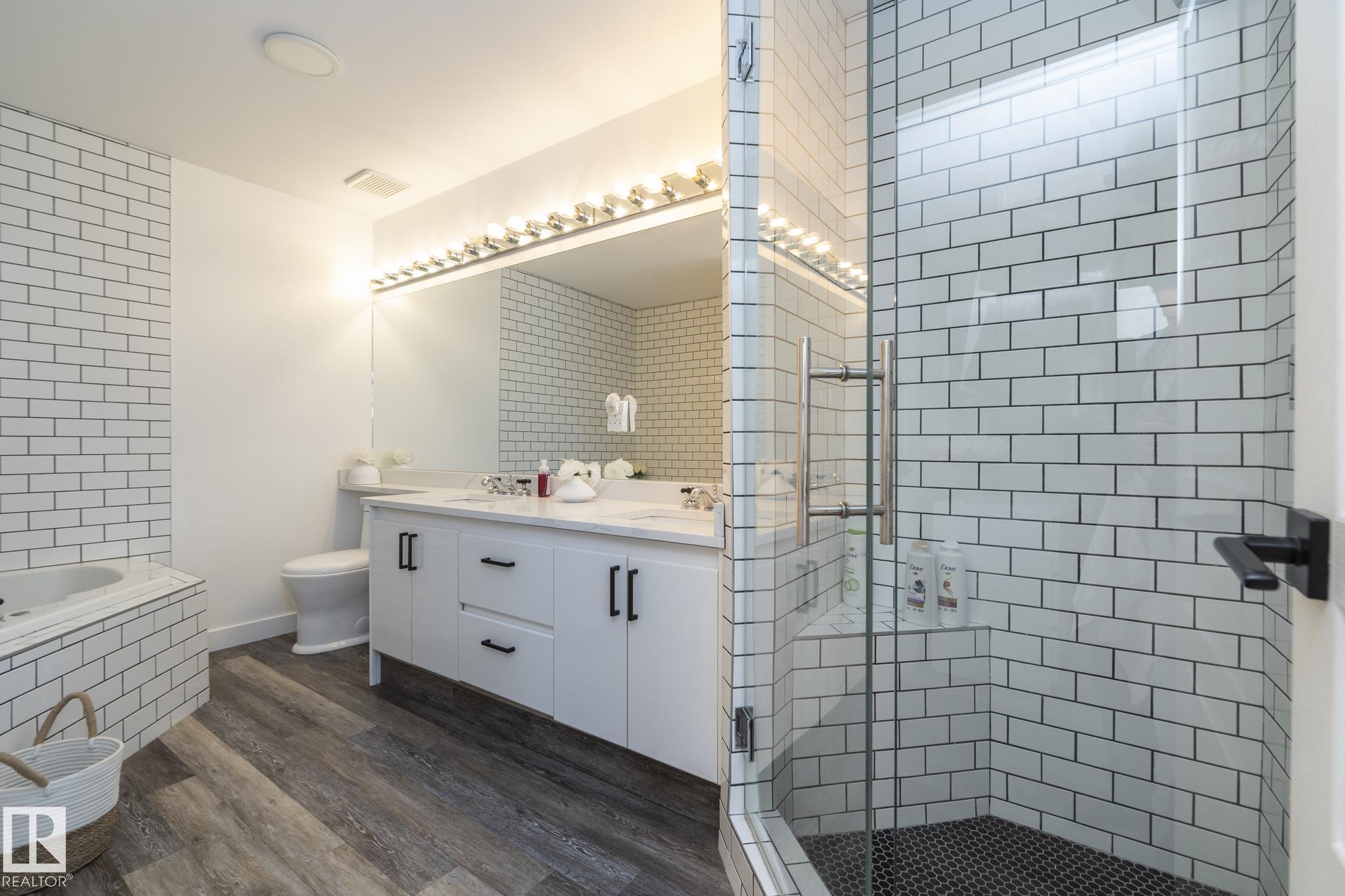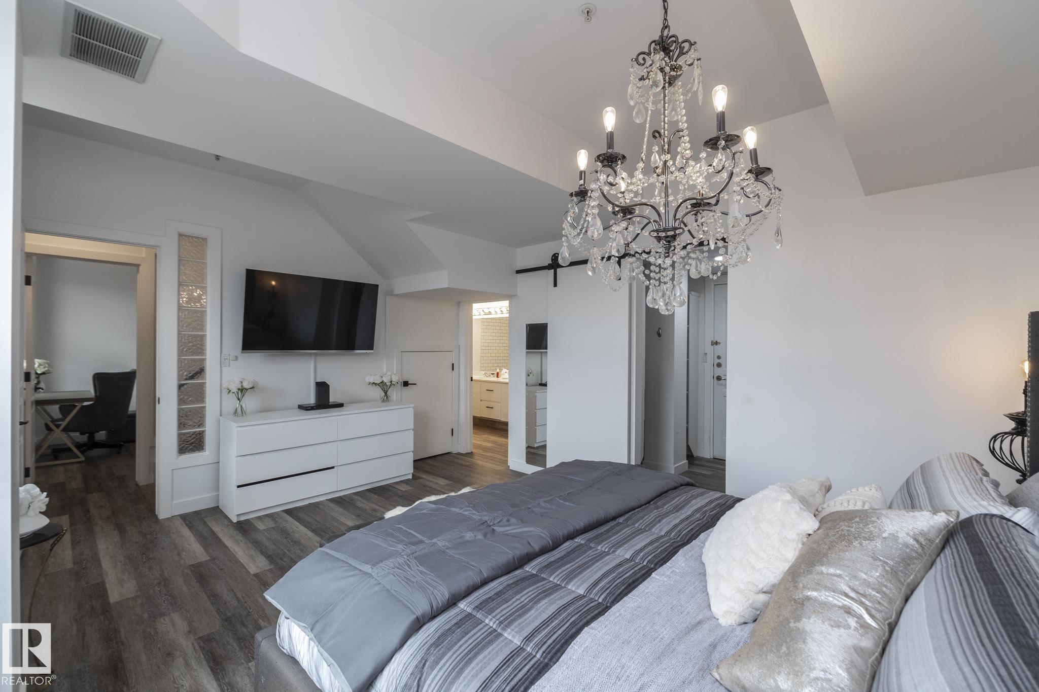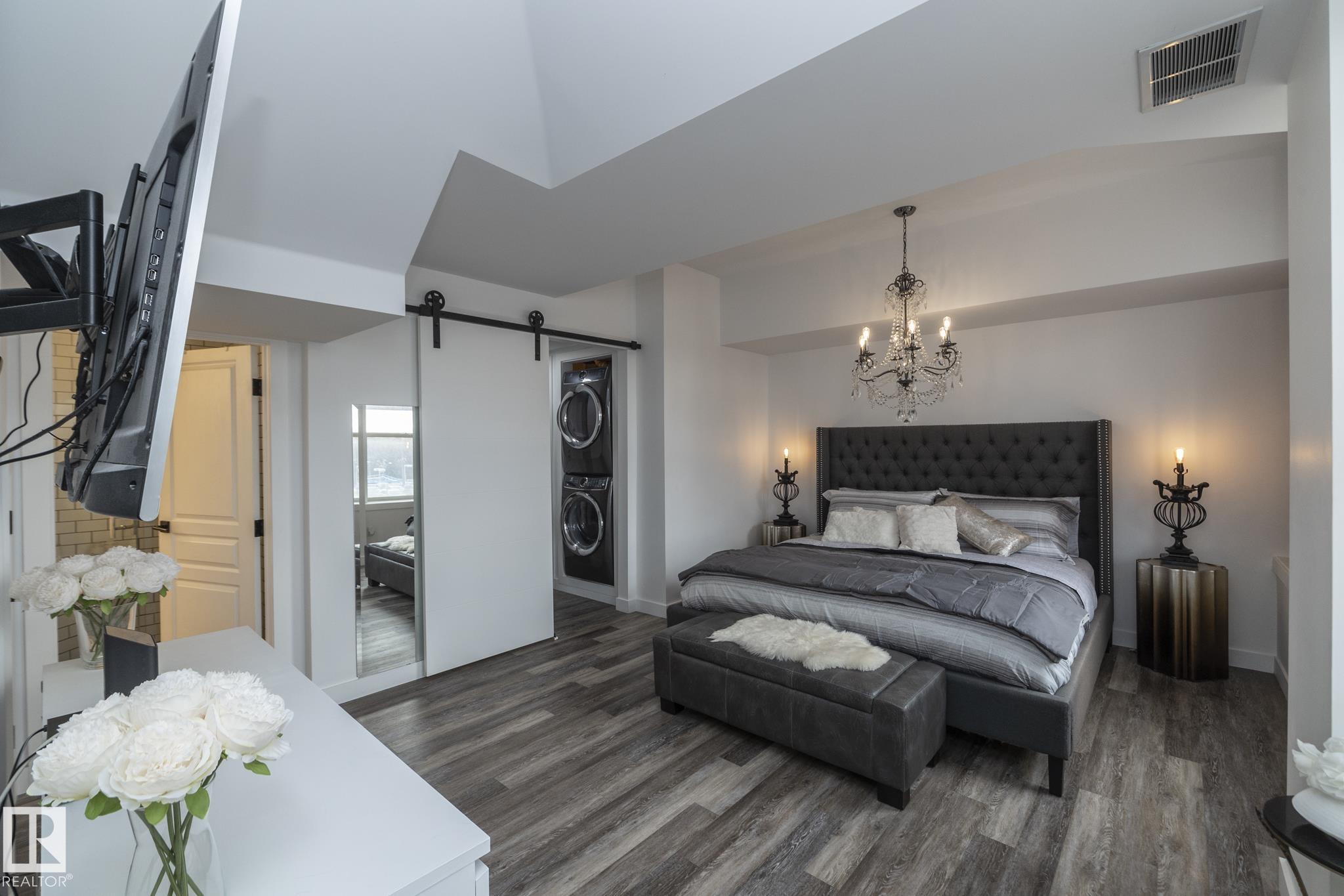 Stunning top-to-bottom renovation in the sought-after Garneau building! This stylish New York Chic inspired 1,100 sq ft 2-storey condo features luxury vinyl plank flooring, quartz counters, exposed brick & sleek chrome & black accents throughout. The bright, south-facing unit offers large windows with sweeping Whyte Ave views and floods of natural light. The modern kitchen boasts stainless steel appliances, gas stove, and a custom built-in dining table with bench seating and storage. Cozy up by the stone-facing gas fireplace in the open-concept living room, complete with a built-in media cabinet and 3 piece bathroom. Downstairs, find 2 bedrooms including a 5-piece ensuite with a jetted soaker tub, in the spacious primary suite with walk-in closet & in-suite laundry. With 2 parking stalls & unbeatable walkability to shops, cafes, and restaurants, this is urban living at its finest--just minutes to U of A, transit, and easy access to anywhere in the city! Property was rented out for almost $50,000 last year!