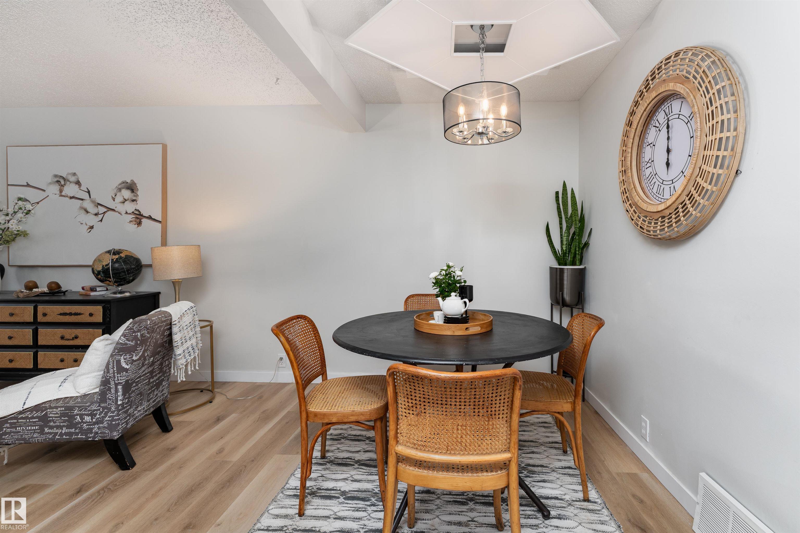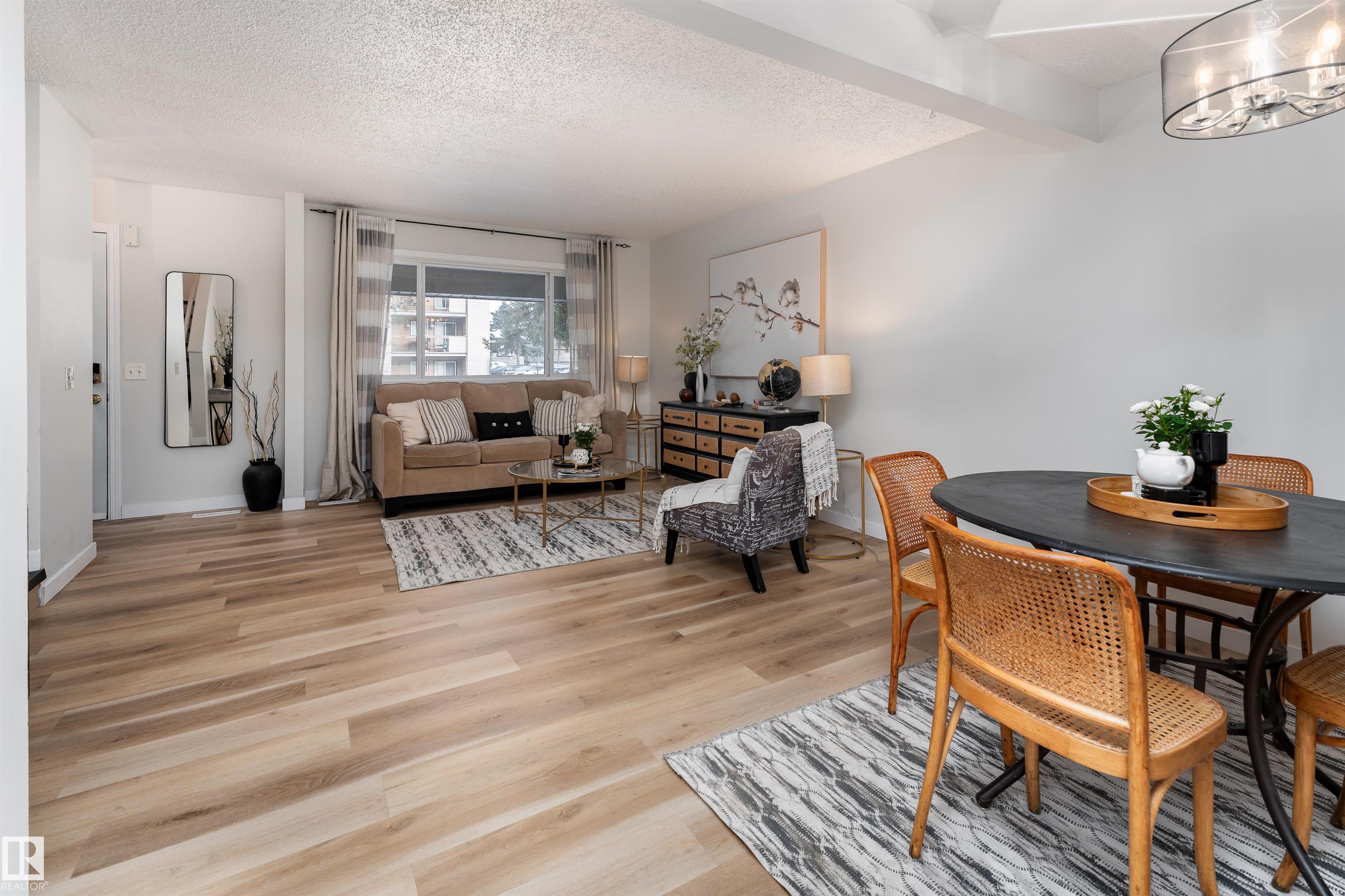 Get Inspired in Hairsine! This renovated and bright townhouse in Knights Bridge is an excellent opportunity for a first time buyer or investor. The main floor features a spacious open concept living and dining area with access to your fenced yard, perfect for enjoying the outdoors. The kitchen has been renovated with new countertops, modern backsplash, and a full appliance package including a dishwasher. A half bath completes the main floor. Upstairs you will find a large master bedroom with a generous closet, plus 2 additional bedrooms and a renovated four piece bathroom! The finished basement adds great living space with a cozy rec room, a den for work or hobbies, and a three piece bathroom. Recent upgrades include brand new vinyl plank flooring, carpet, paint, lights, kitchen appliances, and countertops. Two parking stalls are located right at your door. This well managed complex is close to schools, parks, shops, and LRT. Quick possession available, move in ready.