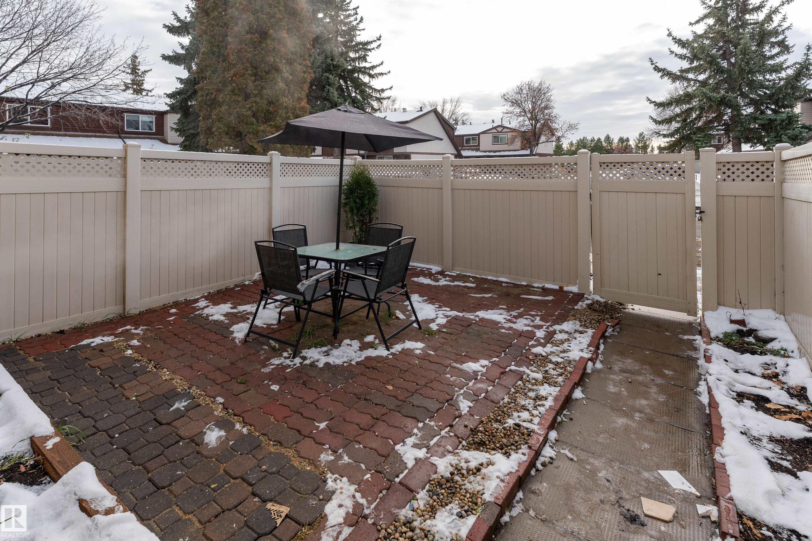 Get Inspired in Hairsine! This renovated and bright townhouse in Knights Bridge is an excellent opportunity for a first time buyer or investor. The main floor features a spacious open concept living and dining area with access to your fenced yard, perfect for enjoying the outdoors. The kitchen has been renovated with new countertops, modern backsplash, and a full appliance package including a dishwasher. A half bath completes the main floor. Upstairs you will find a large master bedroom with a generous closet, plus 2 additional bedrooms and a renovated four piece bathroom! The finished basement adds great living space with a cozy rec room, a den for work or hobbies, and a three piece bathroom. Recent upgrades include brand new vinyl plank flooring, carpet, paint, lights, kitchen appliances, and countertops. Two parking stalls are located right at your door. This well managed complex is close to schools, parks, shops, and LRT. Quick possession available, move in ready.