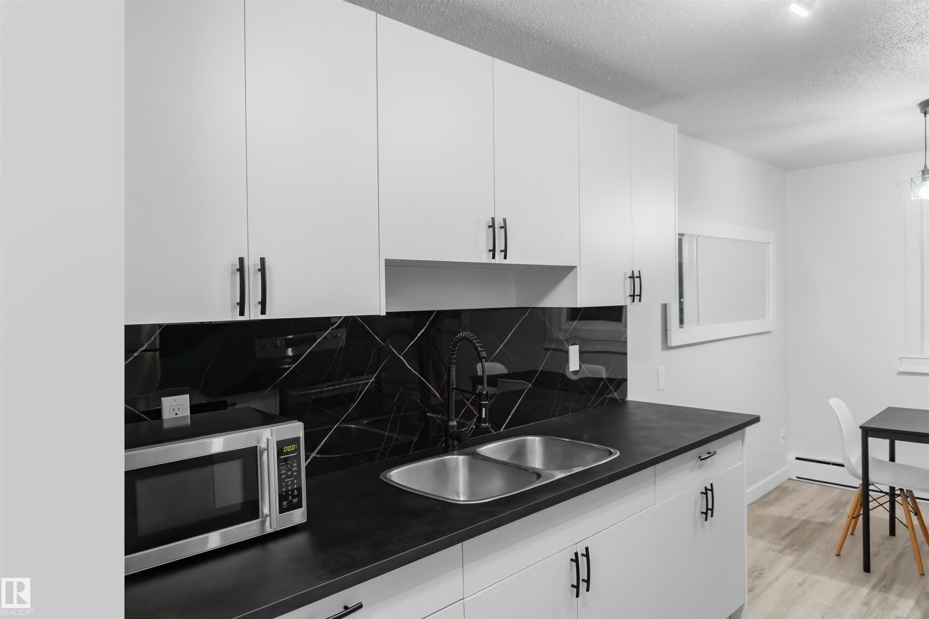 FULLY FURNISHED AND RENOVATED CASH FLOW POSITIVE PROPERTY !!!! Why rent when you can OWN FOR LESS. This newly renovated 2 BEDROOM apartment is 5 minutes drive to Whyte Ave, Concordia University, King's University, 10-15 minutes drive to U of Alberta and Downtown Edmonton. Recent Upgrades includes: New Flooring throughout the house, new kitchen, New Paint, New baseboards, new electrical fixtures and outlets, new vanity in Toilet and new Toilet seat. To top that seller is also offering following in the sale: Dining Table and 4 chairs, bed and mattress (2), couch (2), TV, TV stand, Coffee table, Lamps (4), microwave, large work table, shower curtain and a painting. With 2 large bedrooms you won't run out of space in this almost 900 square feet apartment. Potential rent for the area is $1650 + electricity. Don't miss this one out.