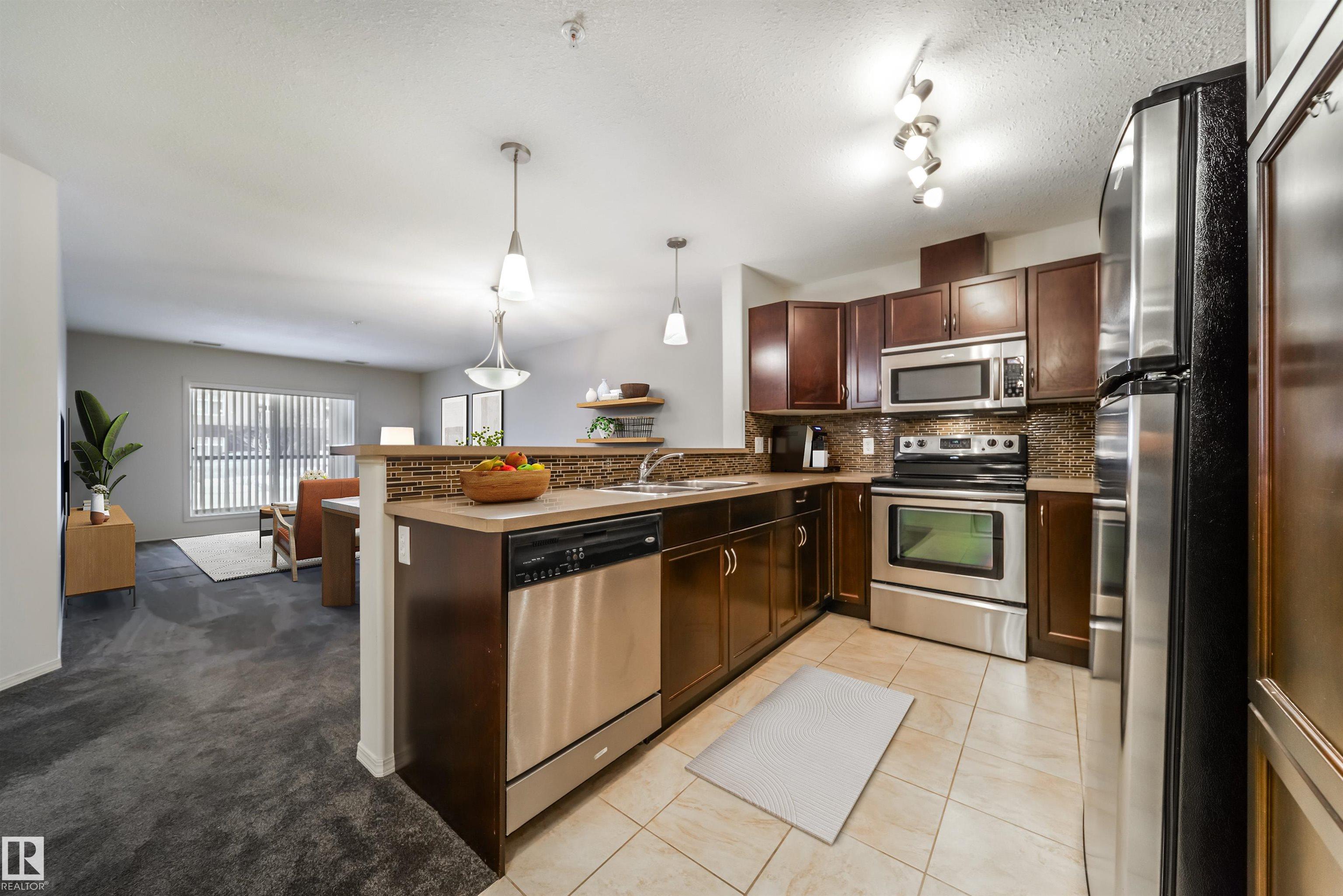 Welcome to Urban Village, where resort-style amenities & an unbeatable location come together in one of Edmonton's most connected condo communities. This well-designed 2-bed, 2-bath home offers a bright, open-concept layout w/ central A/C & stainless steel appliances, making it ideal for professionals, downsizers, or investors. The primary bedroom features 2 large closets & private ensuite, while a large laundry room provides excellent additional storage. Enjoy a private patio, heated underground parking stall, and a huge storage cage. Residents enjoy access to an impressive recreation building with an indoor pool, hot tub, sauna, steam room, expansive fitness centre, party & social spaces, billiards, and comfortable lounge areas--often considered better than most rec centres. Located in King Edward Park with quick access to downtown, the U of A, Anthony Henday, Sherwood Park, transit, shopping, caf‚s, and parks, this home delivers low-maintenance living without compromise. Some photos are virtually staged