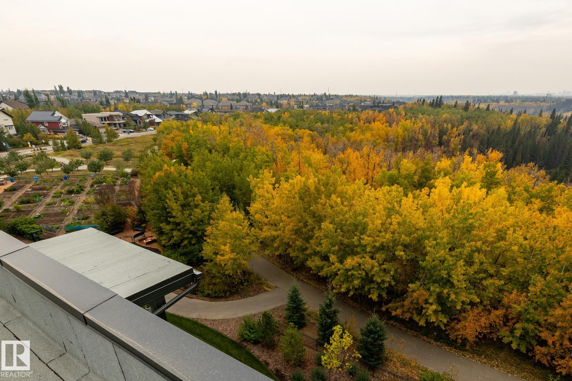 Experience elevated urban living in this exceptional unit at the Edge 2 at Larch Park, a premier apartment style condo in Magrath Heights. This Unit offers comfortable elegant interior that features a stunning entertainer's kitchen, open concept layout, electric fireplace, new appliances, spacious closets , A/C, upgraded window coverings with power control, washer/ Dryer and more. This two bedroom, two bathroom unit includes two title parking stalls one underground and one surface and extra storage. Ready to move in for anyone looking for an elegant, quiet surrounding with luxurious amenities: Owner's Lounge, Chef's Kitchen, Fitness & Yoga Studio, Garden Fire Pit, Games Room, Art Studio, Library, Board Room, Theater, Guest Suite, Dog Park & Dog Wash, Amazing Rooftop Deck facing Northeast where you can relax with beautiful ravine views. Owners access to nearby trails. Located in a great community close to all amenities and Anthony Henday and Whitemud Freeway. Must see!