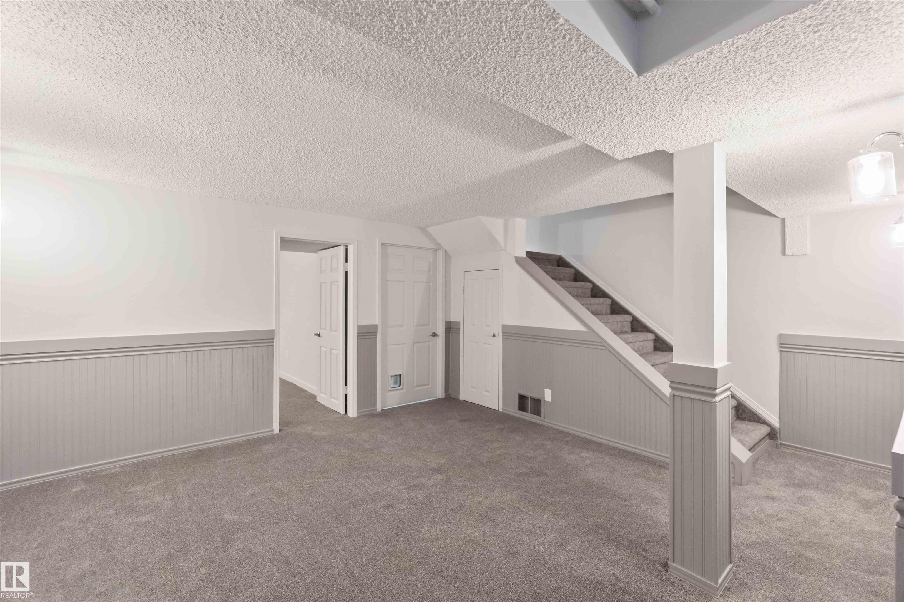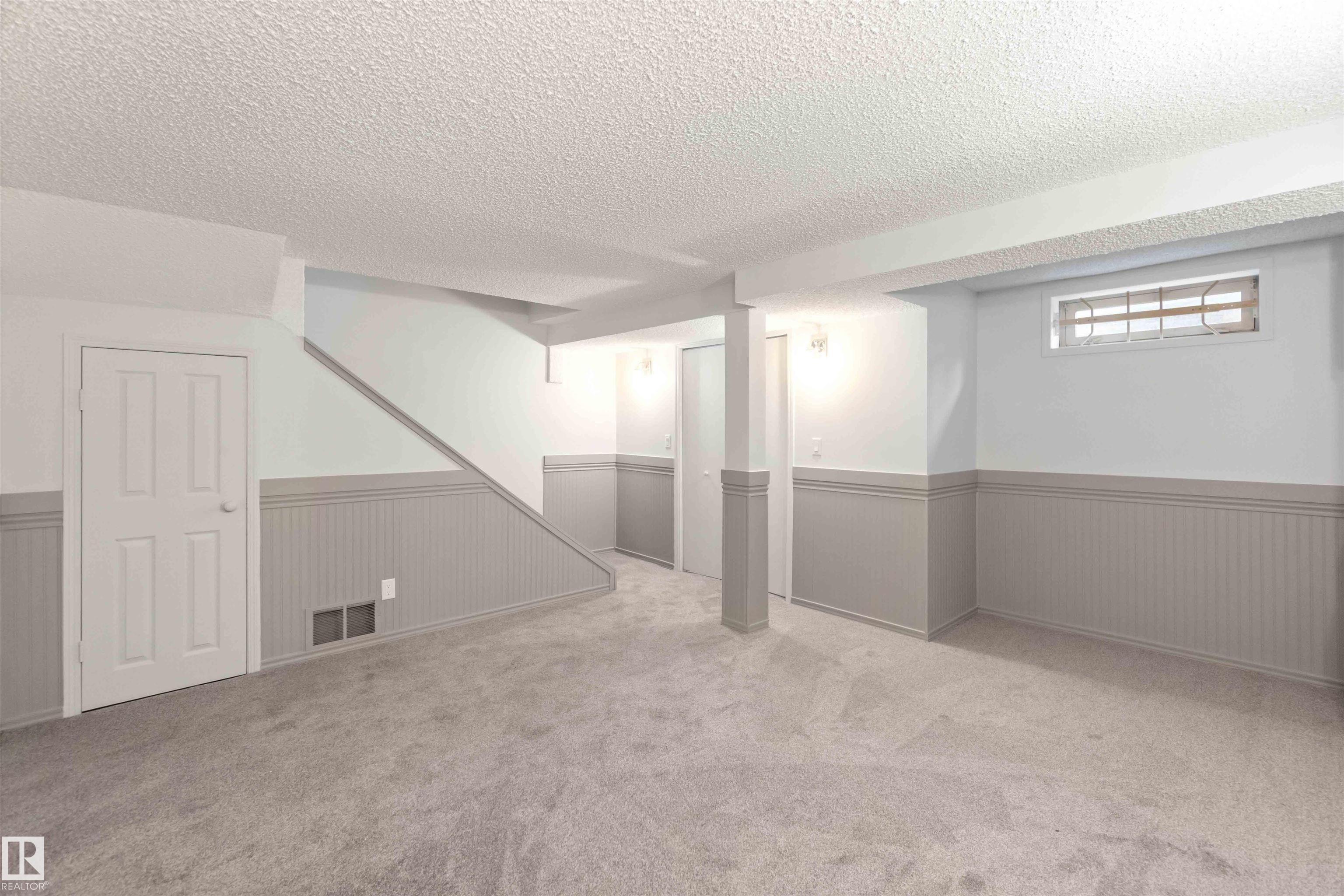 Welcome to Pioneer Estates! This stunning, fully renovated 3-bedroom townhome offers an exceptional, opportunity in a prime location near schools, bus stops, walking trails, shopping, the River Valley, and Hermitage Park.The main floor features all-new, durable vinyl flooring, leading you into a brand new kitchen complete with elegant quartz countertops. Both the main floor 2-piece and the upstairs 4-piece bathroom have been completely renovated with modern fixtures, finishes, and beautiful, elegant tiling in the upstairs bathroom. Enjoy year-round comfort with the addition of central AC. Comfort continues upstairs with brand new carpet in all three spacious bedrooms, ensuring warmth and quiet. The fully finished basement offers a versatile family room, a convenient laundry area, plenty of storage, plus a separate flex room perfect for a home office. Located in a well-managed, pet-friendly complex, one assigned parking stall is included, with the option to rent a second. Some picture are Virtually stage