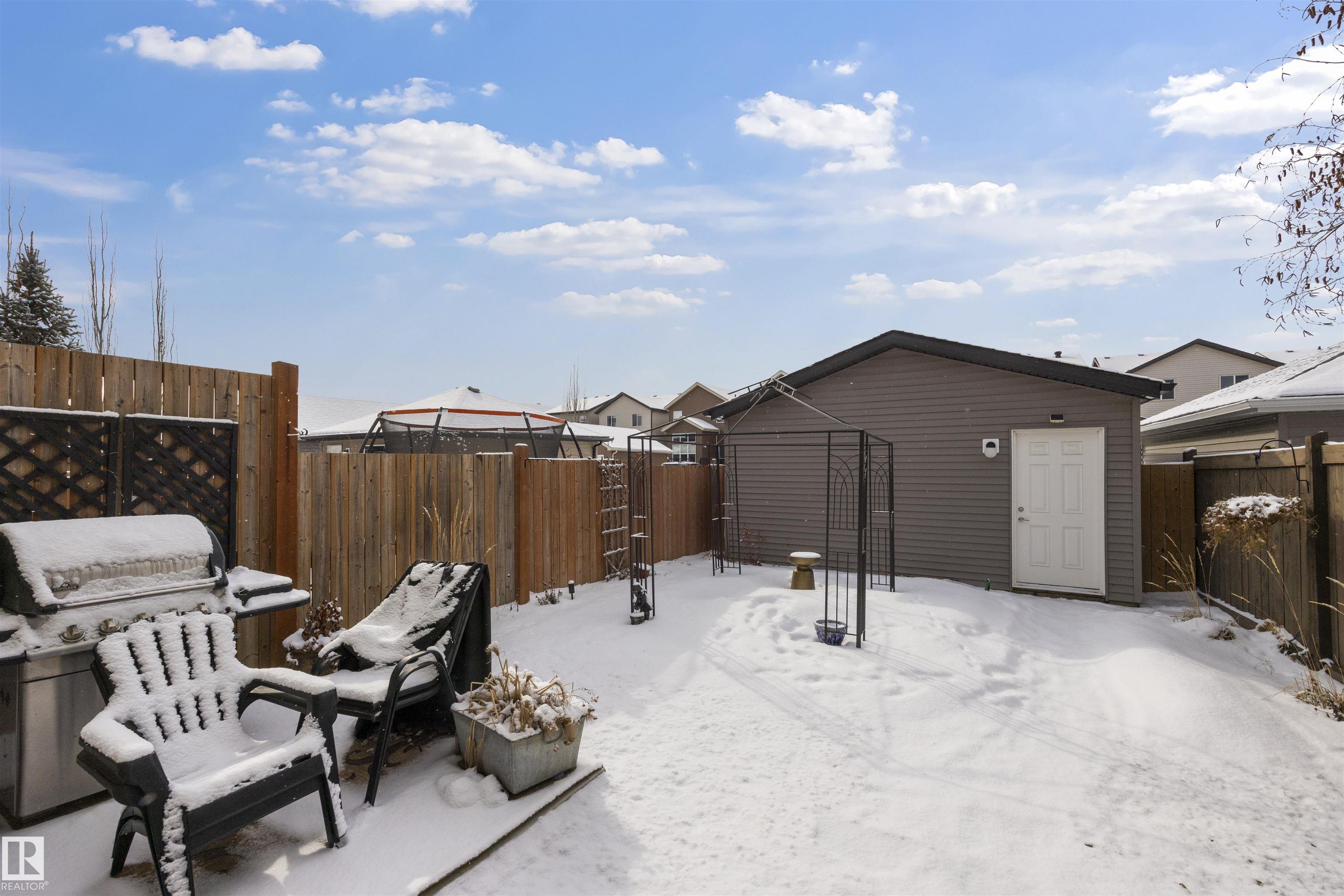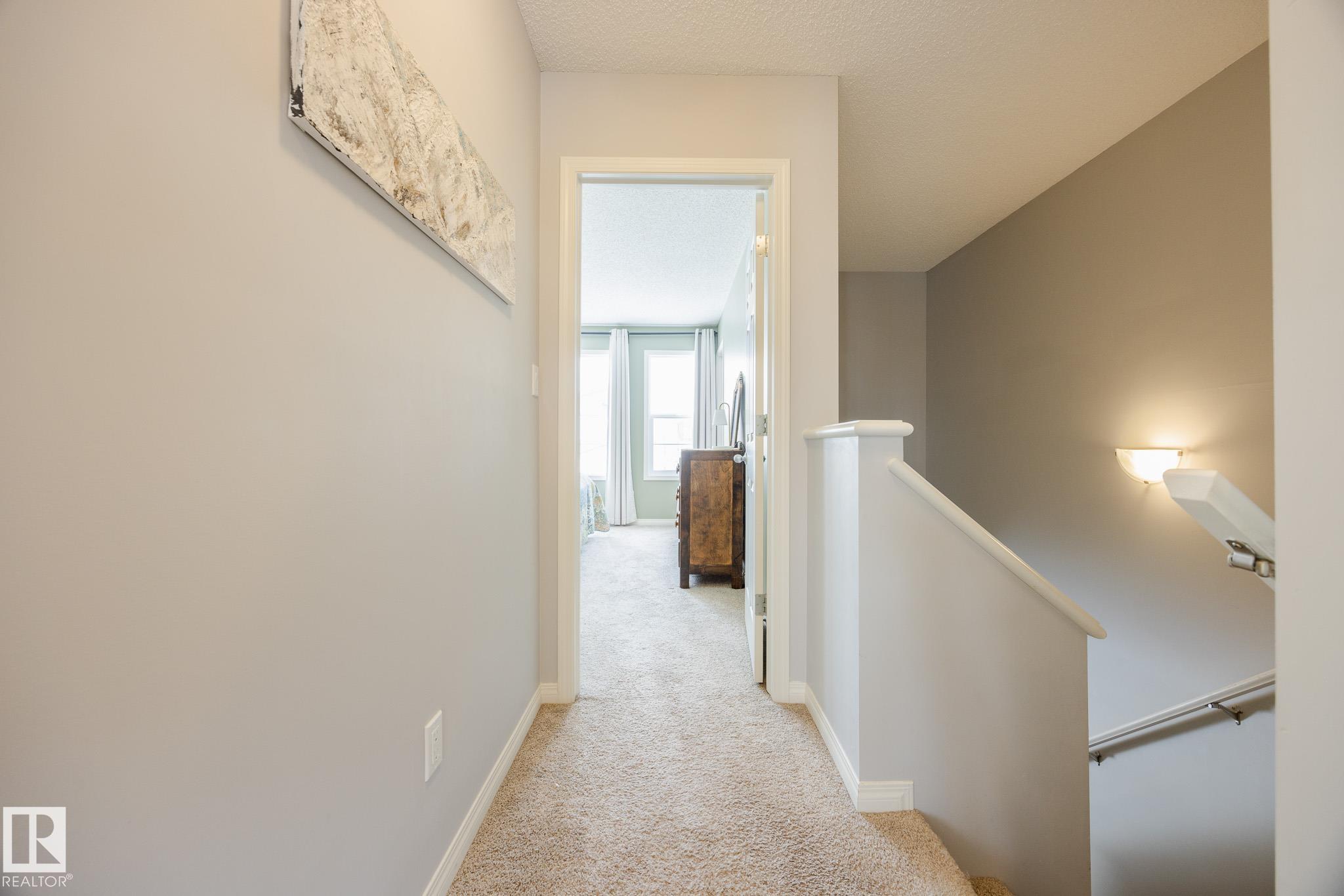 Welcome to this meticulously maintained pride of ownership, 3 bed, 2.5 bath, half duplex located in the vibrant and well sought out community of Paisley. A community that is bright and eye catching with uniquely modern architecture. Inside, the open-concept main floor features a bright living room with an electric fireplace and a modern kitchen with espresso cabinets, quartz counters & a large dining area. Making your way to the Bright Upper level you'll find all three bedrooms are well-sized, with the primary suite offering a private 4 pcs. ensuite, & walk-in closet. Outside, the double detached rear garage provides plenty of room for vehicles, bikes, and extra storage. This is a great place for anyone who wants to feel like they are getting away from the hustle and bustle. Surrounded by trees, beautifully landscaped spaces, rainwater ponds, parks and walking trails. Conveniently located close to the Anthony Henday. There are many reasons to move into Paisley for one the strong sense of community
