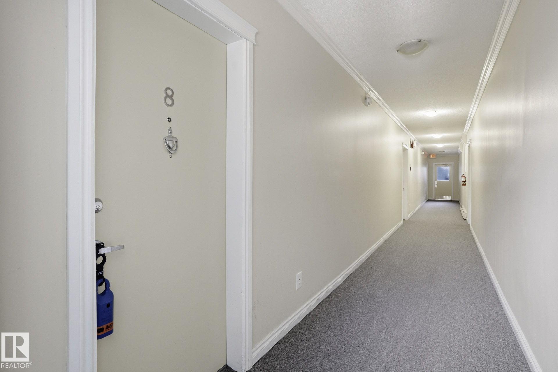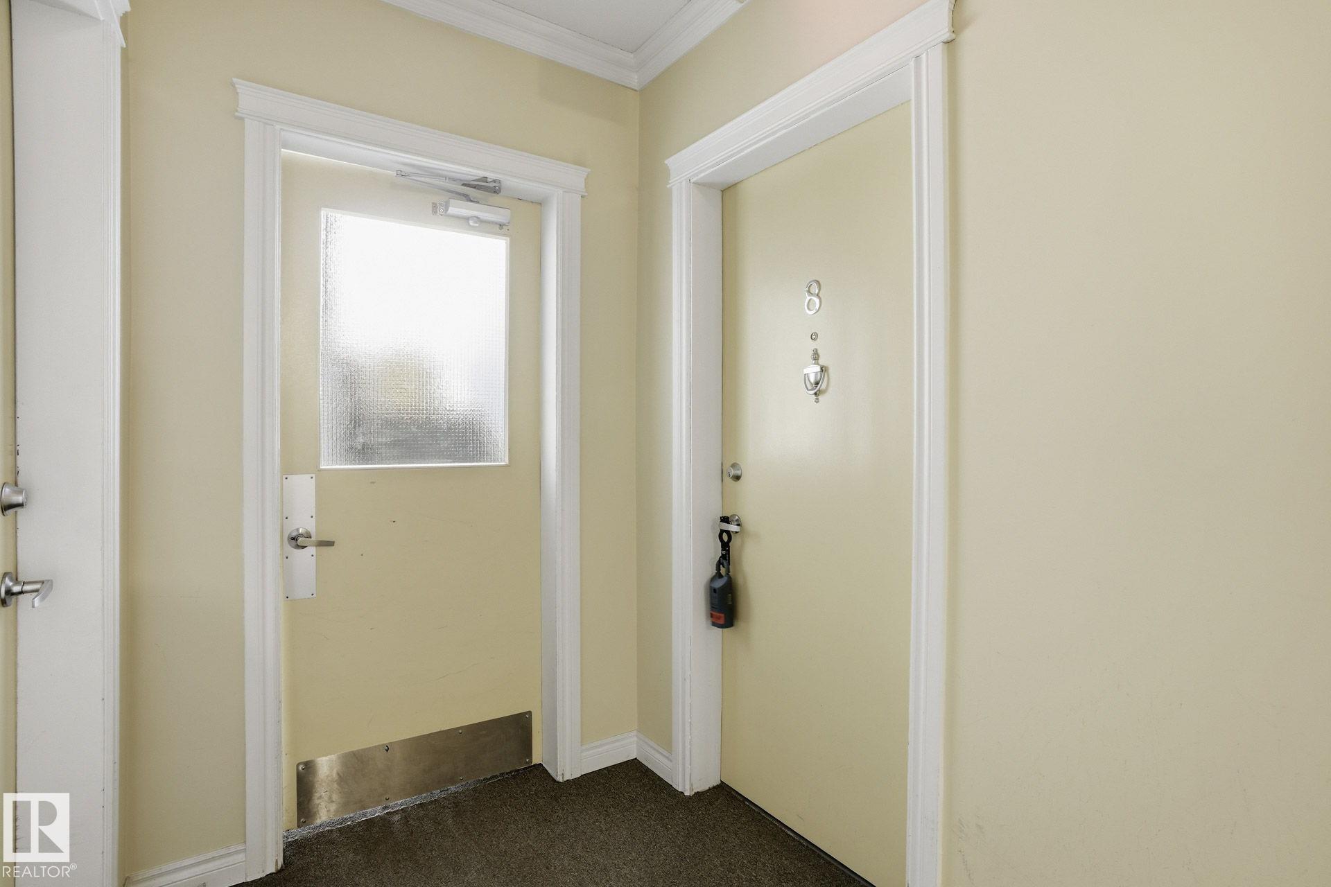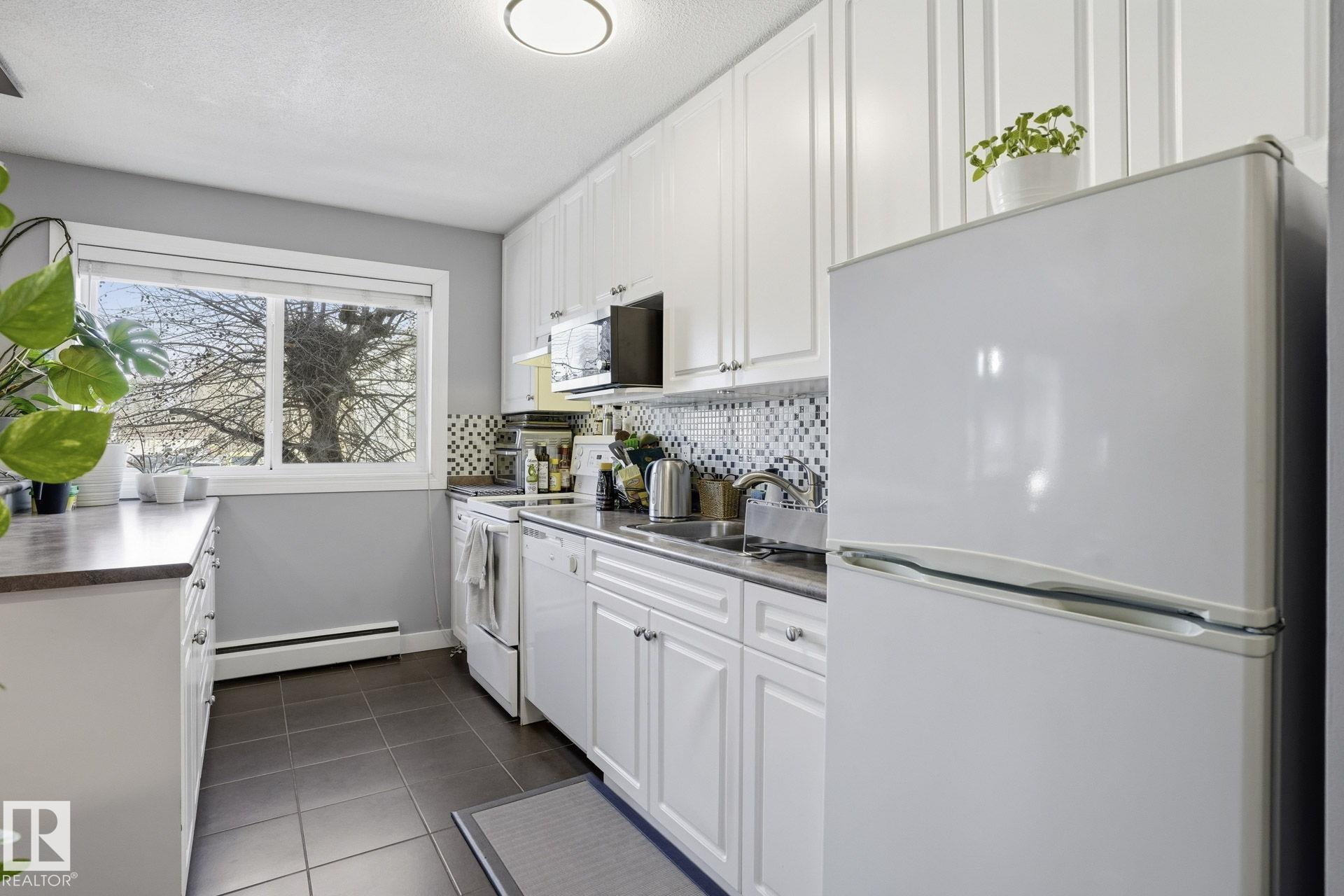 Bright, updated corner unit in Queen Mary Park! This second-floor 1 bedroom condo offers north and west exposure, filling the space with natural light throughout the day. Thoughtful upgrades include flooring, lighting, fresh paint, kitchen backsplash, soft-close cabinetry hardware, and a refreshed bathroom. Clean, move-in ready, and well cared for. Functional layout with spacious living area, large vinyl windows, and assigned parking right out back. Well-managed building with regular maintenance; condo fees include heat and water. Close to downtown, MacEwan, the Brewery District, shopping, transit, and river valley trails. A great opportunity for first-time buyers or investors seeking a stylish, low-maintenance home in a central location.