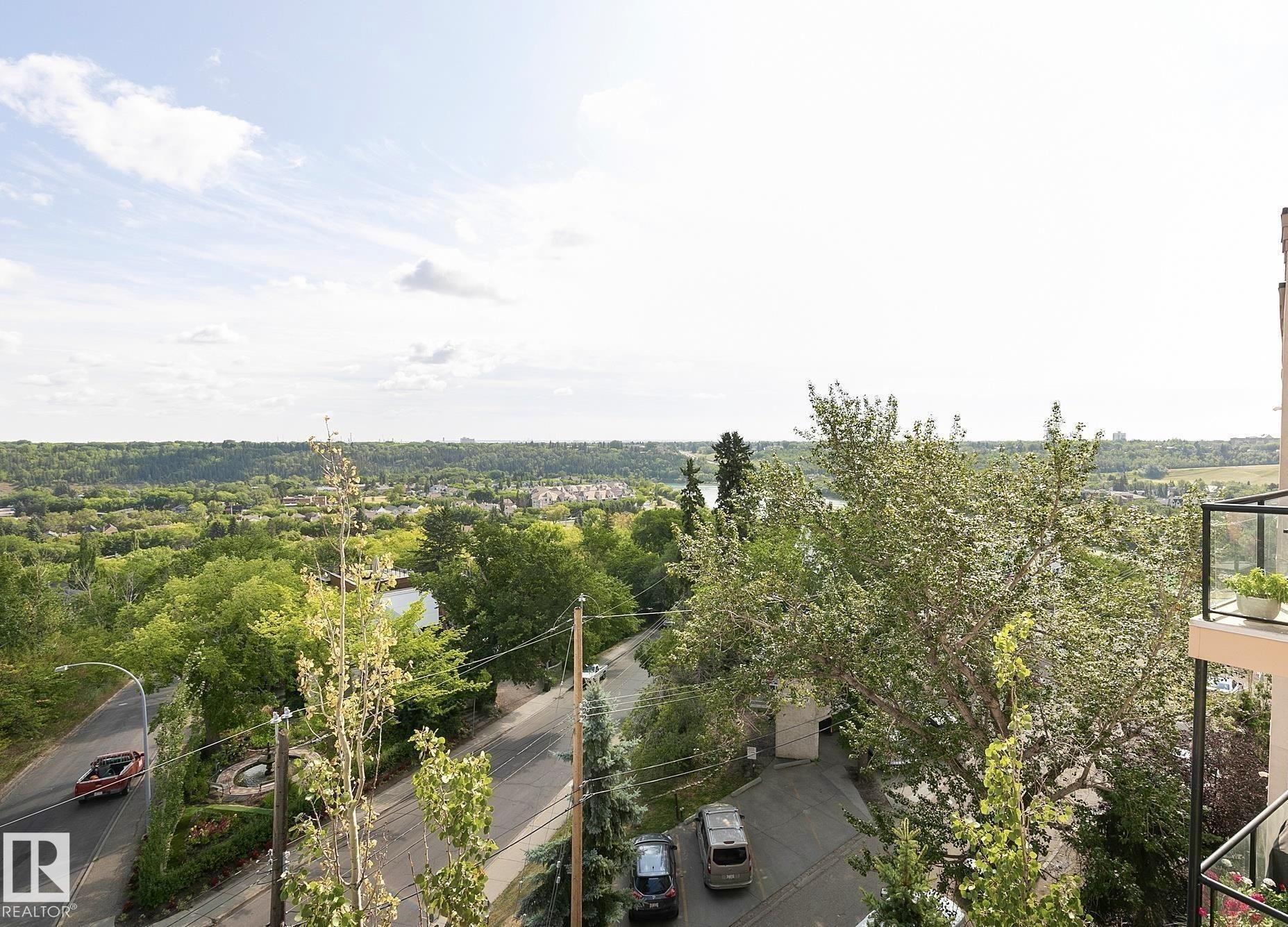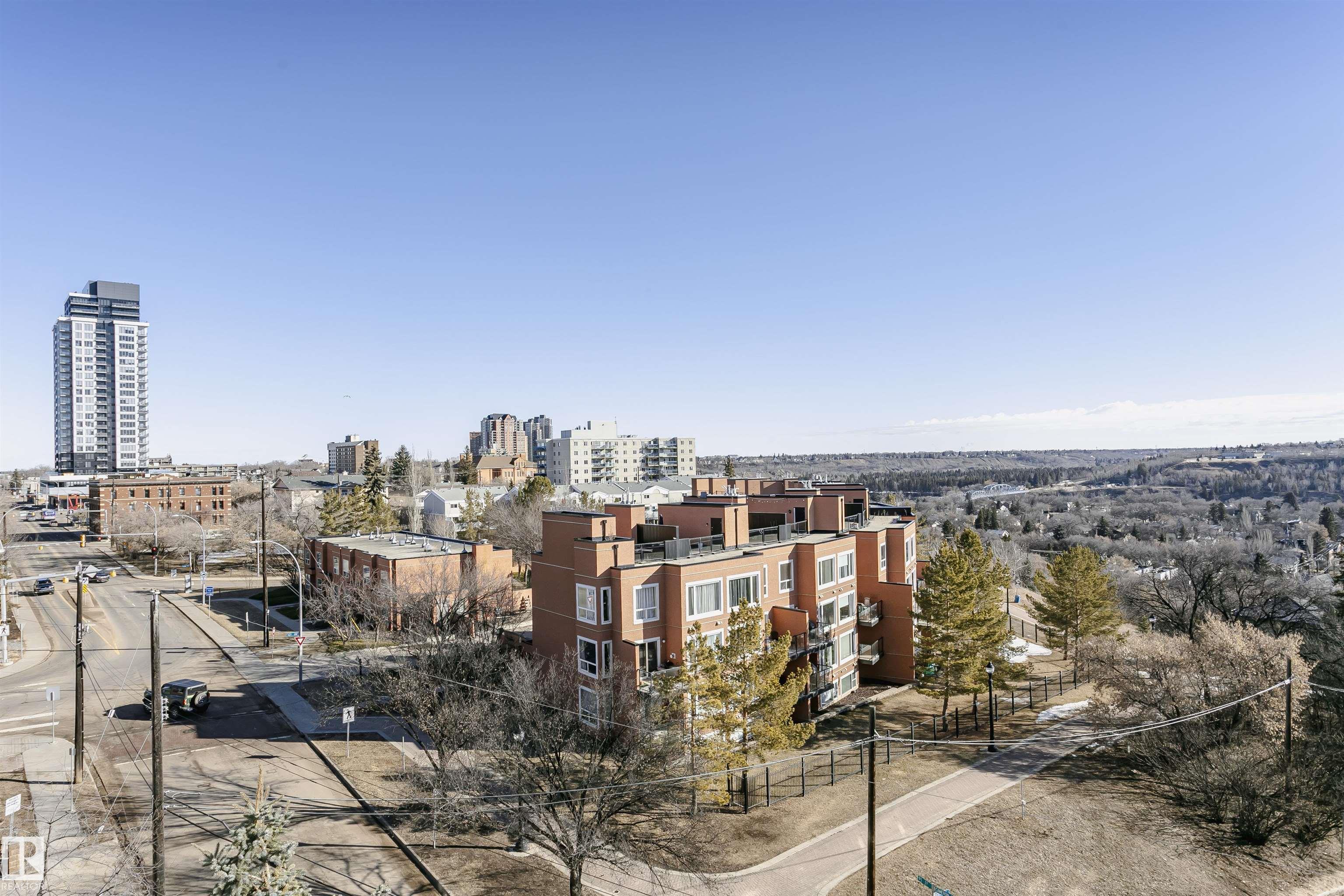 ONE OF THE MOST DESIRABLE LOCATIONS IN THE CITY! Immaculate TOP FLOOR, AIR CONDITIONED 2 bedroom unit overlooking charming RIVERDALE, RIVER VALLEY, & LOUIS MCKINNEY! 10FT CEILINGS greet you adding volume and loads of NATURAL LIGHT into this charming unit. Engineered HARDWOOD & TILE. UPDATED KITCHEN w/ LARGE ISLAND KITCHEN & BREAKFAST BAR, perfect for entertaining. 2 bedrooms are separated by a full 4 piece bath, a set up great for a HOME OFFICE or roommate. Bathroom is complete with extra cabinets, TILE FLOOR and entrance to the Primary Bedroom. PRIVATE EAST FACING BALCONY makes for great summer evenings or morning coffee in the sun. Utility Room off the balcony adds extra storage. RECENT UPGRADES include TANKLESS DUAL WATER HEATER, FRESH PAINT THROUGHOUT, NEW CARPET, LIGHT FIXTURES & REFINISHED CABINETS & COUNTERTOPS. Park in the TITLED, HEATED, UNDERGROUND stall with LARGEST STORAGE CAGE IN THE BUILDING. Tons of visitor & street parking. An incredible opportunity to make this condo yours!