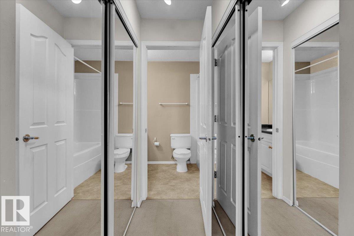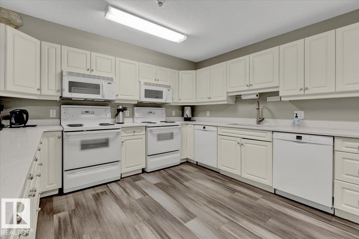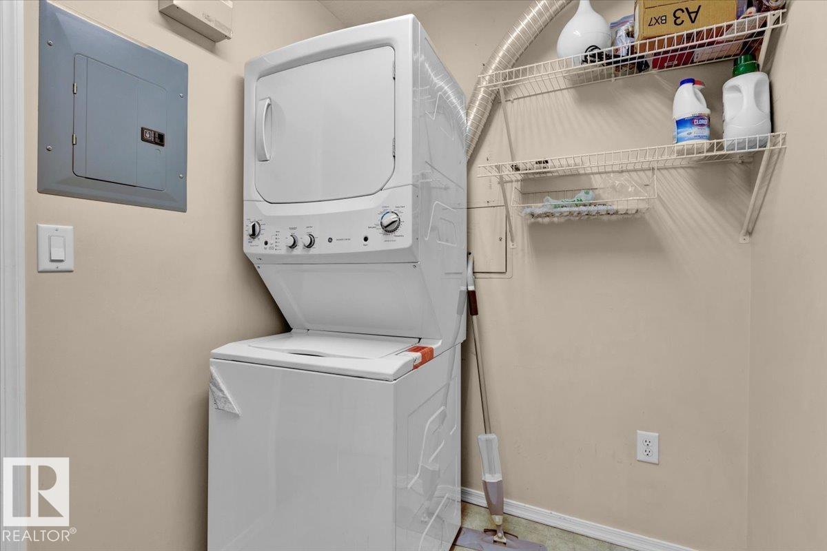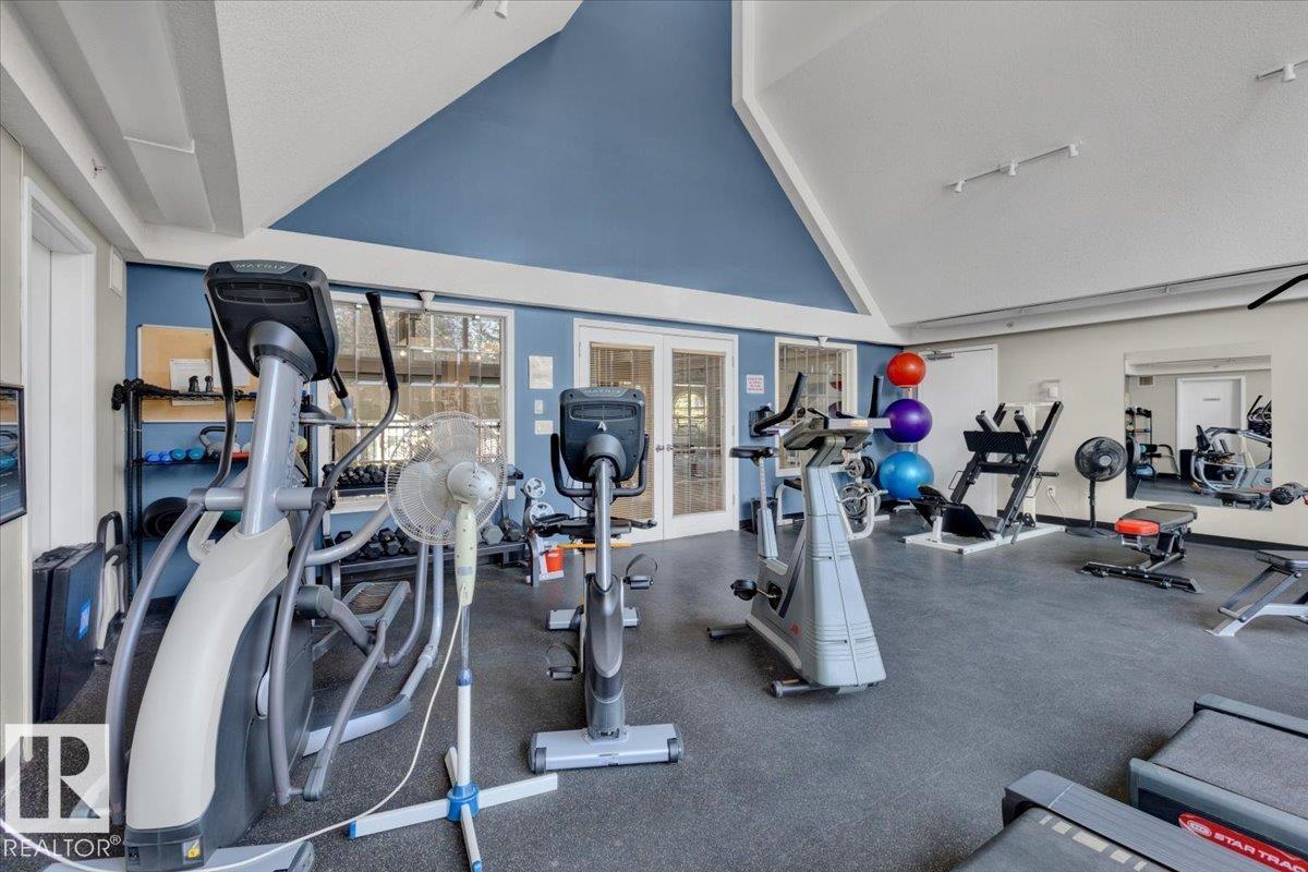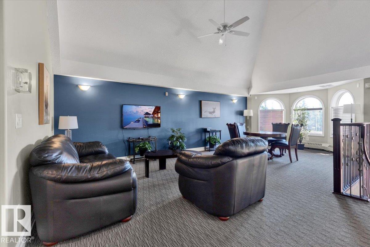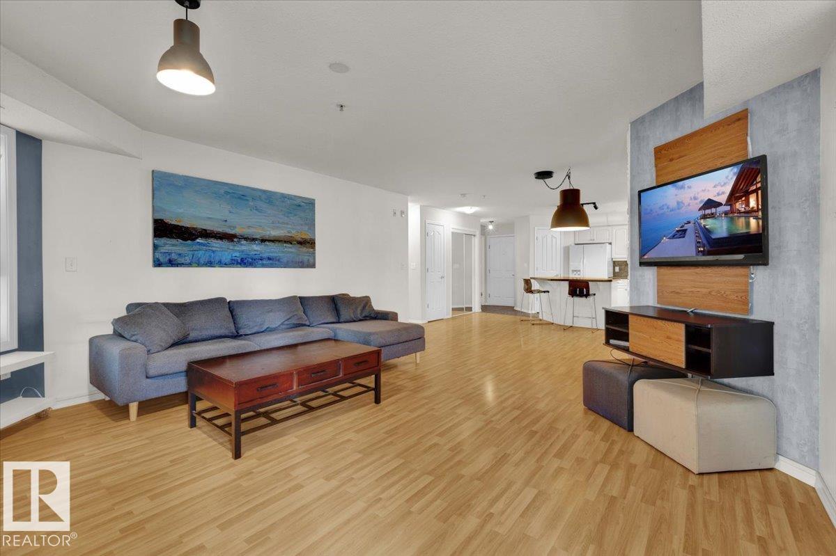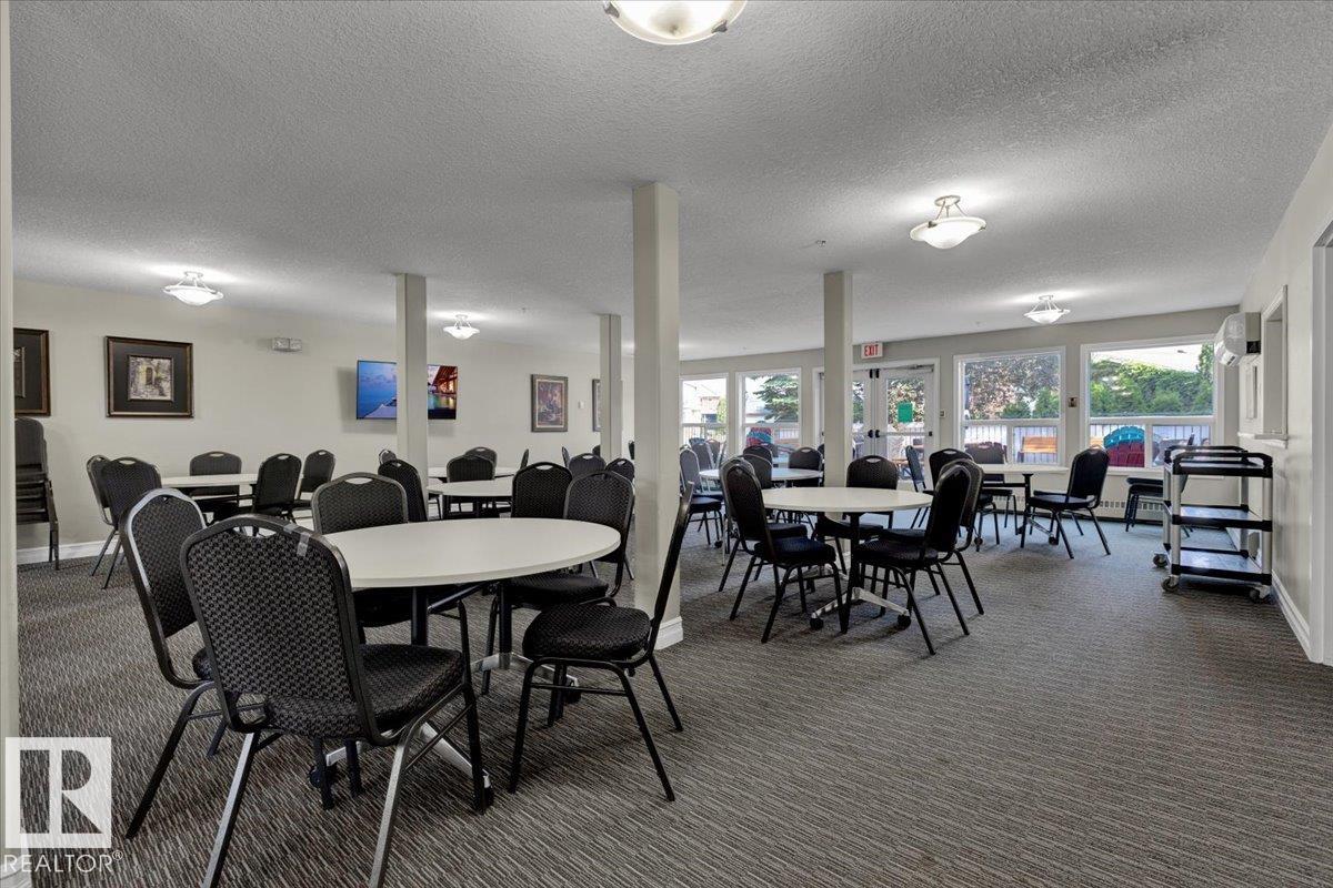 Welcome Home! Terrific Riverdale Location direct access to River Valley Trails with easy commutes Downtown and to the rest of the city. Nestled softly in one of Edmonton's most sought after communities. Ground floor unit with large wrap around patio. 18+ Adult Living complex and well cared for property boast Adult Living with tons to be proud of. Underground parking with storage locker and car wash. Grande entrance way leads to common area room, full gym, and pool table on the balcony overlooking main floor. Plenty of visitor parking in terrific turn about entrance way. Large open concept unit with in suite laundry. Full kitchen with pantry and kitchen island. Ample room for dining table. Huge living room leads to large wrap around patio. Large bedrooms and 2 full bathrooms. Master bedroom has plenty of storage and closet space leading to ensuite bathroom with tub. All appliances included. Central AC, Heat and Water Included in Fees, Pet Friendly. Fireplace sold as is. Wonderful opportunity and location!