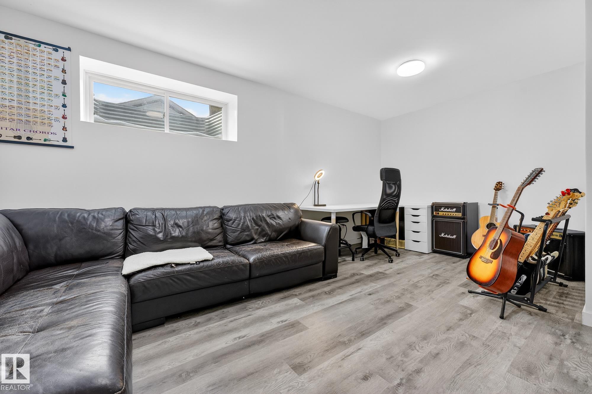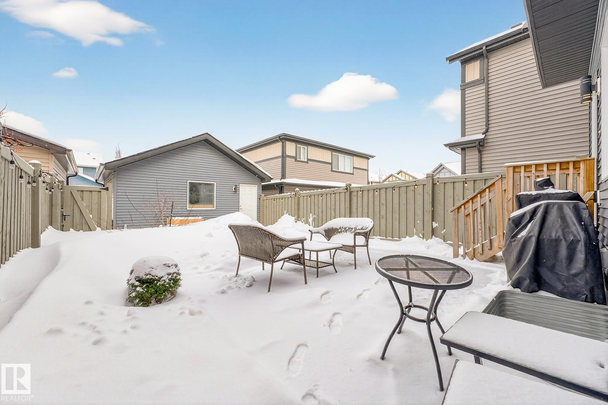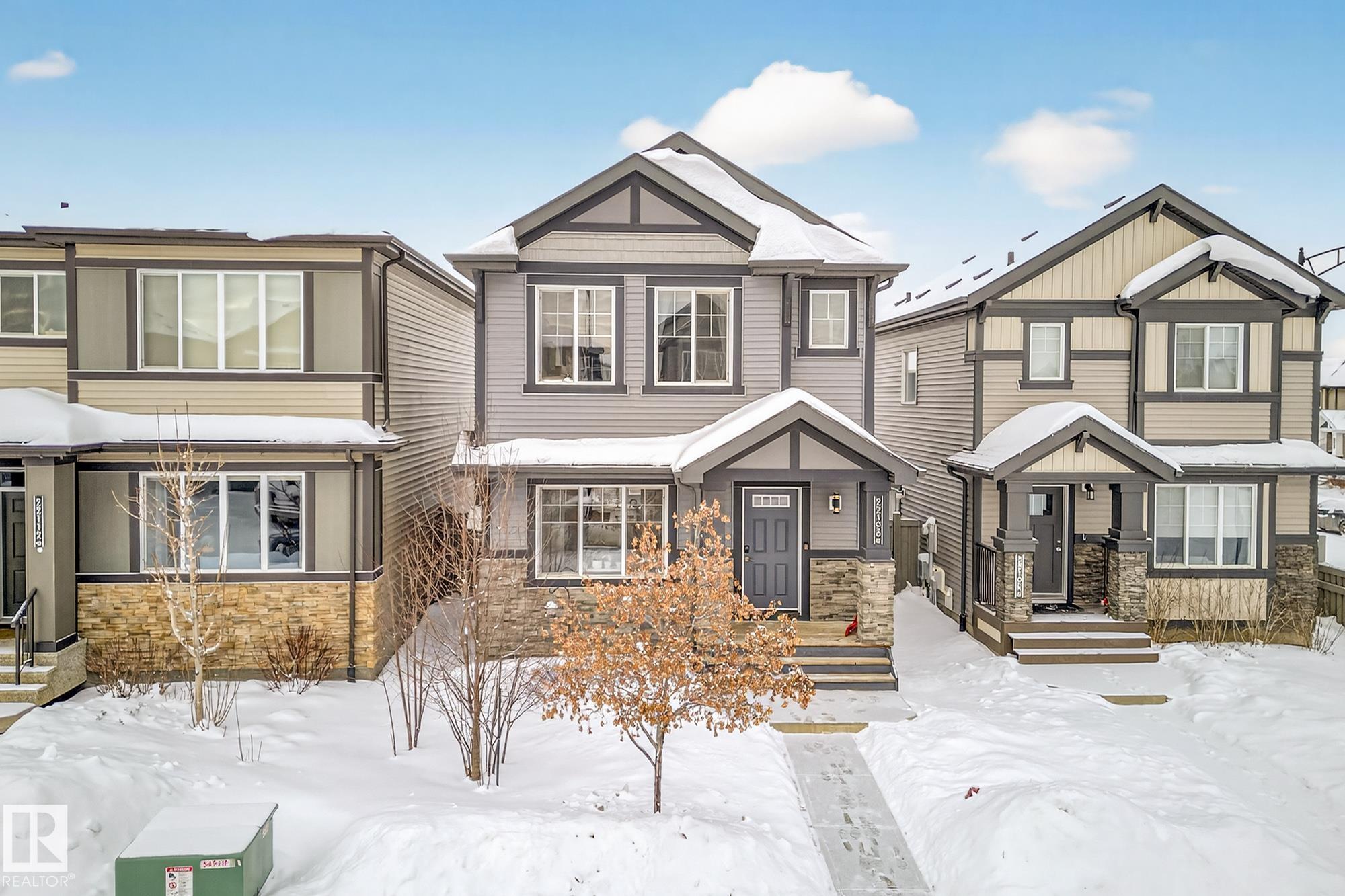 Gorgeous 3 bedroom, 3 bathroom home in family-friendly Rosenthal! This well-maintained 1,355 sq ft home features 9' ceilings, large windows, and an open concept main floor with durable vinyl plank flooring. The upgraded kitchen offers quartz countertops, stainless steel appliances, extended cabinetry, and plenty of storage--perfect for everyday living and entertaining. Upstairs you'll find convenient laundry, three spacious bedrooms, and a 4-piece main bath. The primary suite includes a large walk-in closet and private 4-piece ensuite. The partially finished basement features a rec room with vinyl plank flooring and room to grow. Enjoy the welcoming front porch and detached double garage, complete with a plug for an electric or hybrid vehicle. Fantastic location close to the Henday, Whitemud, Costco, River Cree, and many great amenities!