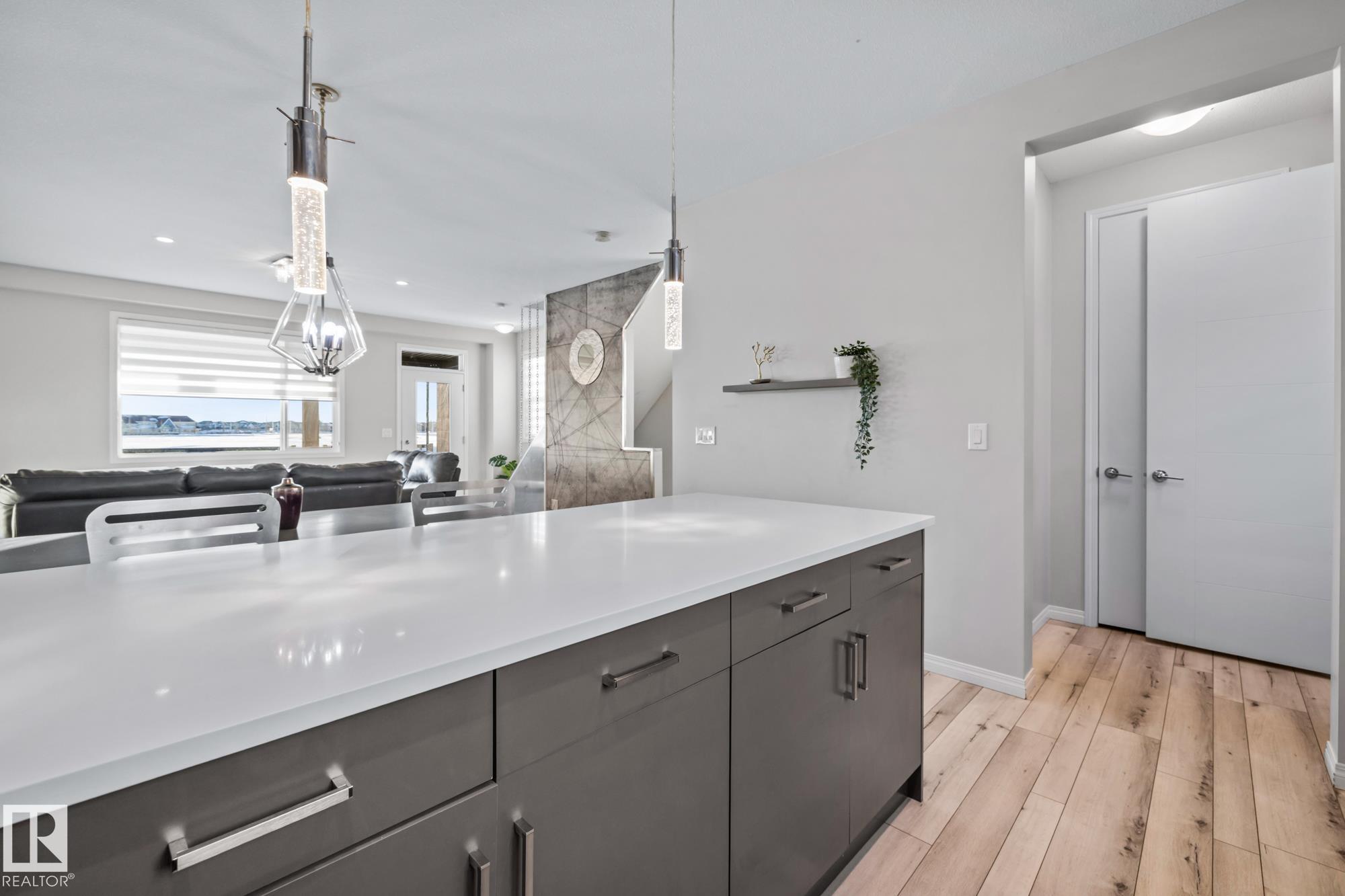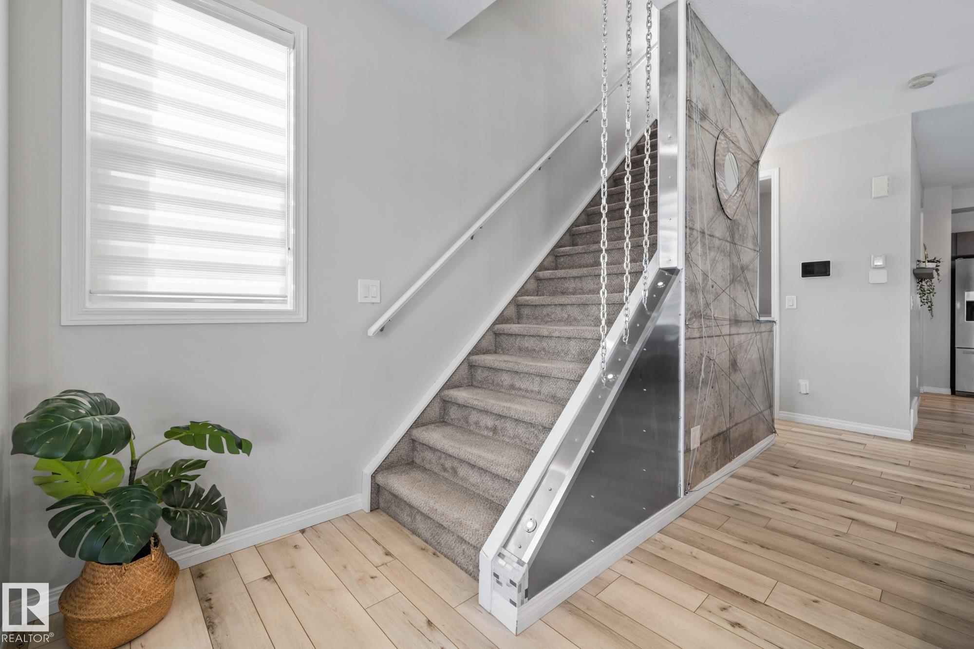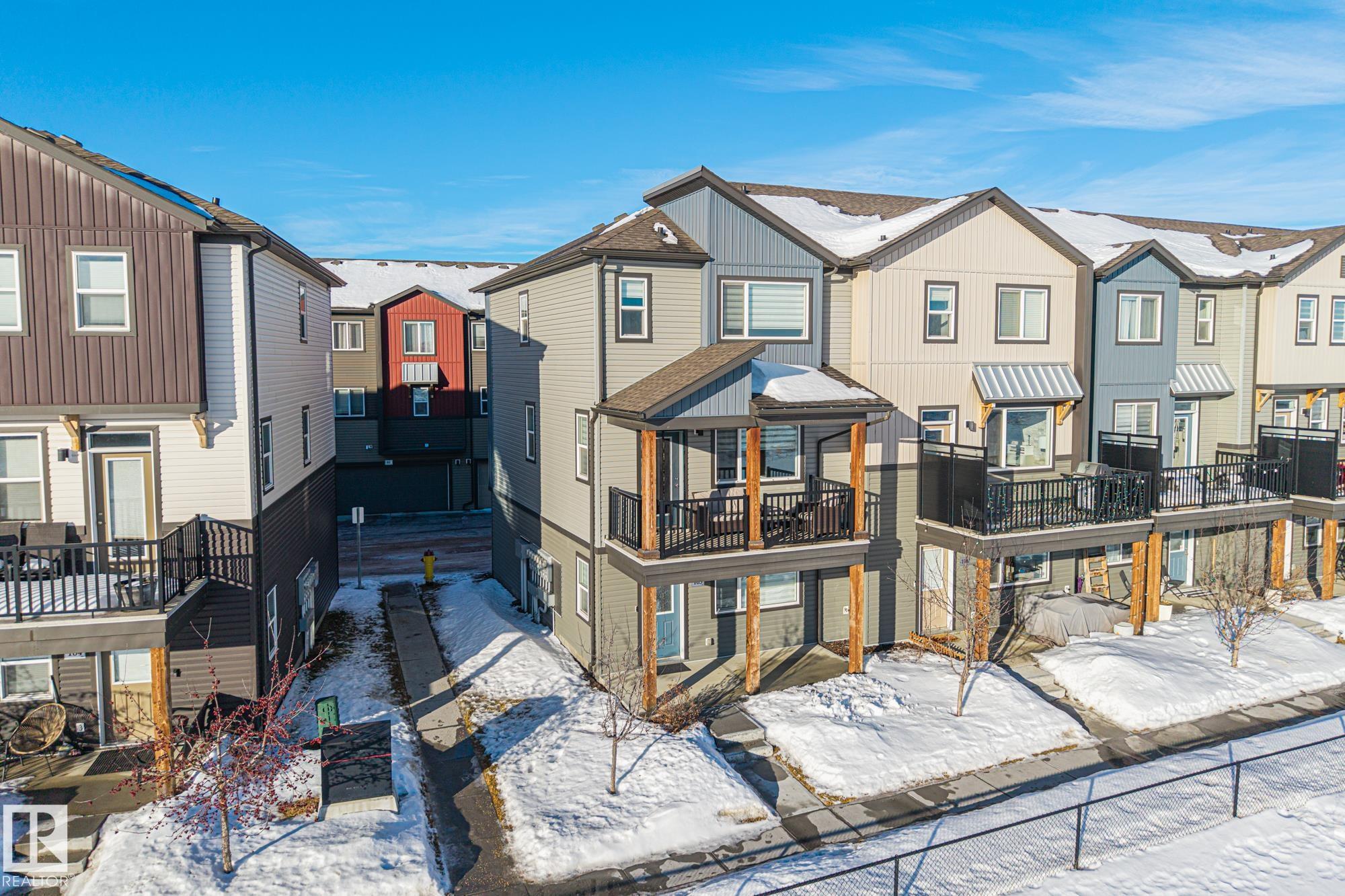 Discover modern industrial living in this stunning 1,544 sq. ft. end-unit townhouse in the beautiful Schonsee neighbourhood. This bright, sun-drenched home features an open-concept layout with 9' ceilings and a thoughtfully upgraded feature wall. The functional floor plan offers three spacious bedrooms plus a versatile den, including a primary retreat with a 3-pc ensuite. Enjoy the convenience of main floor laundry, a large pantry, and a 2-pc powder room. Step outside onto your private east-facing balcony to take in serene pond views. Utilize the double attached garage and nearby visitor parking. Perfectly positioned for ease of living, you are minutes away from major commuter routes, premium shopping, and essential commercial amenities. This 3-storey gem perfectly balances style, comfort, and a prime location.