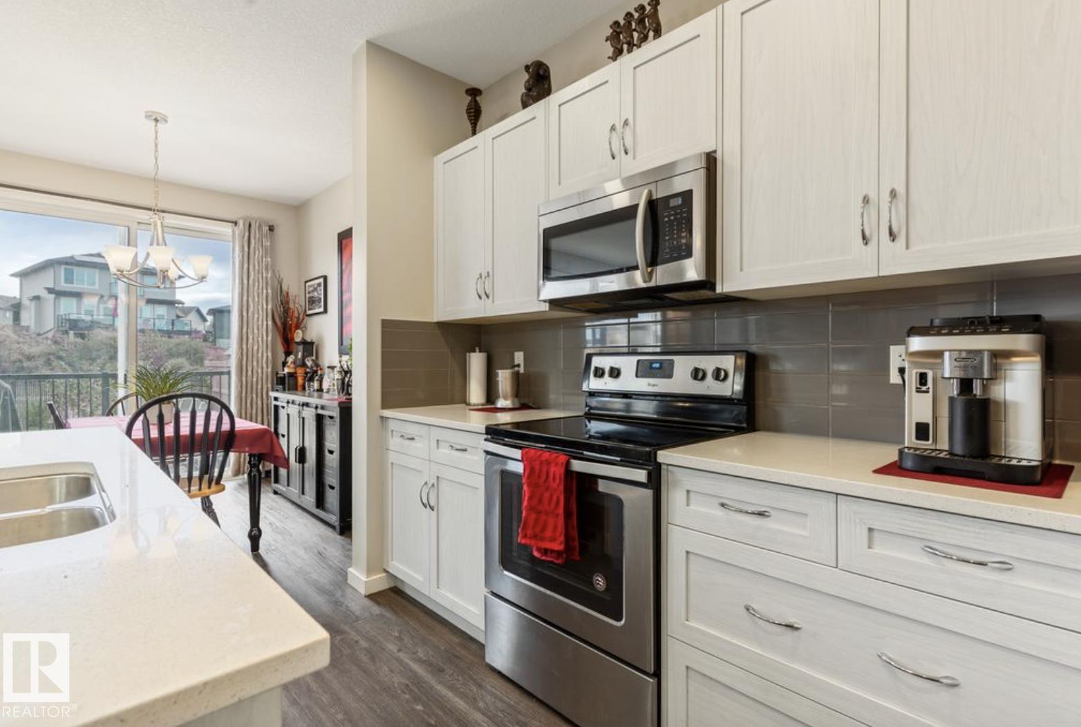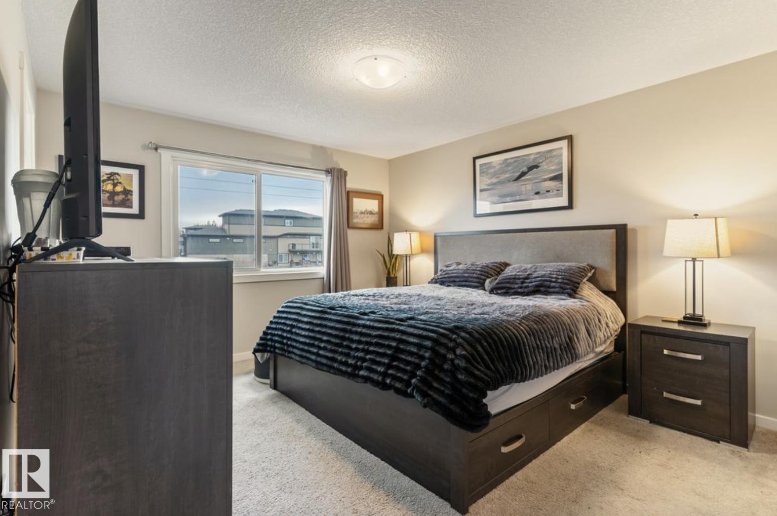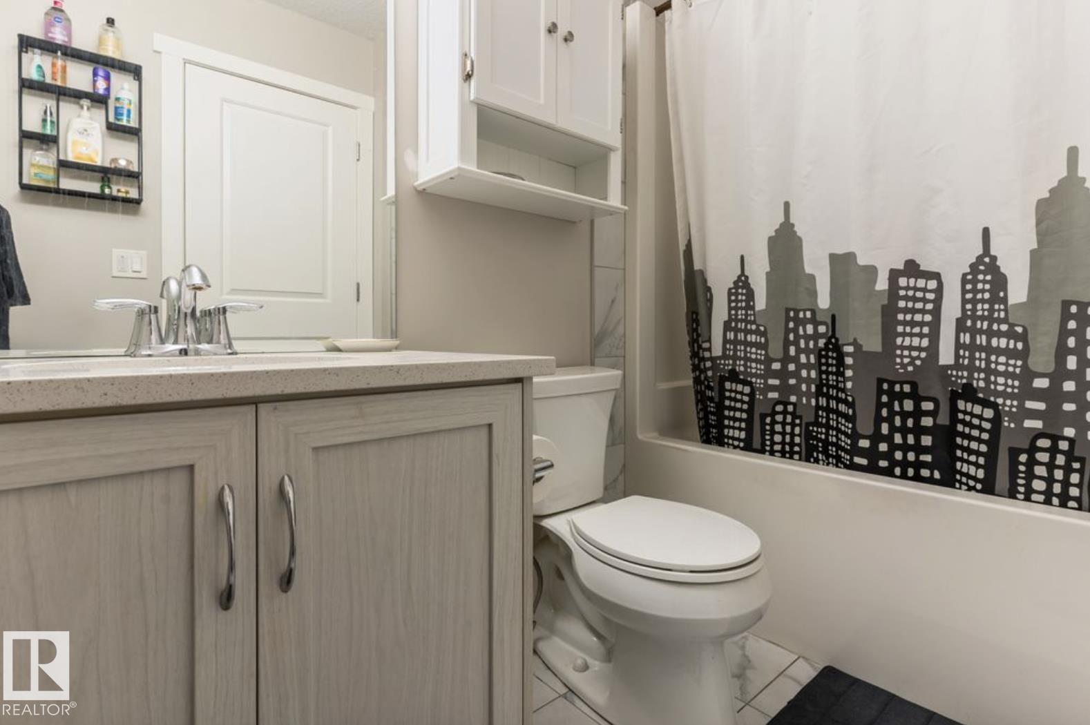 Welcome to this stunning 3-bedroom, 3-bath half duplex in the desirable community of Trumpeter, offering over 1,600 sq. ft. of modern living space and a fully insulated double-car garage. The main floor features 9-ft ceilings throughout and a bright open-concept design that seamlessly connects the kitchen, dining area, and living room, along with a convenient main-floor washroom. The kitchen impresses with snowy white quartz countertops and elegant beige cabinetry, creating a perfect blend of warmth and sophistication. Upstairs you'll find two additional bathrooms, three spacious bedrooms with ample closet space, and a versatile bonus room ideal for family entertainment or a home office. The professionally landscaped yard offers a sizeable deck and hot tub, providing the perfect space to relax and unwind. This home combines style, comfort, and functionality in one of Edmonton's most sought-after neighbourhoods.