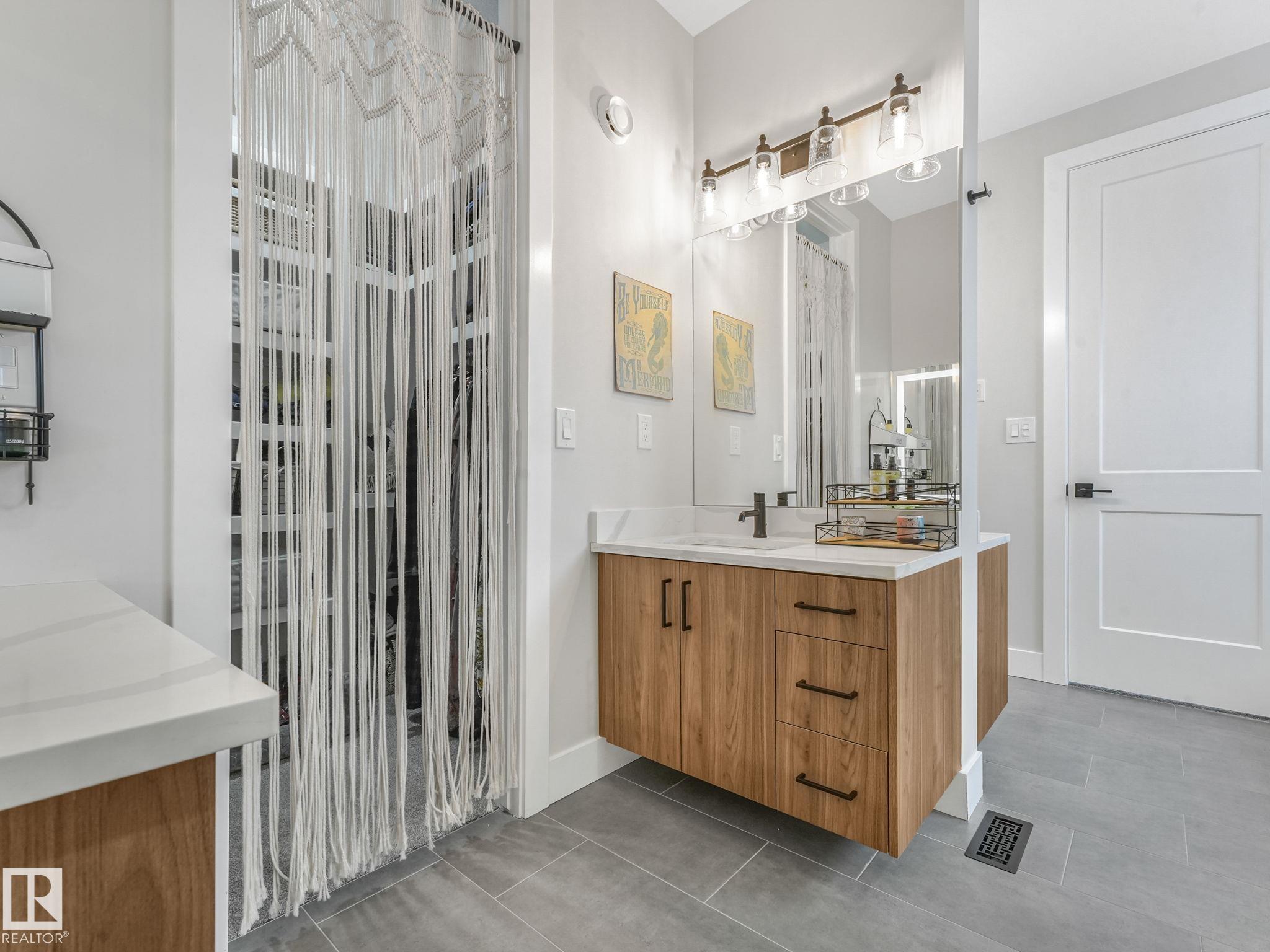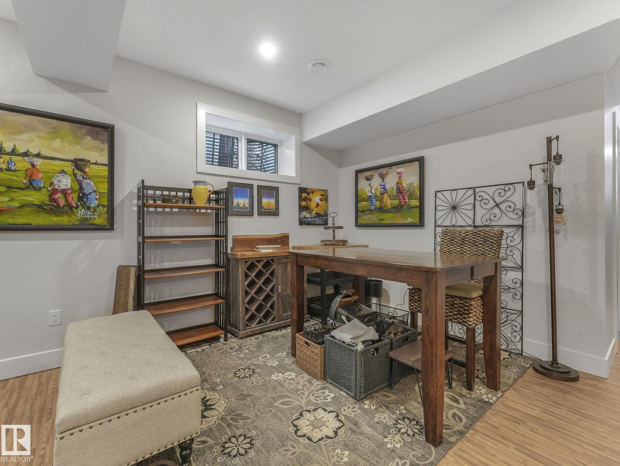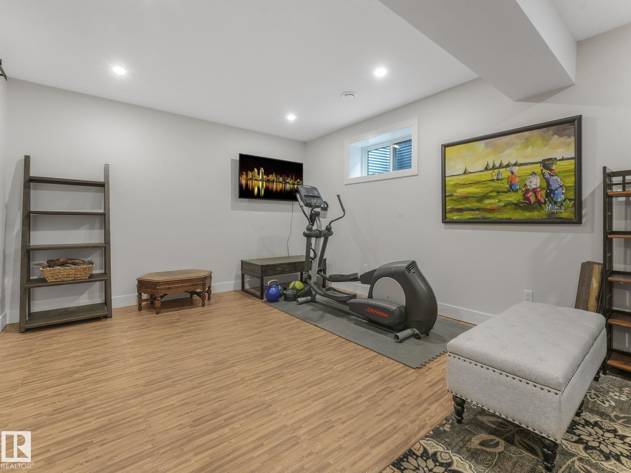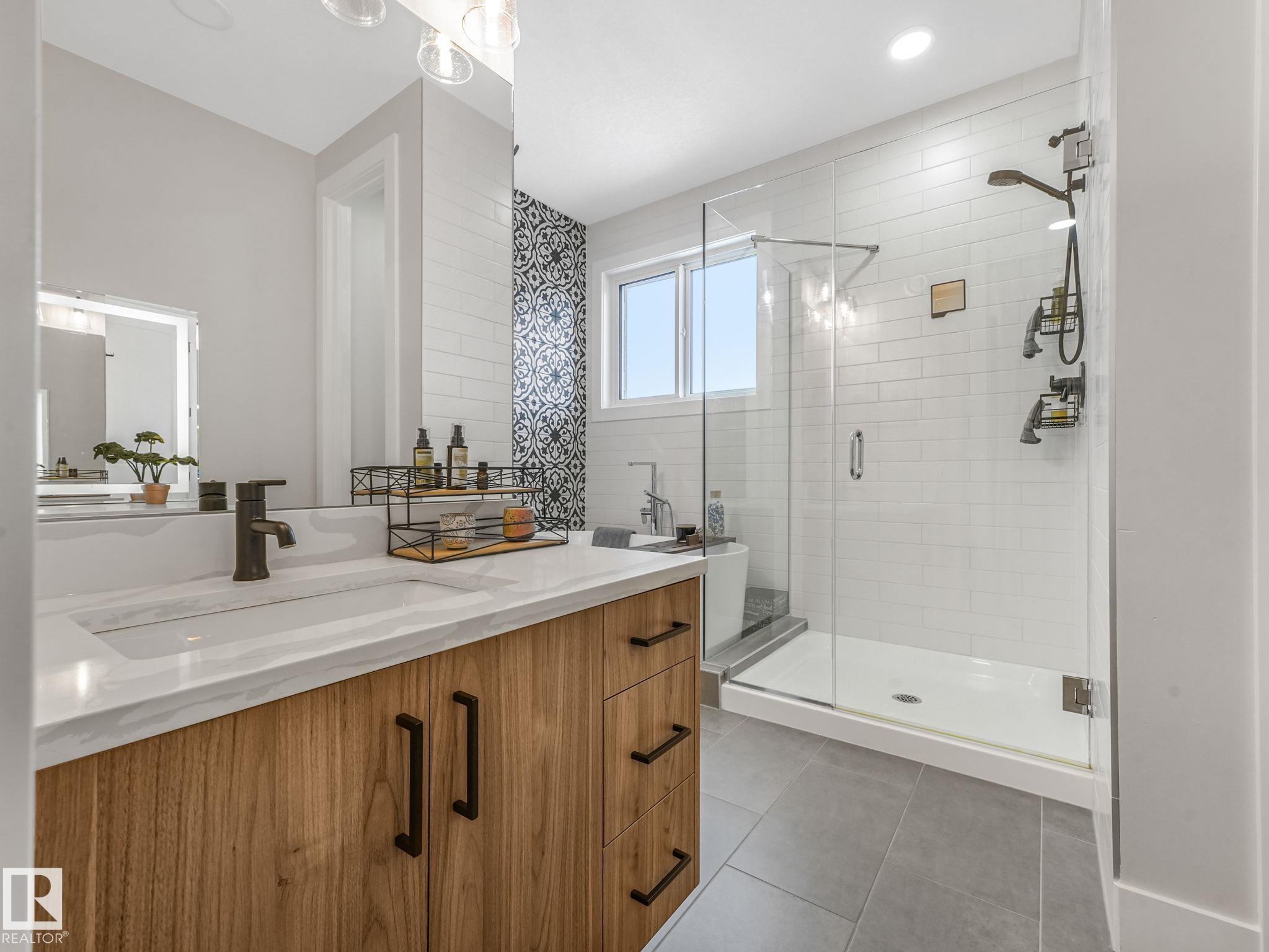 Prime Location! Private and sunny south backyard on a top-of-the-bank walkway adjacent to a Natural Conservation area. Enjoy privacy, natural light and wildlife views from your 2 level deck with pergola. Inside, this upgraded home features an open concept design with a $20,000 appliance upgrade including an induction cooktop on a custom-built cabinet, and in the new butler pantry there is a dual wall/convection oven beside a pullout pantry. The large custom walnut island extension is perfect for entertaining. All 3 levels feature 9'ceilings and triple pane windows. The upper level includes a spacious bonus room, laundry, and a generous primary suite with a dual vanity ensuite and 2 walk in closets. New A/C and garage heater. Side entrance has access to an enclosed dog run and the basement flex room with ample space for another bedroom. Trumpeter has it all ...wildlife and birdlife, hiking, biking, skiing and peaceful protected natural areas adjacent to the Lois Hole Provincial Park. Beautiful location!!