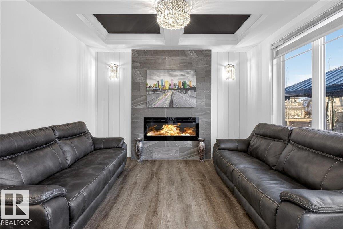 Situated on a massive corner lot in the desirable Trumpeter area, this stunning home offers space, style, and thoughtful upgrades throughout. Step inside to an impressive open-to-above entrance with modern finishes, 8-ft doors, and an inviting electric fireplace. The chef-inspired kitchen features a gas cooktop, built-in wall oven and microwave, and a walk-through pantry leading to a functional mudroom. Enjoy the flexibility of a main floor den and additional room, plus a unique sunken bonus room upstairs alongside 3 spacious bedrooms. Stay comfortable year-round with central A/C (3 ton 14 seer Ameristar unit), HRV system, and a high-efficiency furnace. Outside, relax or entertain in the massive backyard with a double-layer deck, gazebo, and gas BBQ hookup. The triple garage is pre-wired with gas hookup for a future heater, and there's no sidewalk to shovel. With a walking path nearby, sump pump, and Diablo automatic fire sprinkler system, this home is loaded with value and ready to impress!