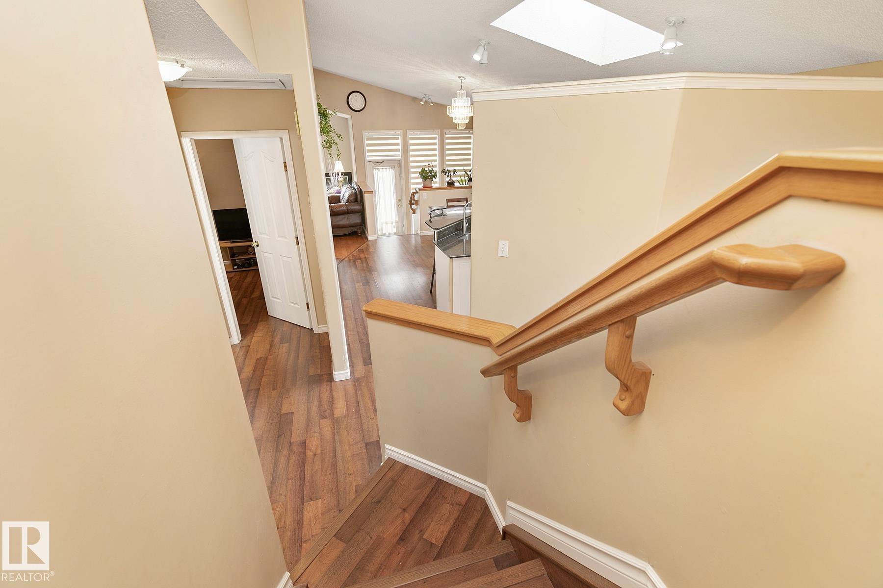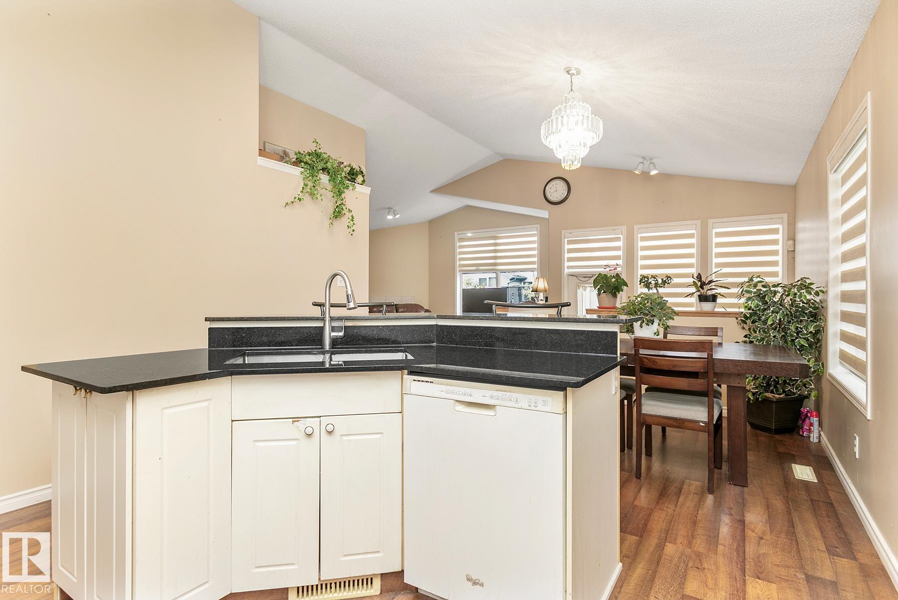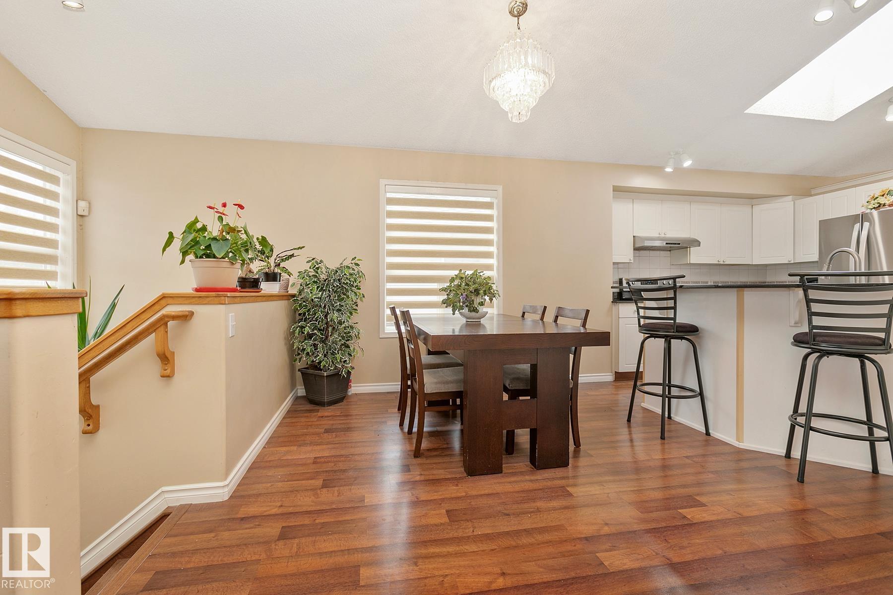 CARED FOR BI-LEVEL HOME WITH 2ND Kitchen setup in Basement. 5 Bedrooms, 3 Full Bathrooms. Main Floor includes Kitchen with Granite Counters, White Cabinets, Stainless Steel Appliances, & Skylight. Vaulted Ceiling throughout, "Open Concept" Dining & Living Room space with Gas Fireplace & tonnes of natural light. Primary Bedroom has walk in closet, and 4 pce Bath. Other UPGRADES include Roof Hot Water Tank, Furnace, Laminate Floor, Window Coverings. Basement includes 2 Bedrooms with 2nd Kitchen, Laundry Room with Storage, Washer, Dryer & Full Sink. Backyard is fully landscaped with large deck, storage shed, apple tree, garden area. Double Attached Heated GARAGE! Located near schools, shopping, restaurants, and quick access to Whitemud & Henday.