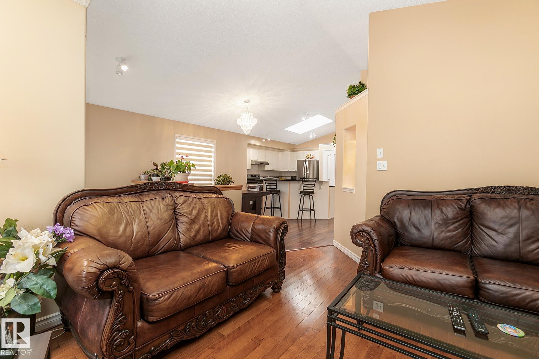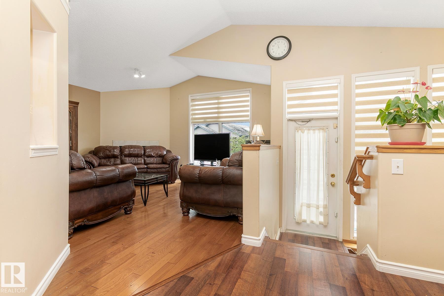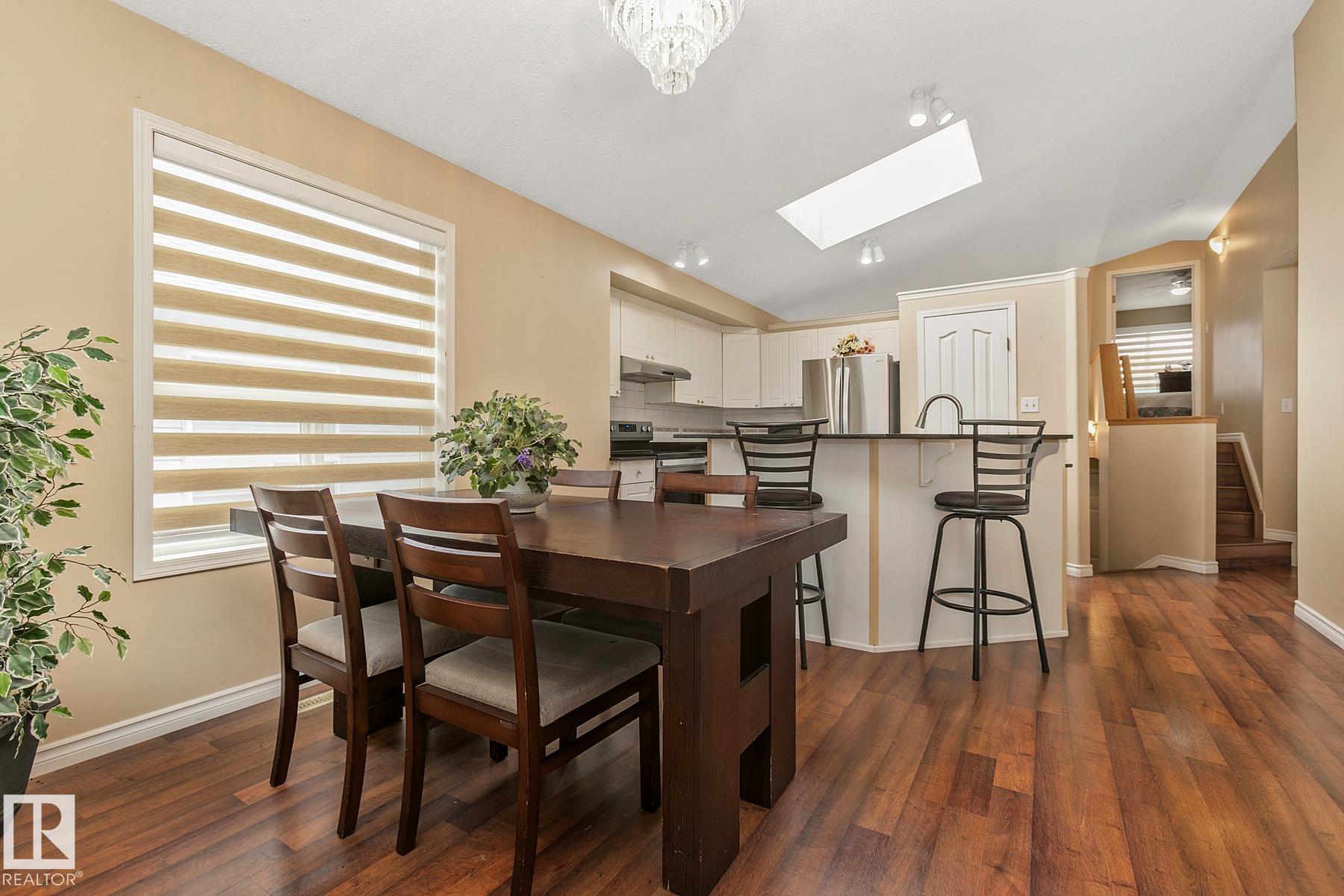 CARED FOR BI-LEVEL HOME WITH 2ND Kitchen setup in Basement. 5 Bedrooms, 3 Full Bathrooms. Main Floor includes Kitchen with Granite Counters, White Cabinets, Stainless Steel Appliances, & Skylight. Vaulted Ceiling throughout, "Open Concept" Dining & Living Room space with Gas Fireplace & tonnes of natural light. Primary Bedroom has walk in closet, and 4 pce Bath. Other UPGRADES include Roof Hot Water Tank, Furnace, Laminate Floor, Window Coverings. Basement includes 2 Bedrooms with 2nd Kitchen, Laundry Room with Storage, Washer, Dryer & Full Sink. Backyard is fully landscaped with large deck, storage shed, apple tree, garden area. Double Attached Heated GARAGE! Located near schools, shopping, restaurants, and quick access to Whitemud & Henday.