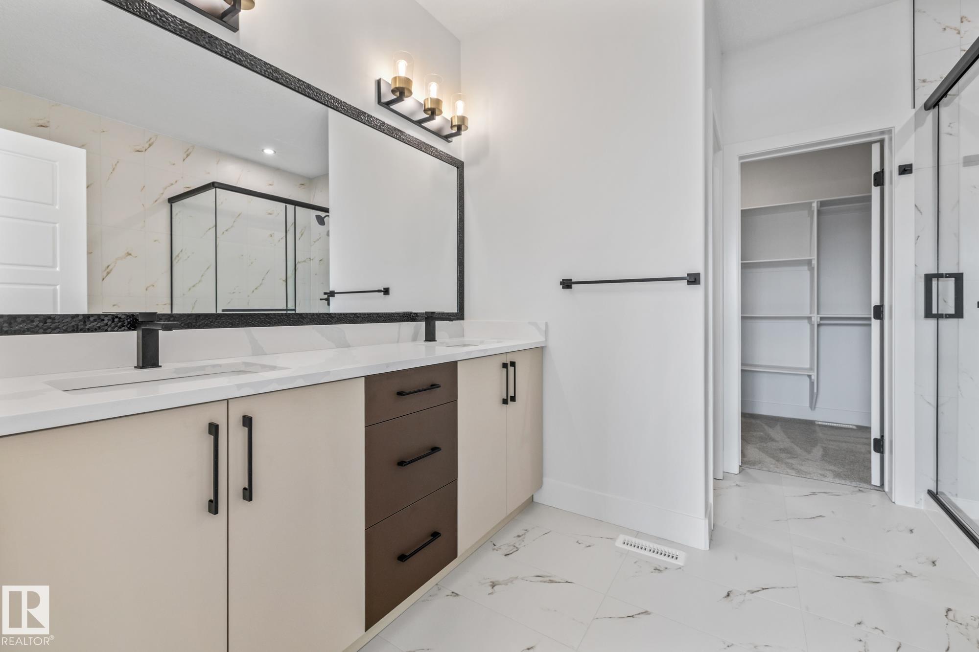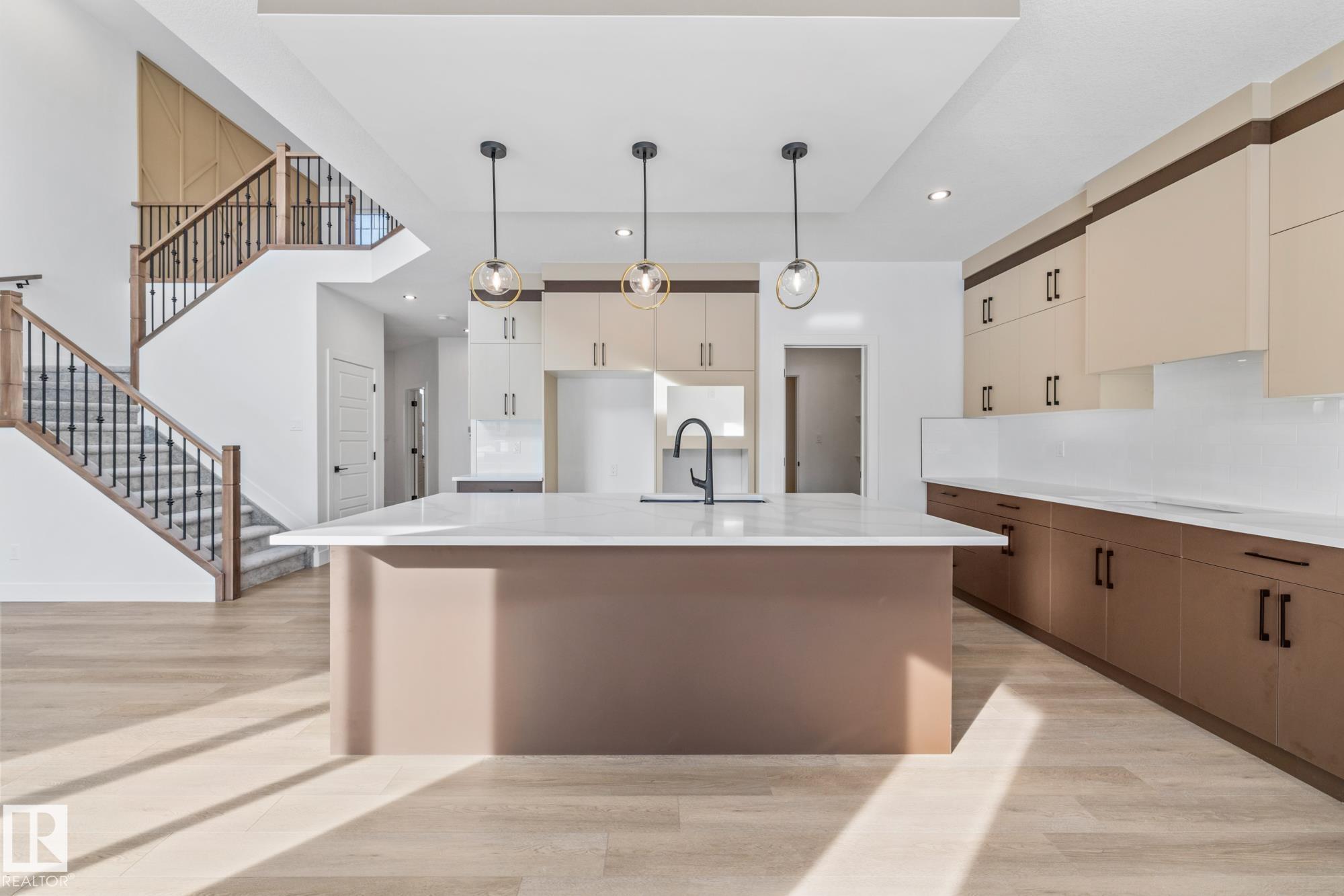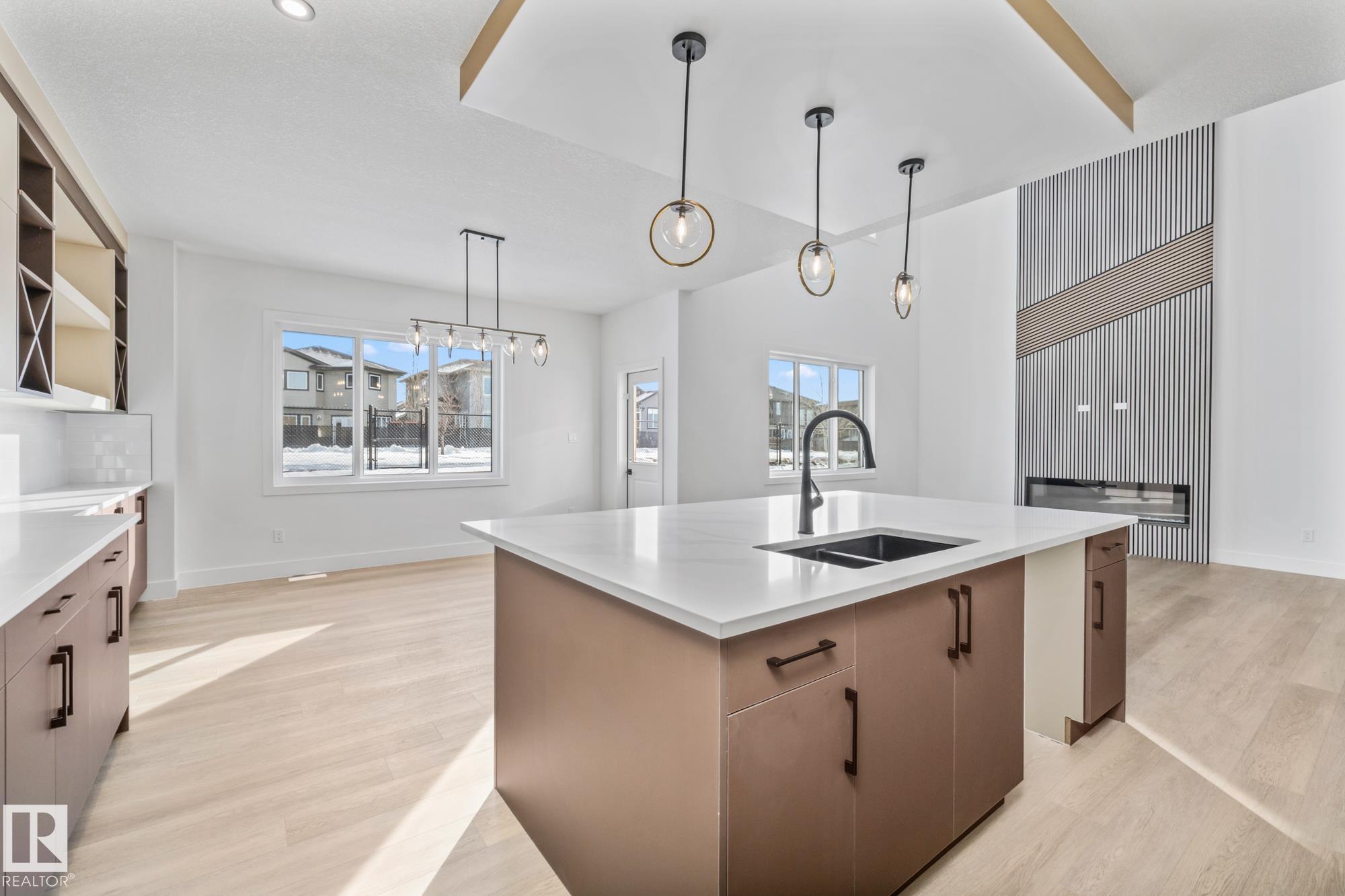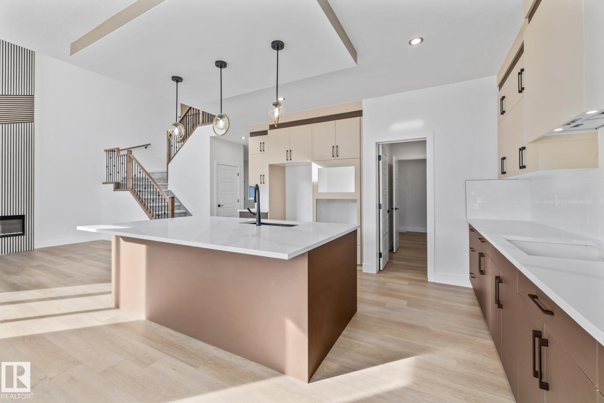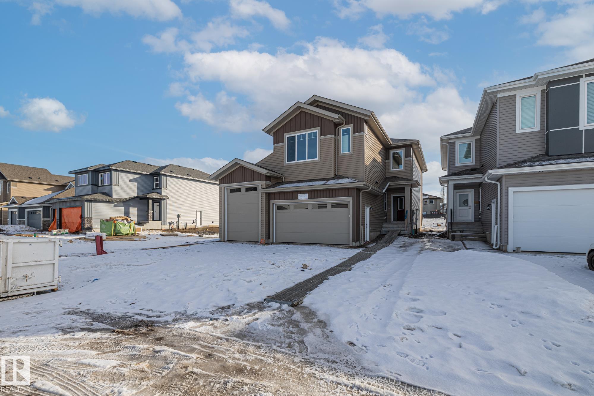 Welcome to a home where thoughtful design and everyday functionality come together beautifully. Enter directly from the garage into a well-appointed mudroom featuring built-in shelving for effortless organization. The walk-through pantry leads to an impressive chef's kitchen with ample cabinetry and counter space, perfectly positioned to overlook the dining area and the breathtaking living room with 18' ceilings and a stylish mantel complete with an electric fireplace. To the left on the upper level offers a spacious bonus room, two bedrooms, a shared bathroom with convenient access from both the bonus room and one bedroom, and an upstairs laundry area. Tucked away on the opposite side is the serene primary suite, complete with a private ensuite and a large closet featuring custom built-in shelving. Adding to the appeal is a side entrance and an attached triple-car garage with an RV bay. Located in Fort Saskatchewan, this property is just minutes from many amenities!