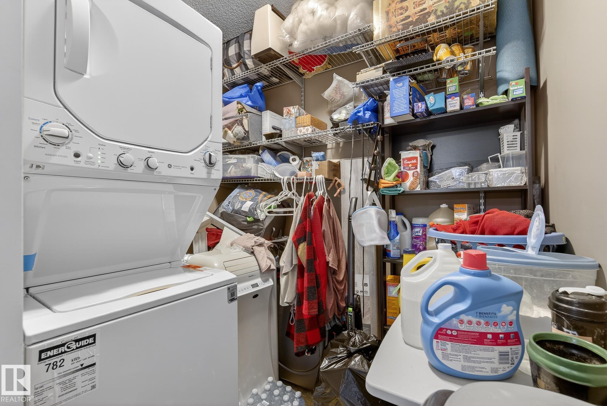 Welcome to top floor living at its best! Featuring 1 bedroom and 1 bathroom this unit is well sized at 751 sq ft. It holds a galley style kitchen with lots of cupboard space, and fills up with morning sunlight from the east facing balcony windows and patio door. With a LARGE living room and ample dedicated dining space this apartment truly feels like a home. New vinyl plank has been professionally laid down throughout. This unit features in suite laundry with a new washer and dryer that have been installed and are held in a large storage room. Included in the condo fees, is access to the fitness center across the parking lot in building 50! This property is in great proximity to Sherwood Park via highway access and has great walkability to public transportation within the city.