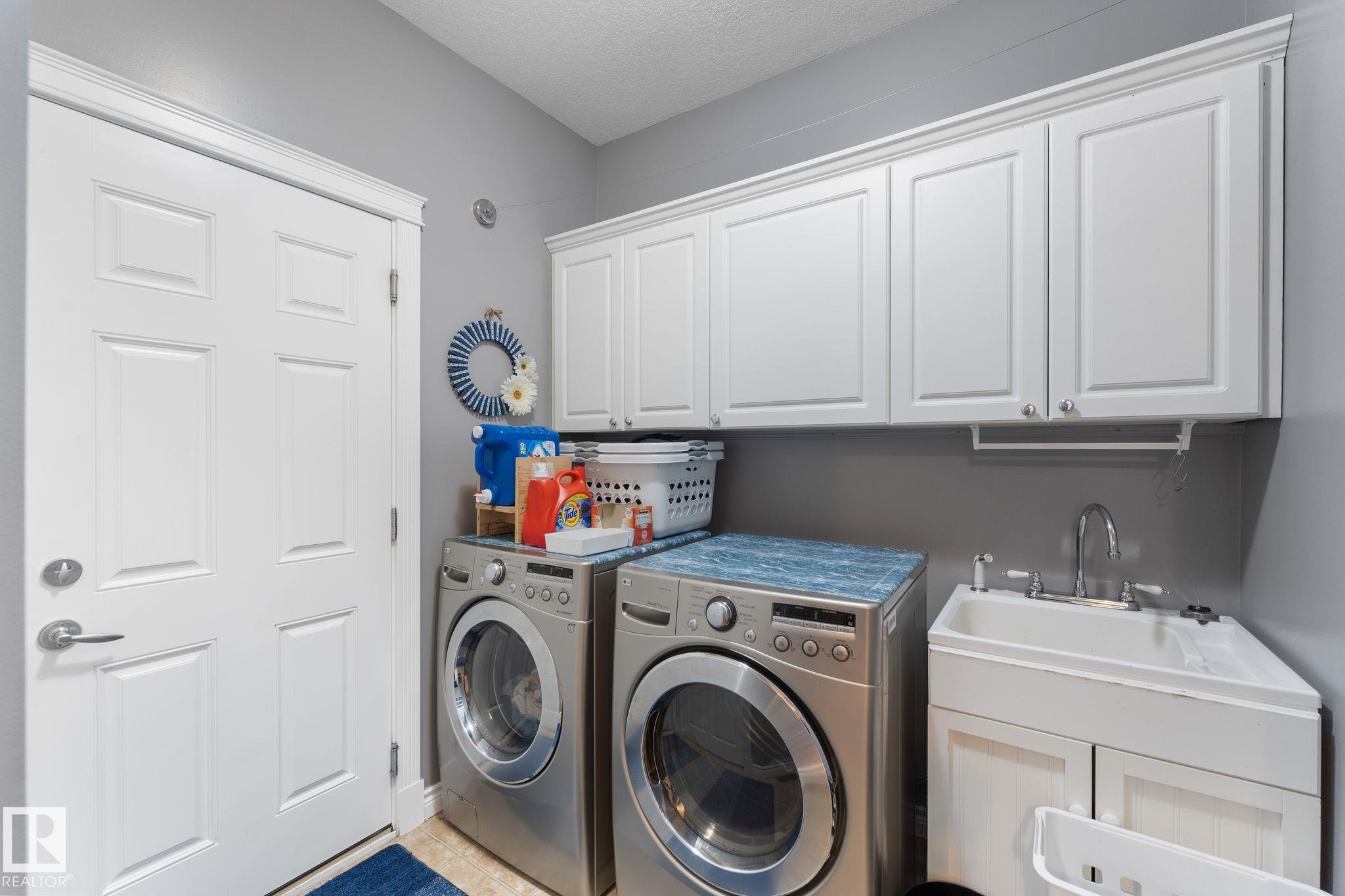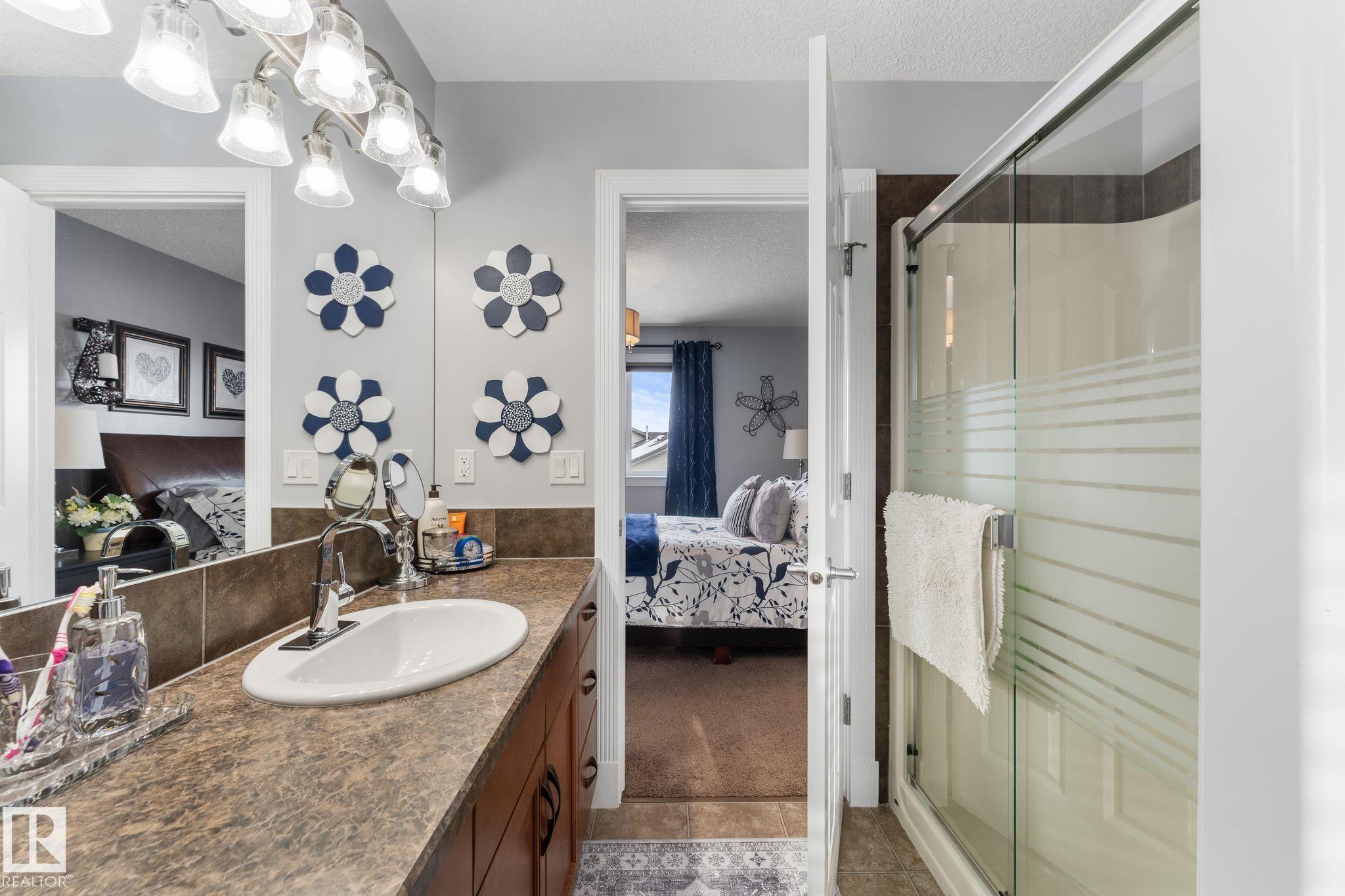Beautiful fully finished two-story home located on a quiet crescent next to a walking path and close to Pryce Alderson Park. The main floor features 9' ceilings, a spacious living room with updated fireplace, large dining area, main floor laundry, and a stunning renovated kitchen with walk thru panty, updated island, countertops, and NEW appliances. Upstairs offers 3 bedrooms including a primary suite with walk-in closet and full 4-piece ensuite, plus an additional 4-piece bath. The finished basement includes a large entertainment/rec space, bedroom, 3pc bathroom and office area. Enjoy air conditioning, large concrete edging, large deck and heated garage. Completely finished inside and out--move-in ready!