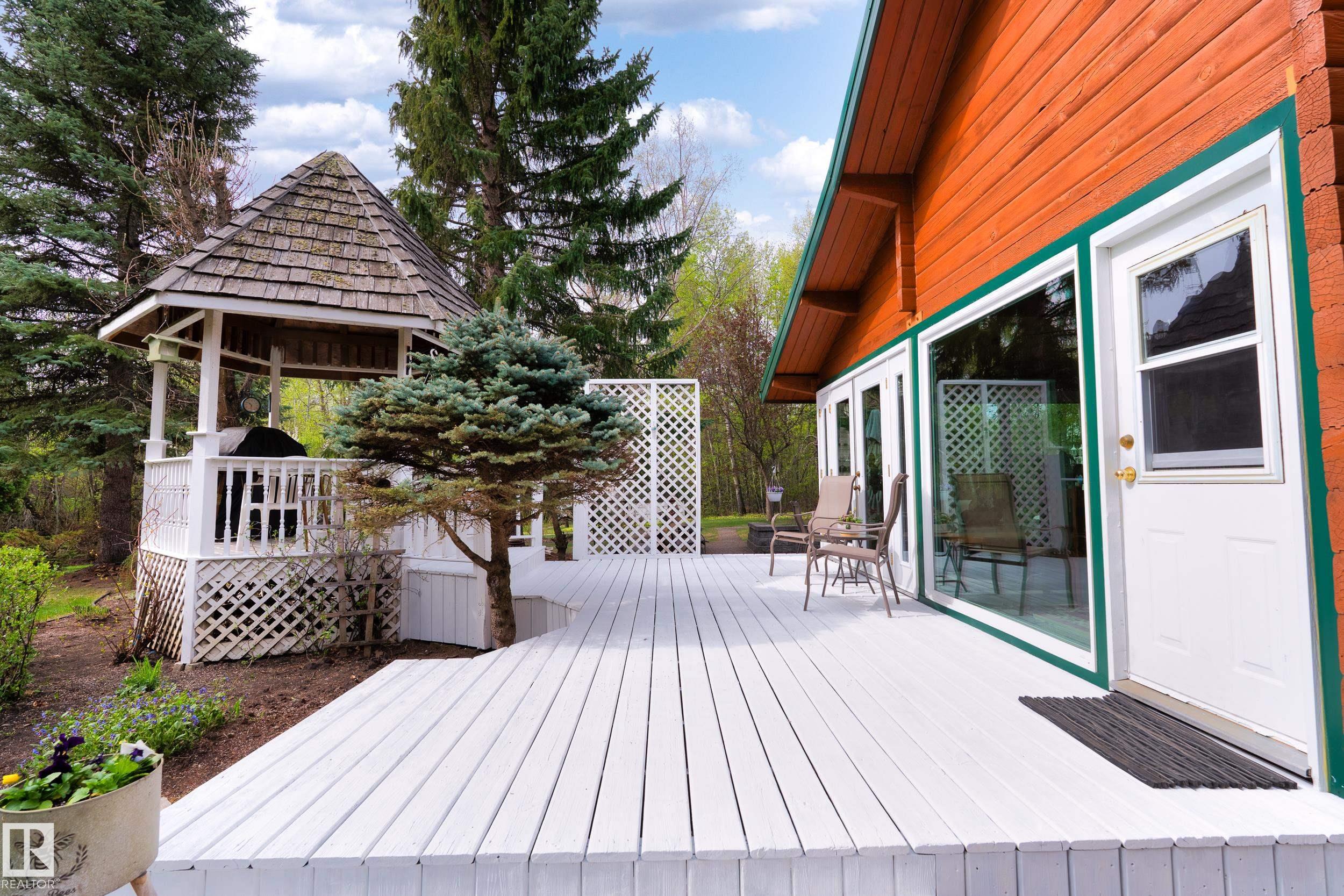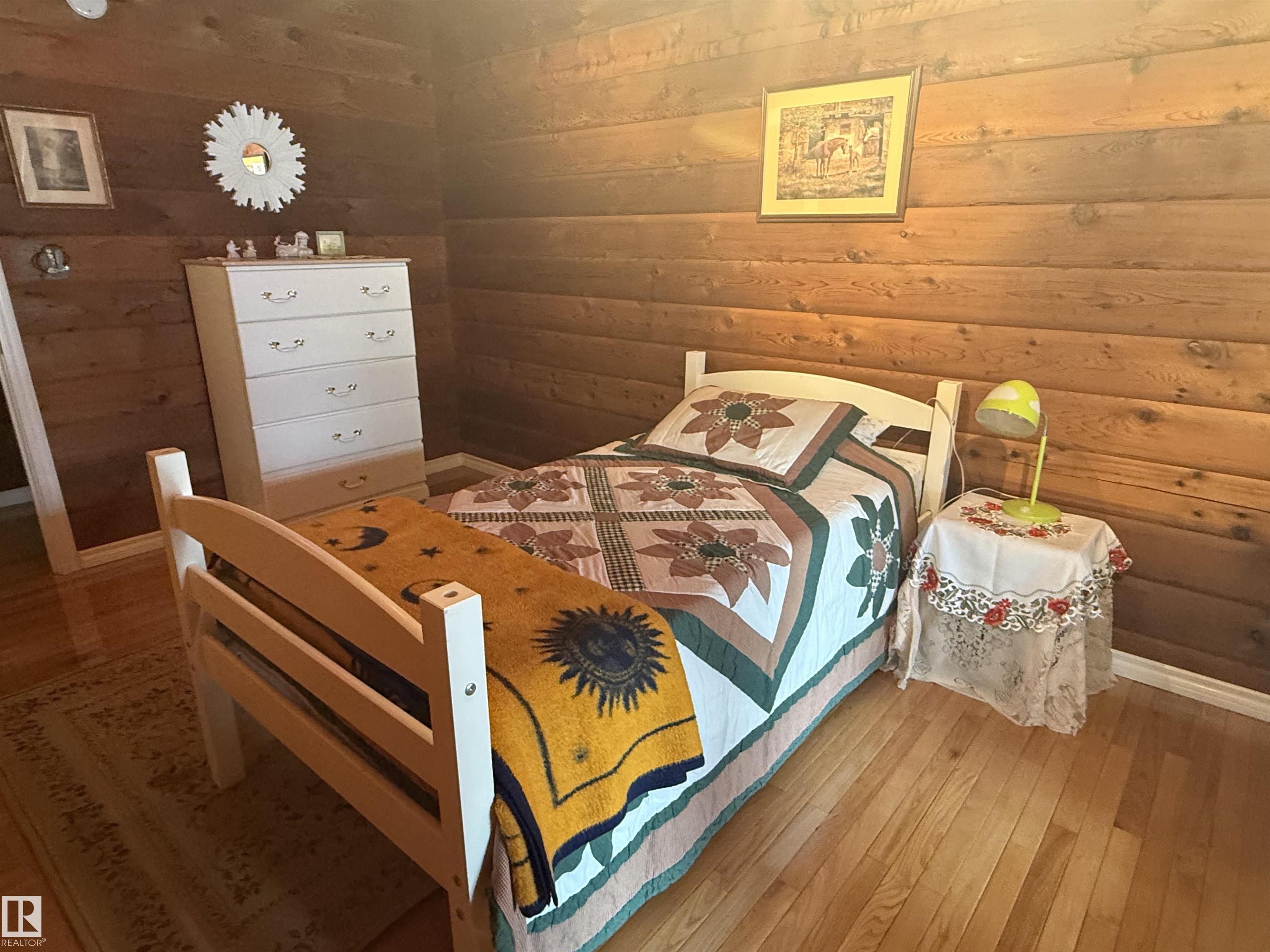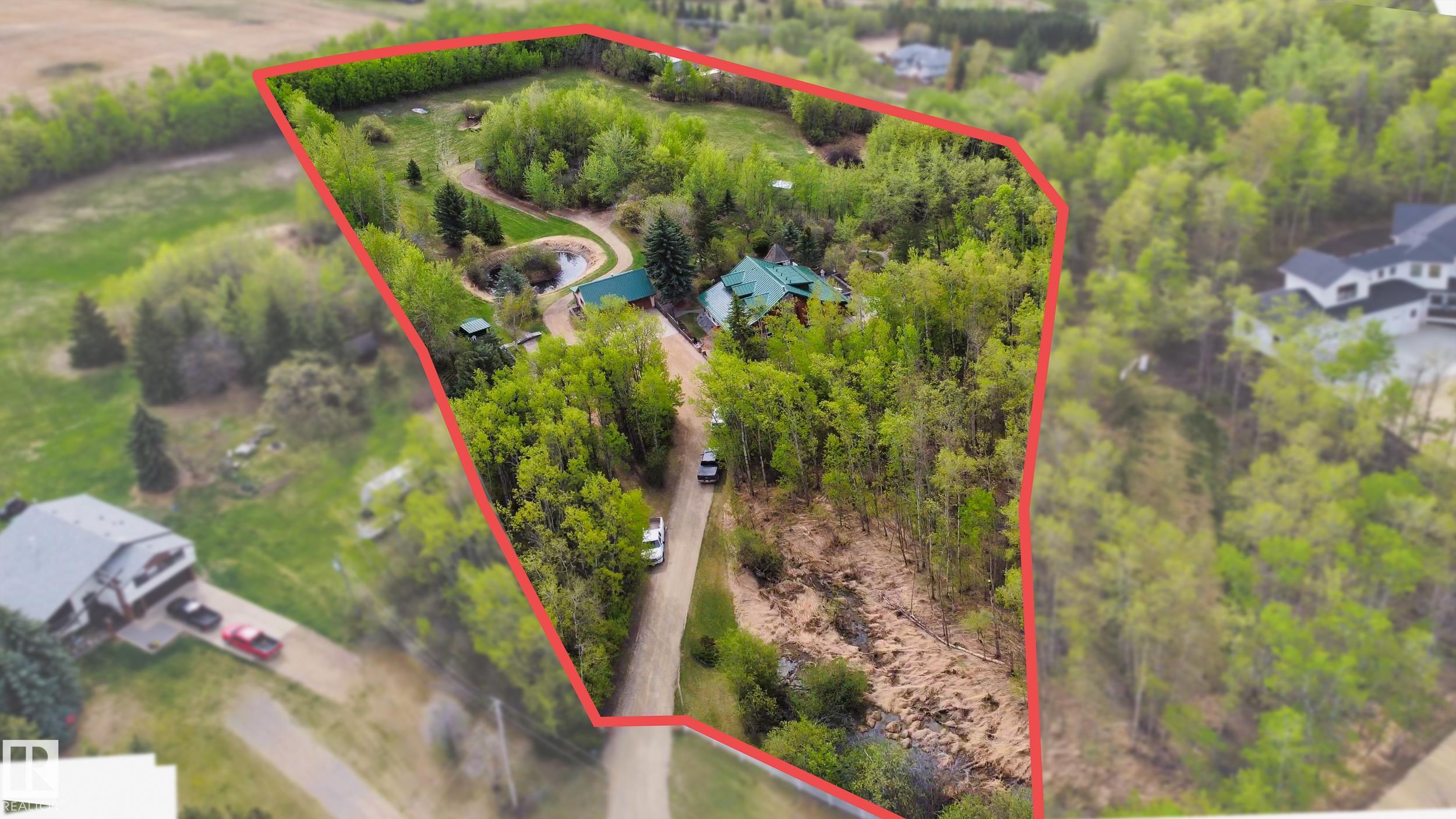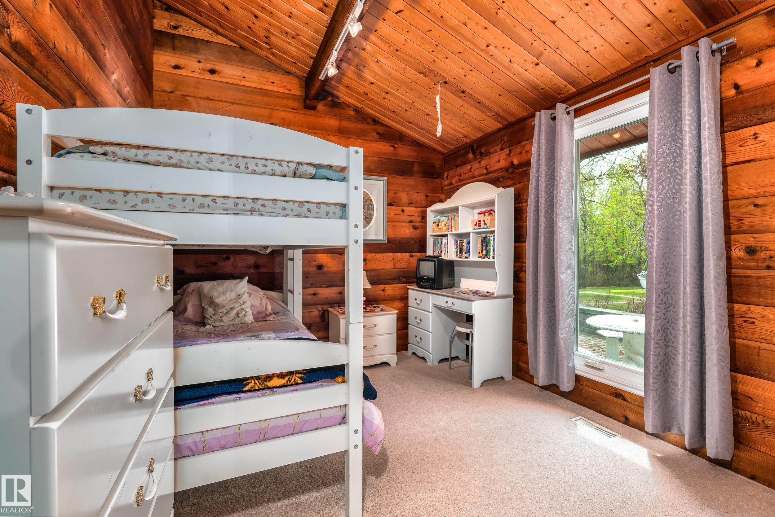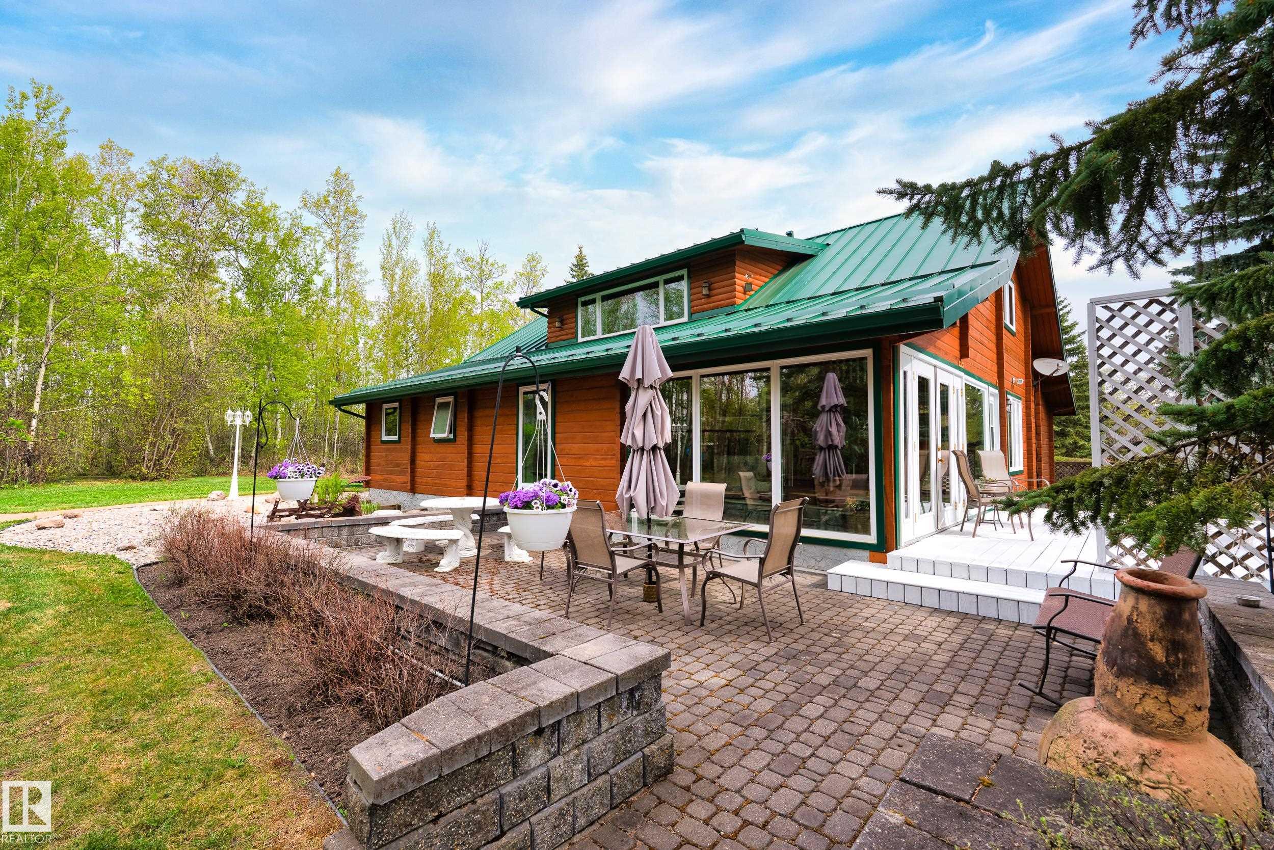 Absolutely STUNNING! This meticulous 1 1/2 storey red cedar log home is 2866 sq. ft., tucked away on 5.9 acres of your own private oasis. The covered front veranda welcomes you as you enter into the home with a wood stone fireplace, hardwood floors, and vaulted ceiling throughout the home. The home has 3 bedrooms & den, 3.5 bathrooms, the loft master bedroom is huge with enough room for your own personal office, workout area, sitting area or for whatever you desire. The kitchen is spacious with a huge island, dining area off the family room, and an additional sitting area with it's own sink, perfect for a bar/coffee bar. The lower level has a second kitchen/bar, bedroom, 4 pc bathroom, games room and additional family room. Upgrades include metal roof, triple pane window, hot water tank (2024), furnace (2024) and septic tank (2021). Detached triple garage with a 4 bay workshop. The backyard is beautiful, and has a fenced area for horses. Serene lifestyle just minutes from the city.