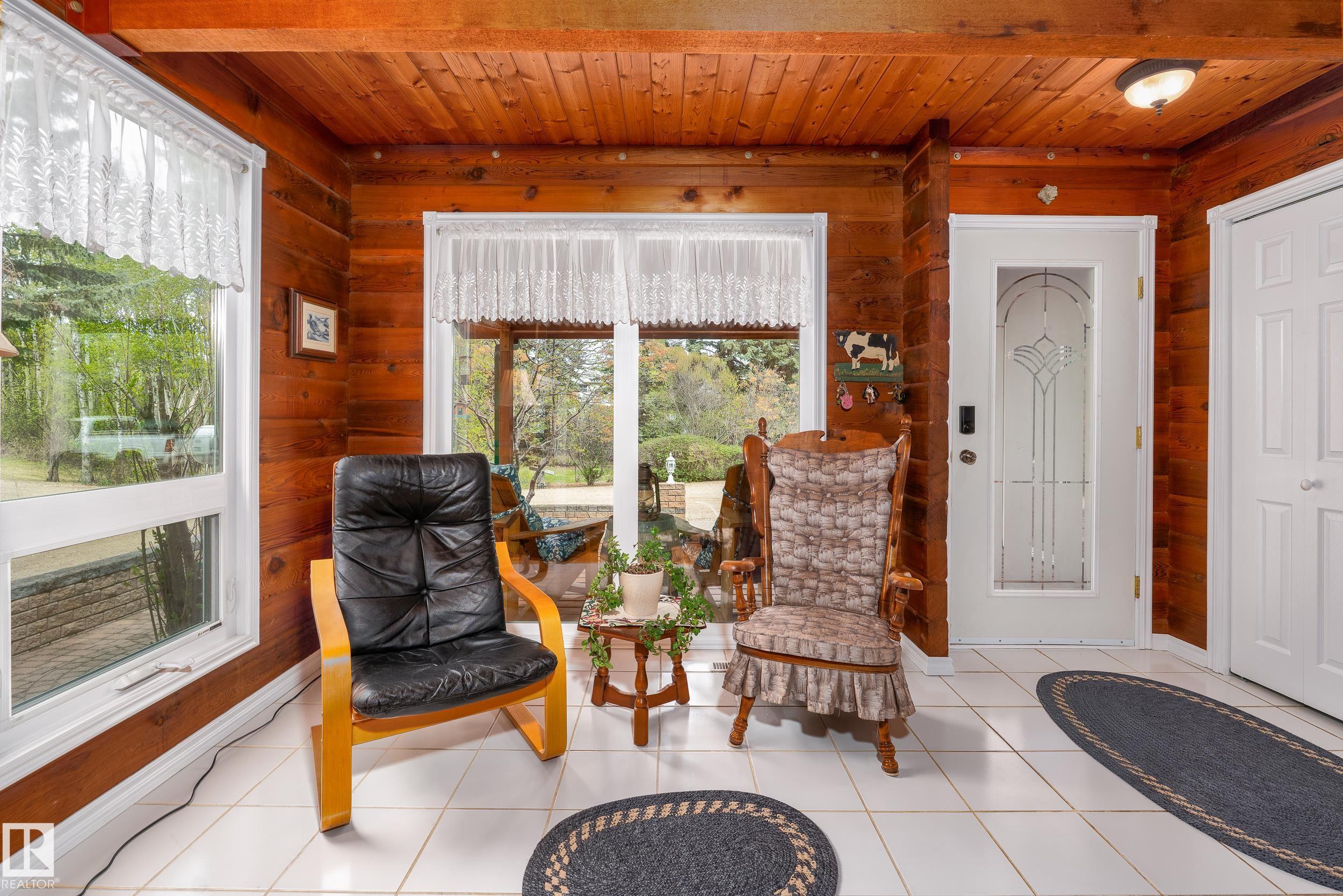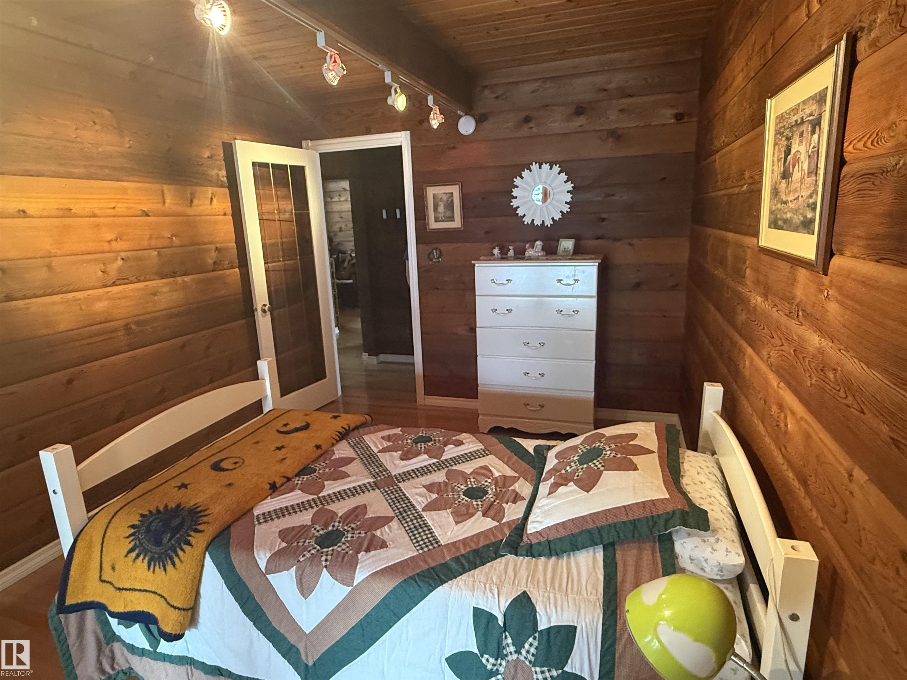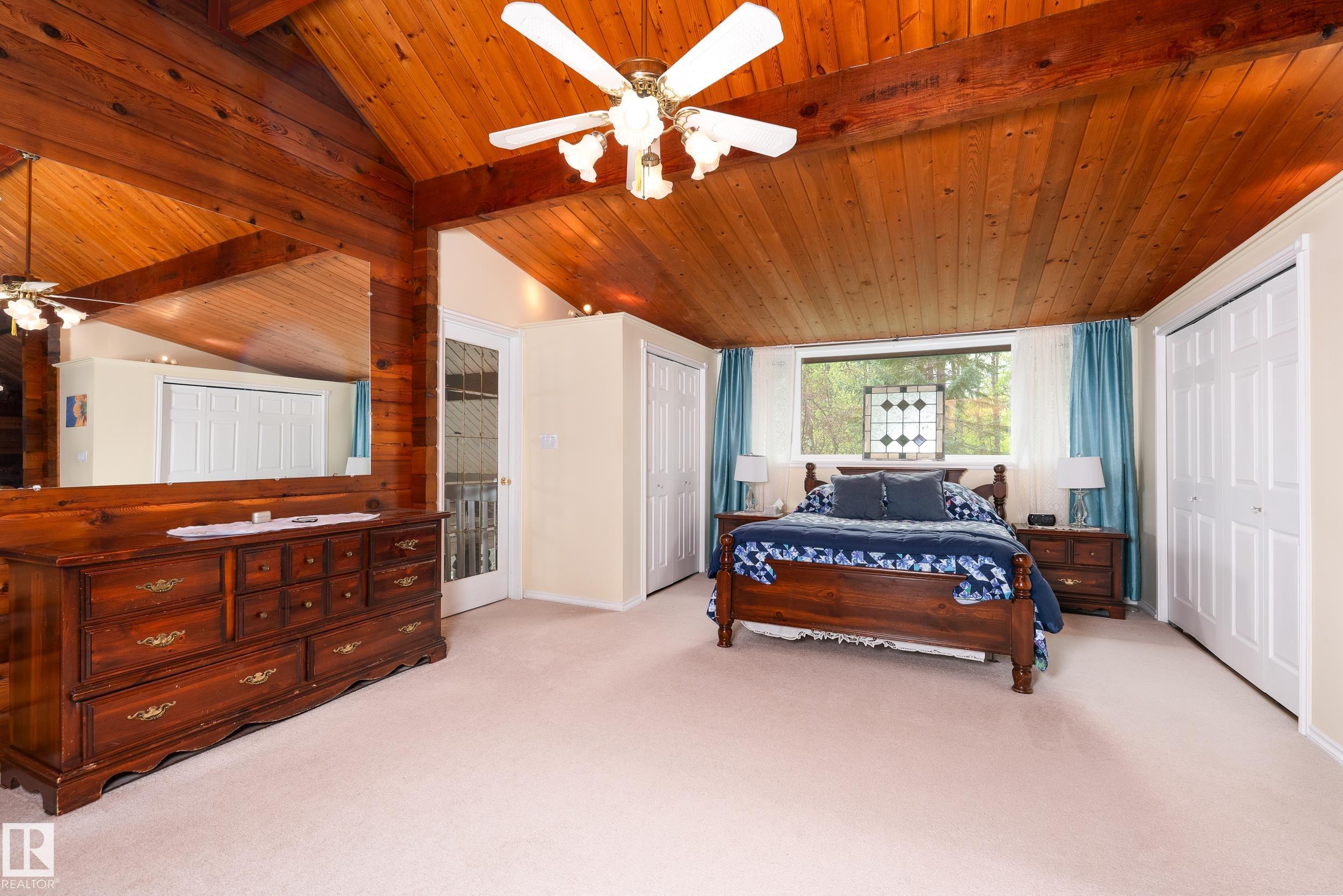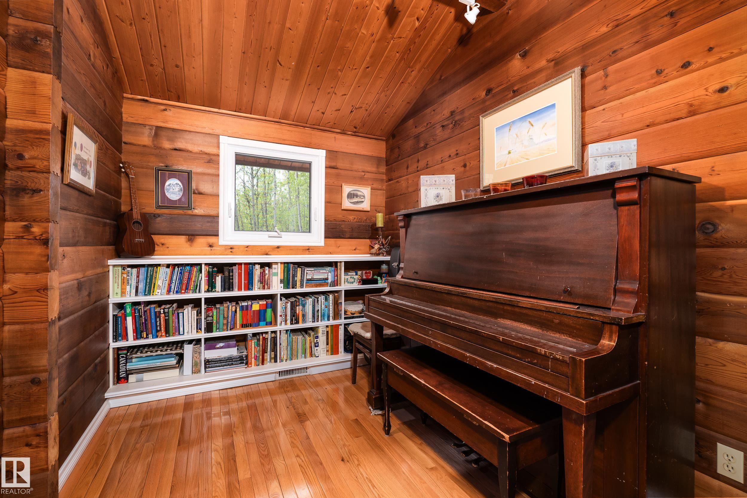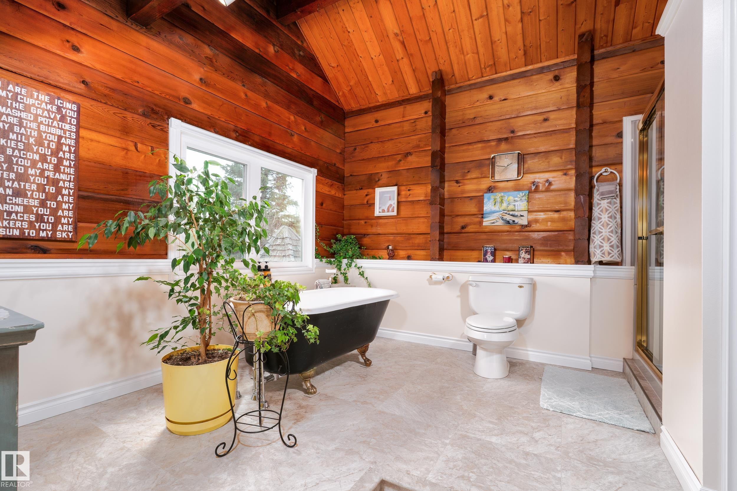 Absolutely STUNNING! This meticulous 1 1/2 storey red cedar log home is 2866 sq. ft., tucked away on 5.9 acres of your own private oasis. The covered front veranda welcomes you as you enter into the home with a wood stone fireplace, hardwood floors, and vaulted ceiling throughout the home. The home has 3 bedrooms & den, 3.5 bathrooms, the loft master bedroom is huge with enough room for your own personal office, workout area, sitting area or for whatever you desire. The kitchen is spacious with a huge island, dining area off the family room, and an additional sitting area with it's own sink, perfect for a bar/coffee bar. The lower level has a second kitchen/bar, bedroom, 4 pc bathroom, games room and additional family room. Upgrades include metal roof, triple pane window, hot water tank (2024), furnace (2024) and septic tank (2021). Detached triple garage with a 4 bay workshop. The backyard is beautiful, and has a fenced area for horses. Serene lifestyle just minutes from the city.