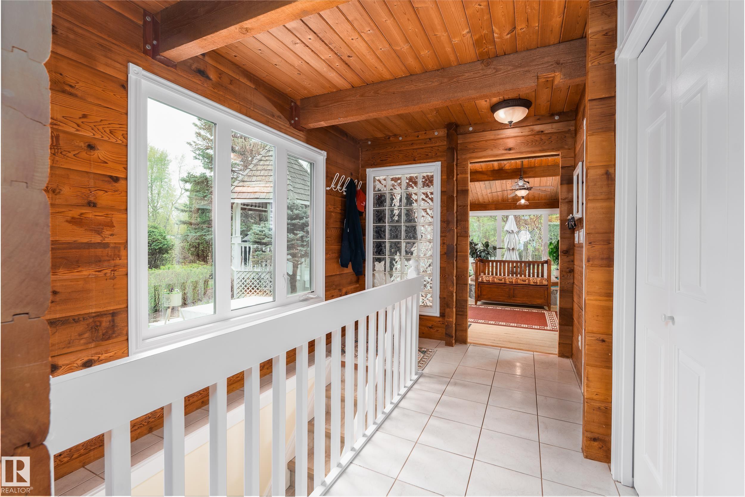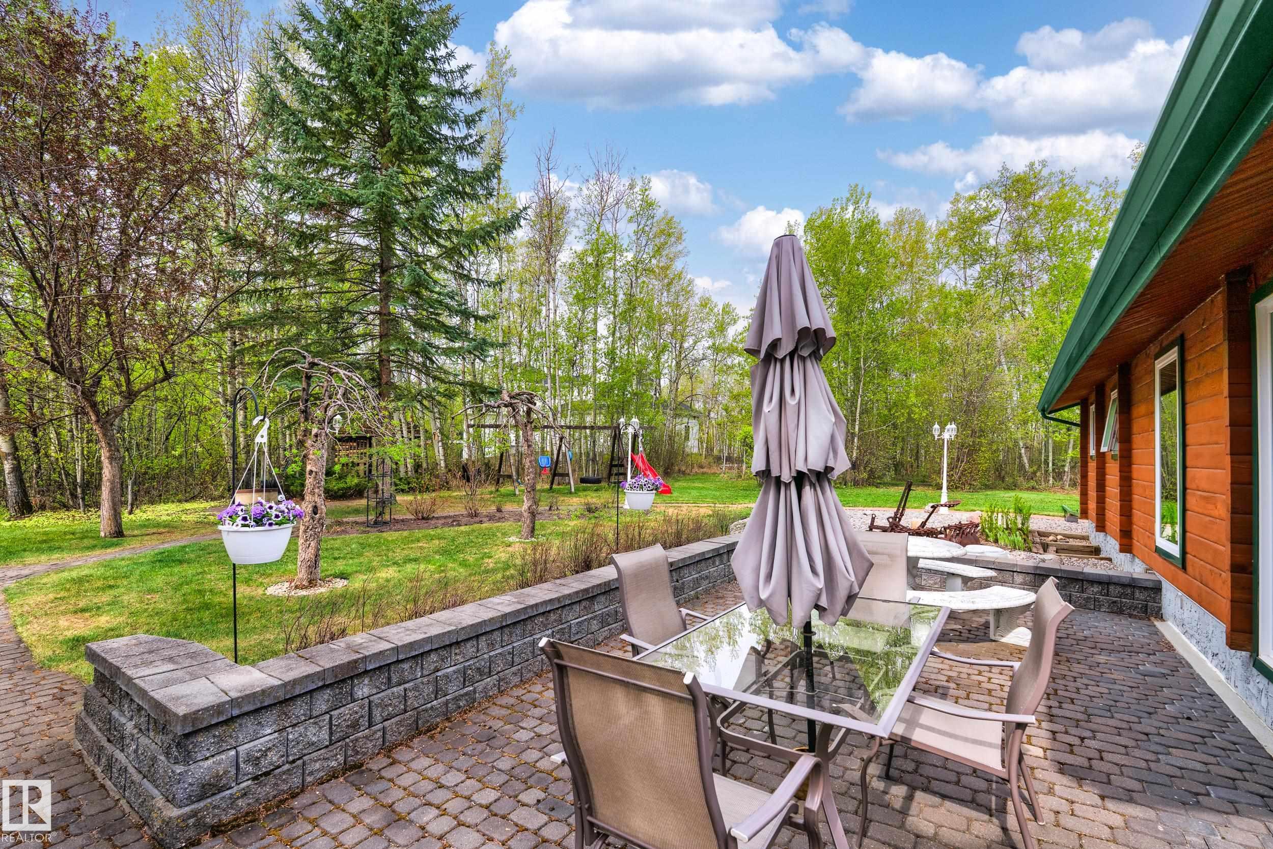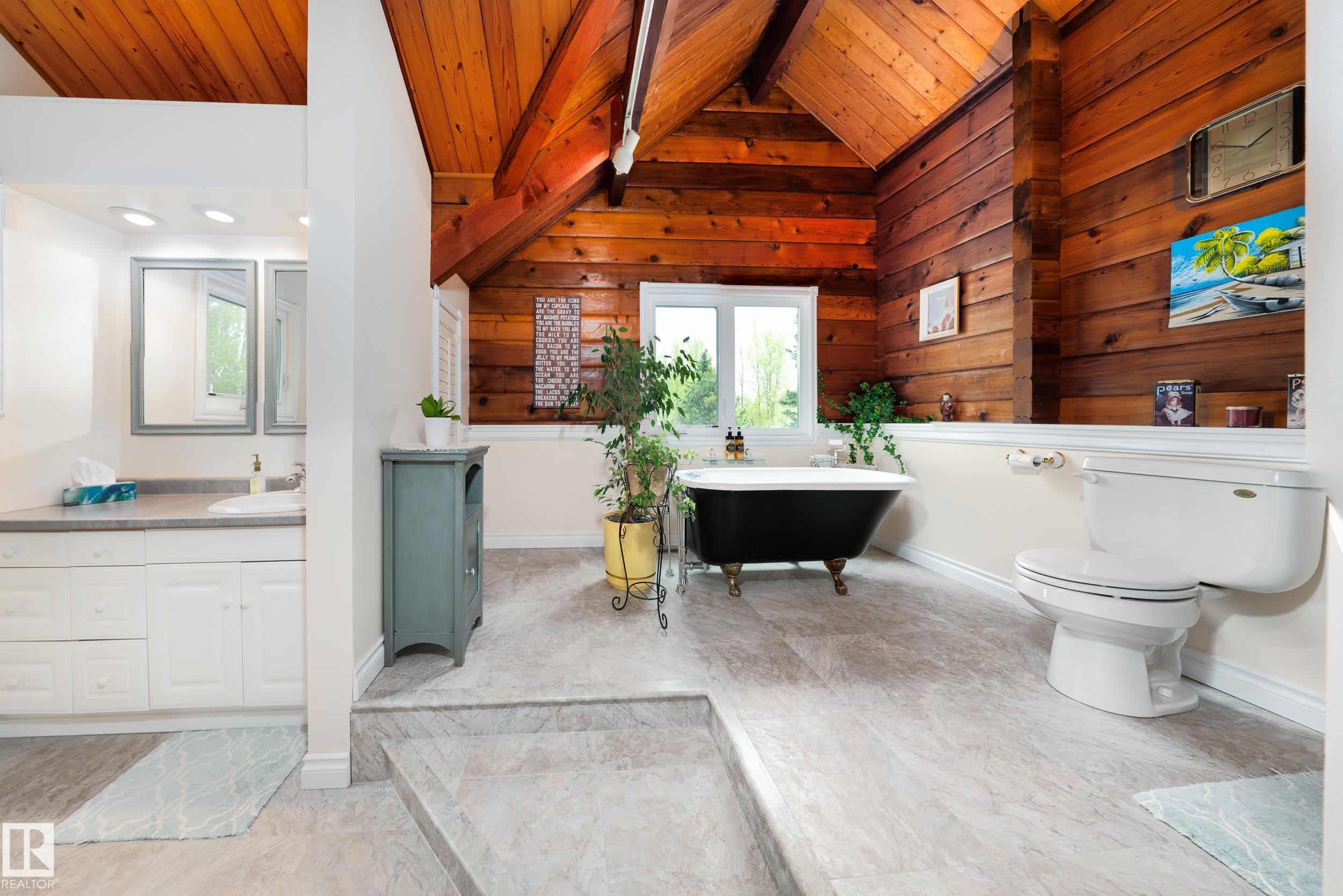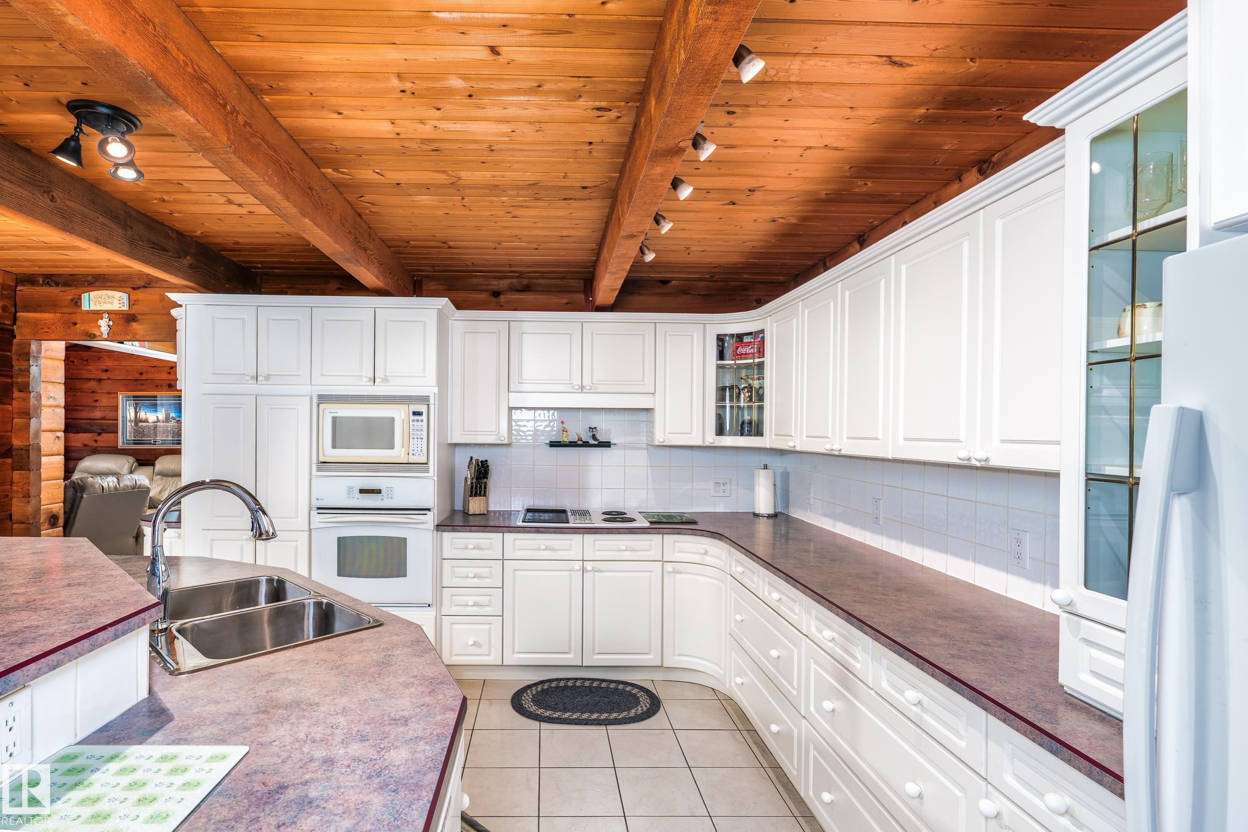 Absolutely STUNNING! This meticulous 1 1/2 storey red cedar log home is 2866 sq. ft., tucked away on 5.9 acres of your own private oasis. The covered front veranda welcomes you as you enter into the home with a wood stone fireplace, hardwood floors, and vaulted ceiling throughout the home. The home has 3 bedrooms & den, 3.5 bathrooms, the loft master bedroom is huge with enough room for your own personal office, workout area, sitting area or for whatever you desire. The kitchen is spacious with a huge island, dining area off the family room, and an additional sitting area with it's own sink, perfect for a bar/coffee bar. The lower level has a second kitchen/bar, bedroom, 4 pc bathroom, games room and additional family room. Upgrades include metal roof, triple pane window, hot water tank (2024), furnace (2024) and septic tank (2021). Detached triple garage with a 4 bay workshop. The backyard is beautiful, and has a fenced area for horses. Serene lifestyle just minutes from the city.