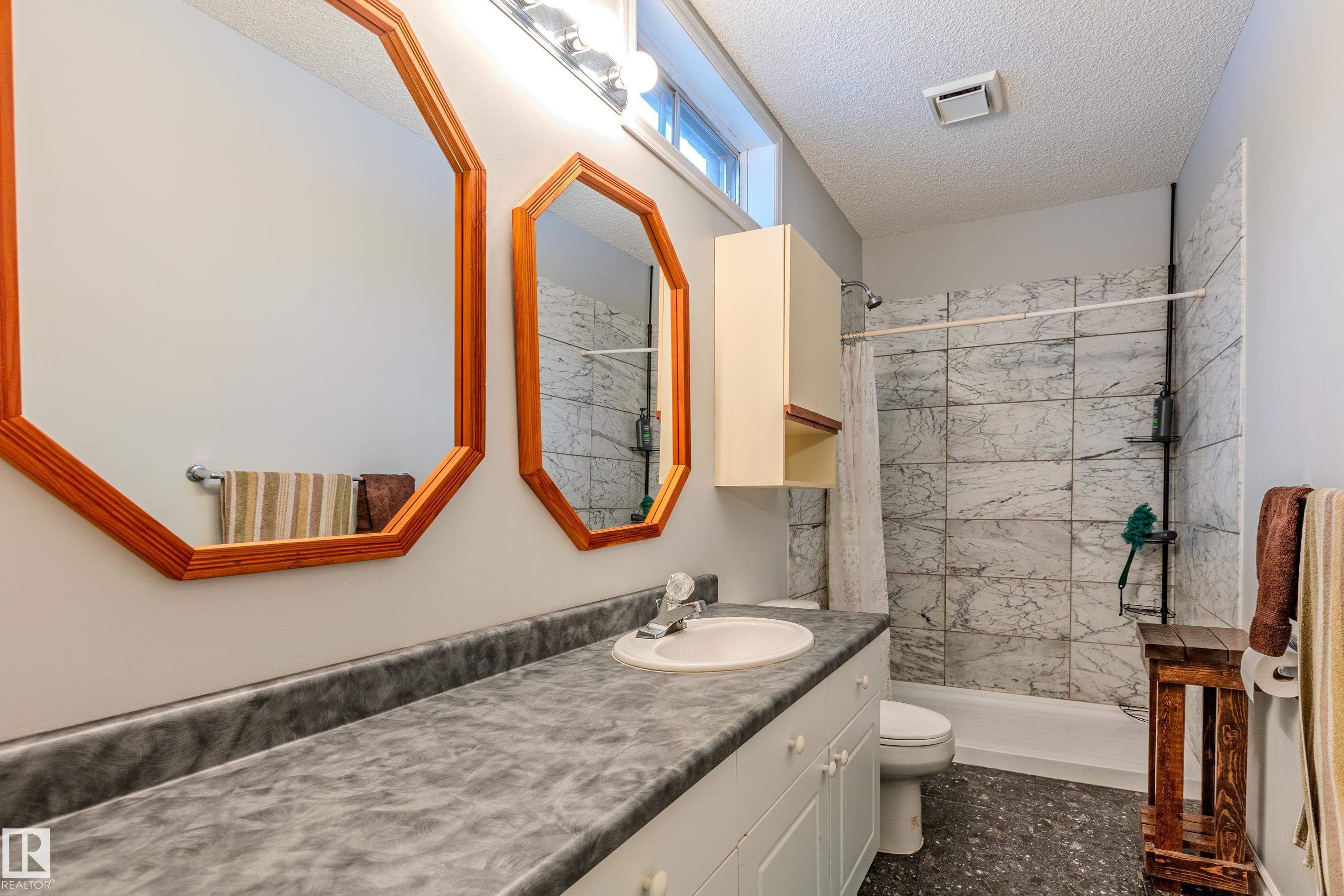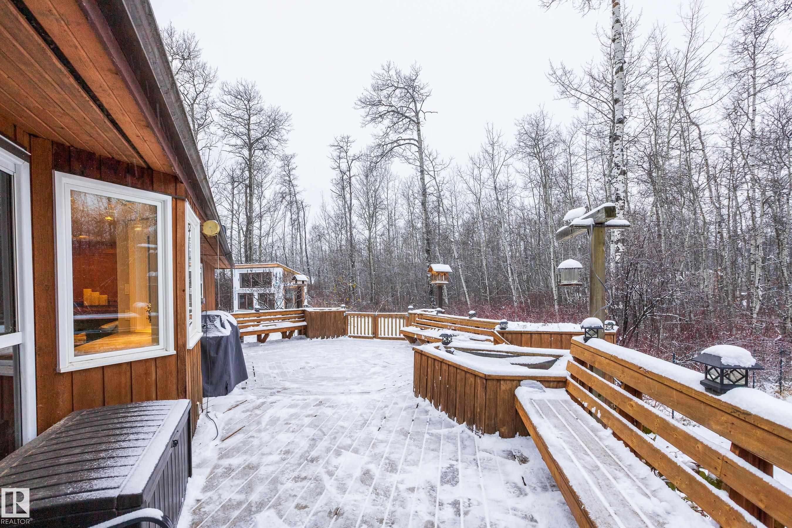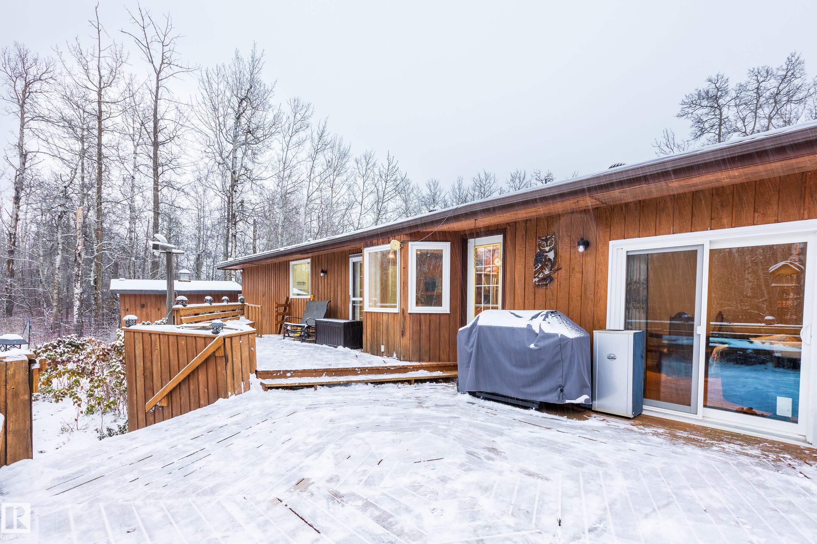 PRIVATE, TREED COUNTRY LIVING! This 1900+sqft ranch style bungalow is only a few min.SE of Sh.Pk! Sits on 2.93 acres surrounded by nature! Featuring a large country kitchen w/central island, double wall ovens, Jenn-Air countertop stove w/dinette area & serene views around you on your multi-level deck! Bright, formal dining room, sunken family room w/gorgeous oak feature wall & gas F/P to enjoy. Settle down & relax in 3 large bedrooms with magnificent master featuring a W/I closet + addt'l closet ladies for all our shoes & a 3 pce. ensuite! Completing the main floor is convenient laundry room, den + a sunken L/R! The developed basement with a huge recreation room + bedroom w/3pce ensuite and a ton of storage. Some upgrades include shingles (2014) A/C & Furnace (2019) Gas F/P (2022) New Windows, Norweco Waste Water Treatment Septic (2010) Stone walkways, firepit, RV parking & 2 outdoor storage shed completes this perfect family home!