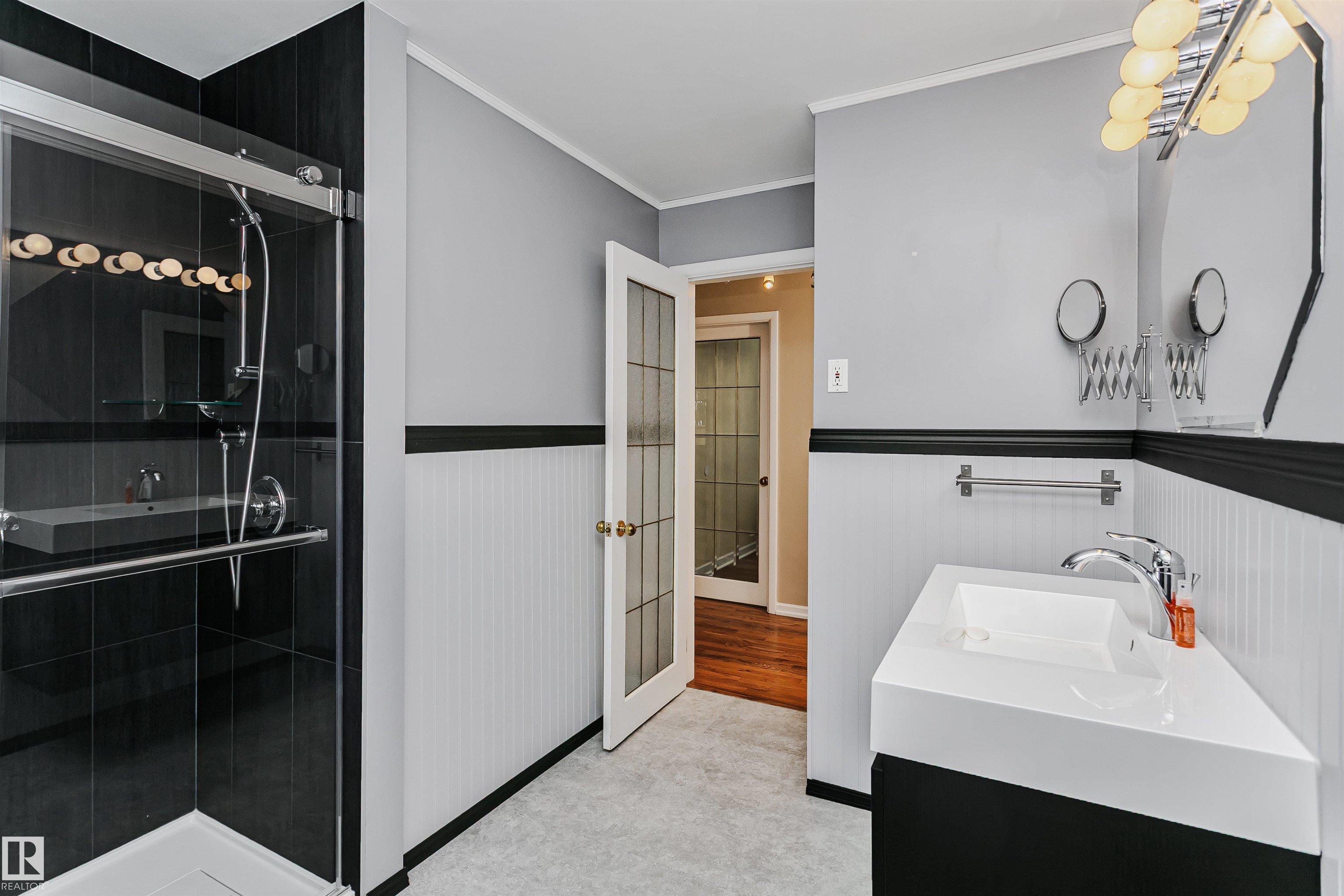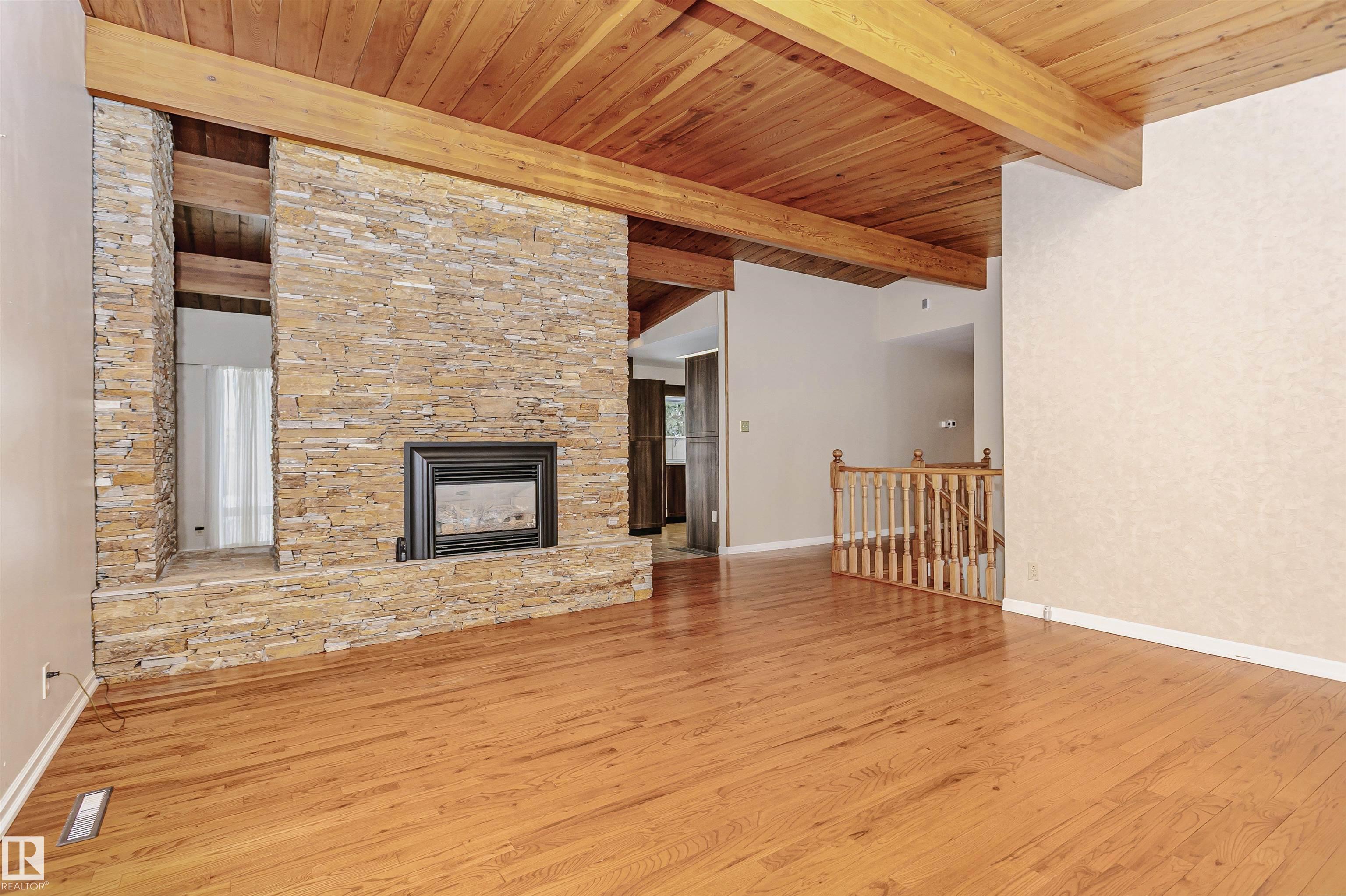 RARE OPPORTUNITY to own a truly unique custom bi-level in sought-after Sturgeon Heights, nestled on a massive 8,709 sqft prime corner lot bordering Sable Park. This beautifully updated home boasts vaulted cedar ceilings W/ open beams, a stunning floor-to-ceiling two-sided gas fireplace W/ stacked stone, oak hardwood floors, huge vinyl windows, & AC. The chef's kitchen features SS range, fridge & MW, dark shaker cabinetry W/ under cabinet lighting, bay window over the sink, timeless backsplash & tile floor flowing into the grand dining room. The main level offers 3 sizable bedrooms & a 3pc bath W/ floating vanity & 5 ft porcelain tiled shower. The lower level expands your living space W/ a spacious REC room, two additional roomy bedrooms, one showcasing an electric fireplace & direct access to a 3-pc bath. Enjoy a private backyard oasis W/ HOT TUB, gorgeous landscaping all around, heated OVERSIZED garage W/ built-in cabinets & ample driveway parking W/ room for RV/BOAT. This exceptional home has it all!