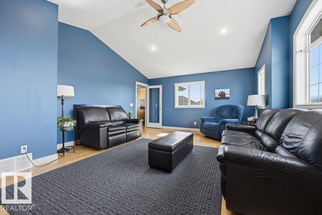 DESIRE QUIET LIVING minutes from Sherwood Park? How about a 2400 sqft home with TRIPLE GARAGE, FINISHED BASEMENT, PRIVATE YARD BACKING TREES and a POND? Welcome to 21 Creekside Drive in Ardrossan. This 2004 custom built home has everything for the growing family. Hardwood flooring, stamped ceilings, maple-wood finishings, the QUALITY is seen throughout. Open Main Floor has Large Kitchen with lots of cabinet space, corner panty, & island. Living Room with Gas Fireplace, built-in shelving, & along with the Dining area, has AMAZING VIEWS of nature year-round. The BACKYARD with that beautiful CEDAR DECK & electric awning is absolute "wow". Upstairs has HUGE Primary Bedroom, 5 pce en-suite & walk-in closet, 2 more Bedrooms, Laundry Room, & Bonus Room with vaulted ceiling. Basement professionally developed in 2017: Dry Core Subfloor, 2 bedrooms adjoining closet, additional laundry room, 4 piece bathroom with heated floor. Other Home features: 75 Gal H.Water Tank, 2 Furnaces, pull-through garage & much more.