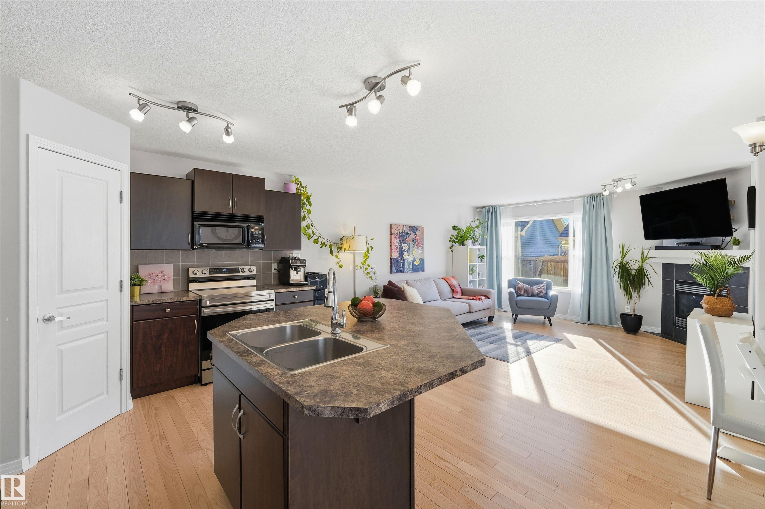 Welcome to this beautifully updated duplex in highly sought-after Aspen Trails. Step onto the charming front porch and into a bright, open-concept main floor featuring new hardwood flooring throughout. The spacious kitchen is a standout, offering a large island, plenty of prep space, and new stainless steel appliances. The cozy living room includes a gas fireplace, and the main floor also offers a convenient office or flex space perfect for working from home. Upstairs you'll find three generously sized bedrooms, including a sunny primary suite with a walk-in closet and large ensuite with a soaker tub, plus the added convenience of upper-floor laundry. Outside, enjoy a beautifully landscaped, south-facing backyard with a two-tier deck--ideal for entertaining, gardening, or soaking up the sun. A insulated detached double garage provides ample parking and storage, and the unfinished basement is ready for your personal touch.